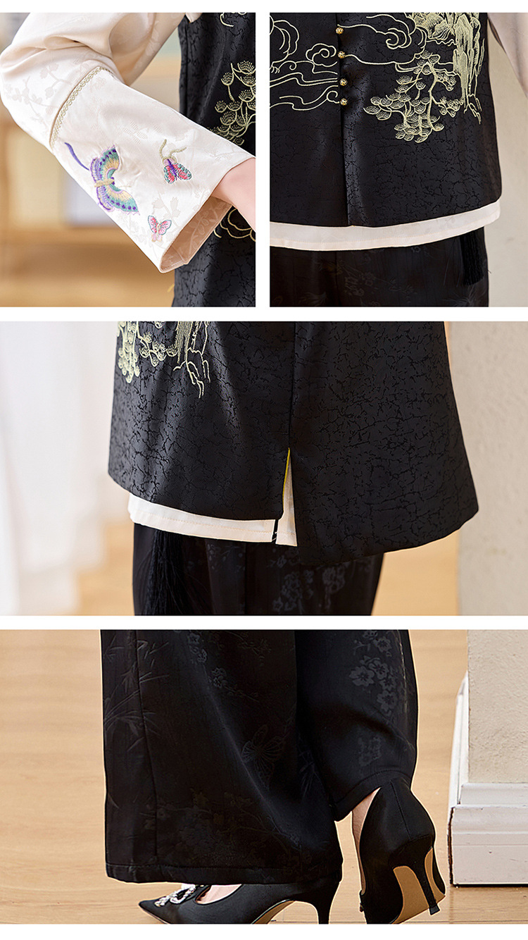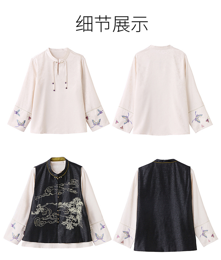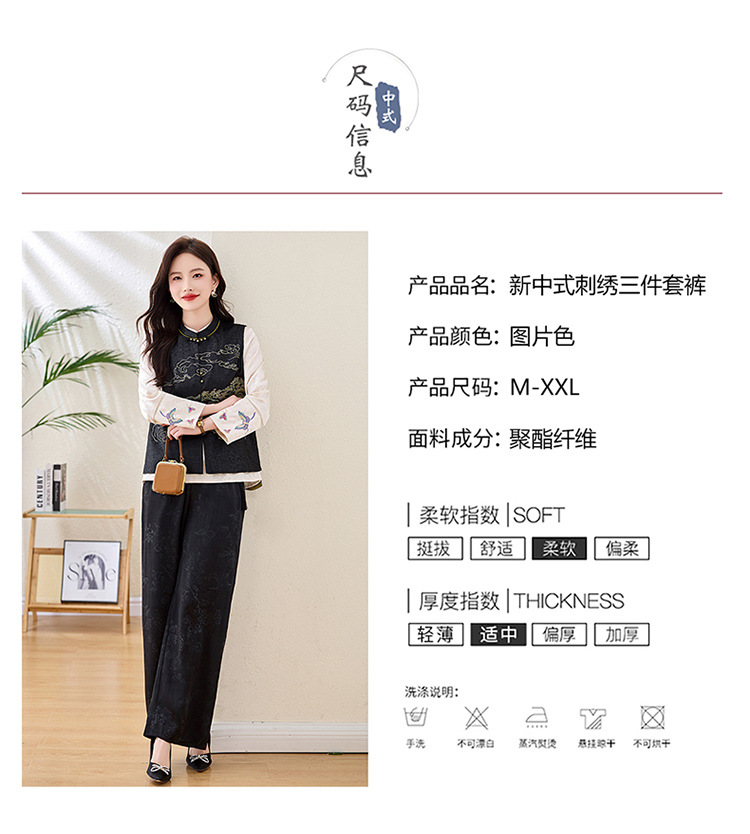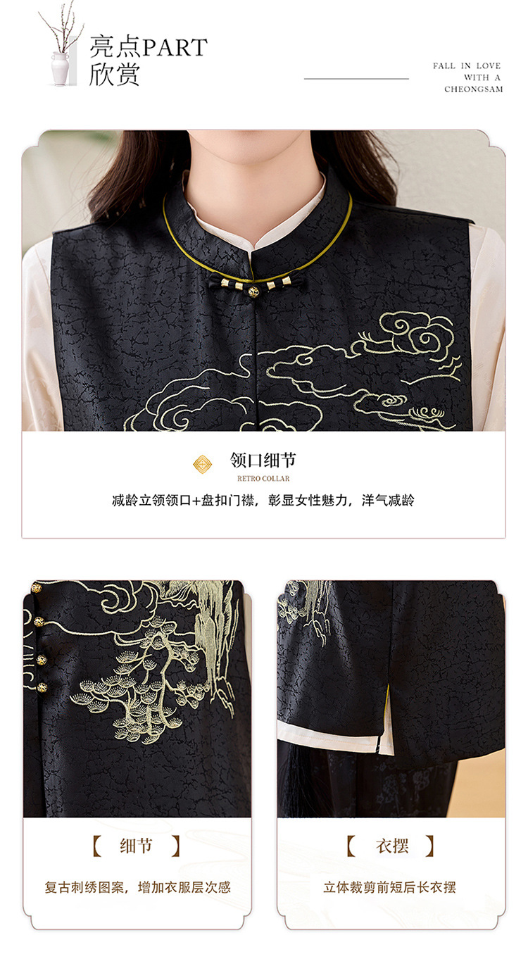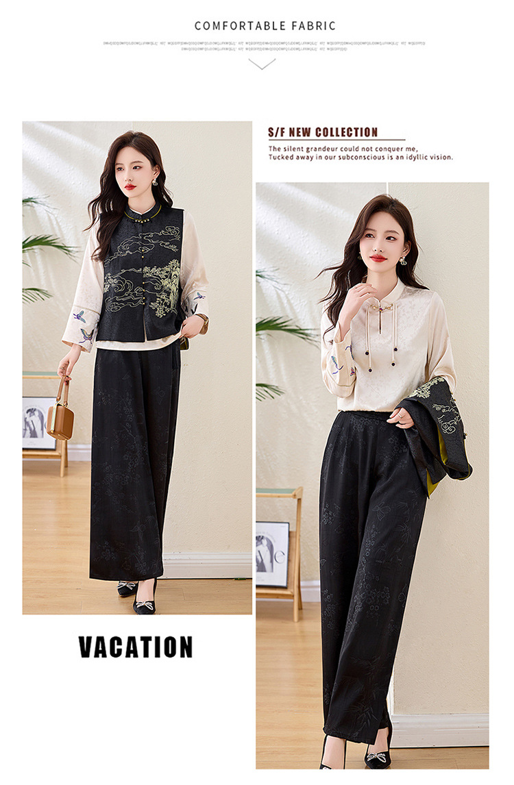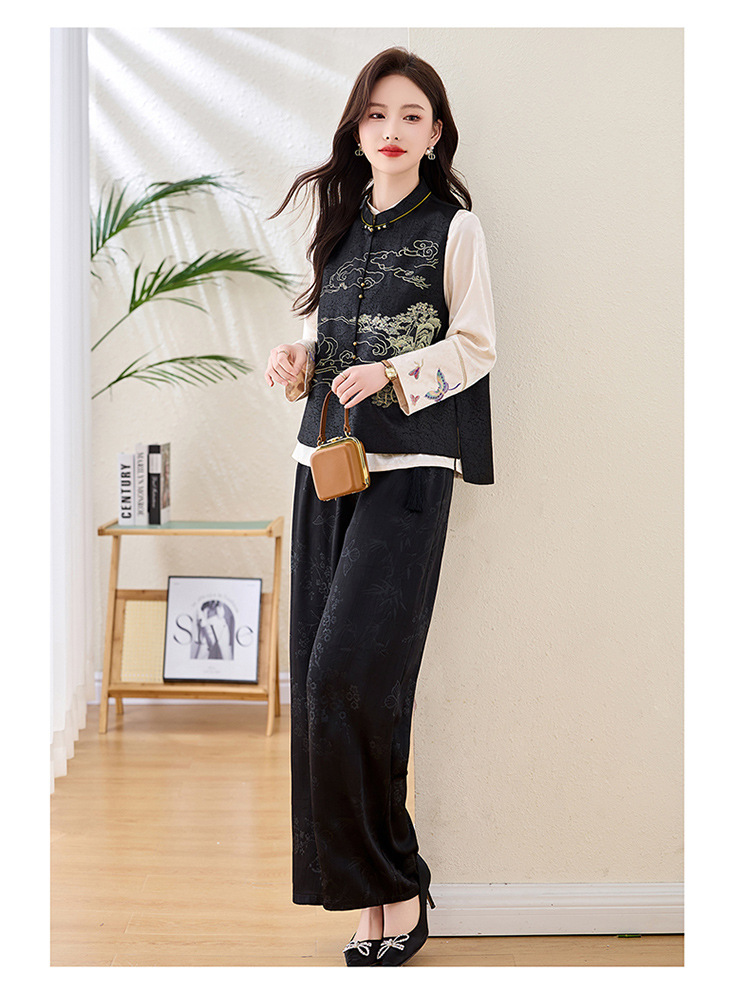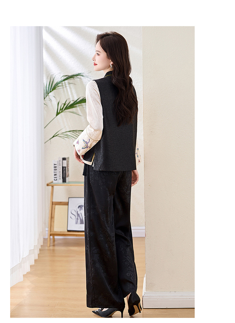 HR YYG82950新中式刺绣马甲+刺绣衬衫+裤子三件套