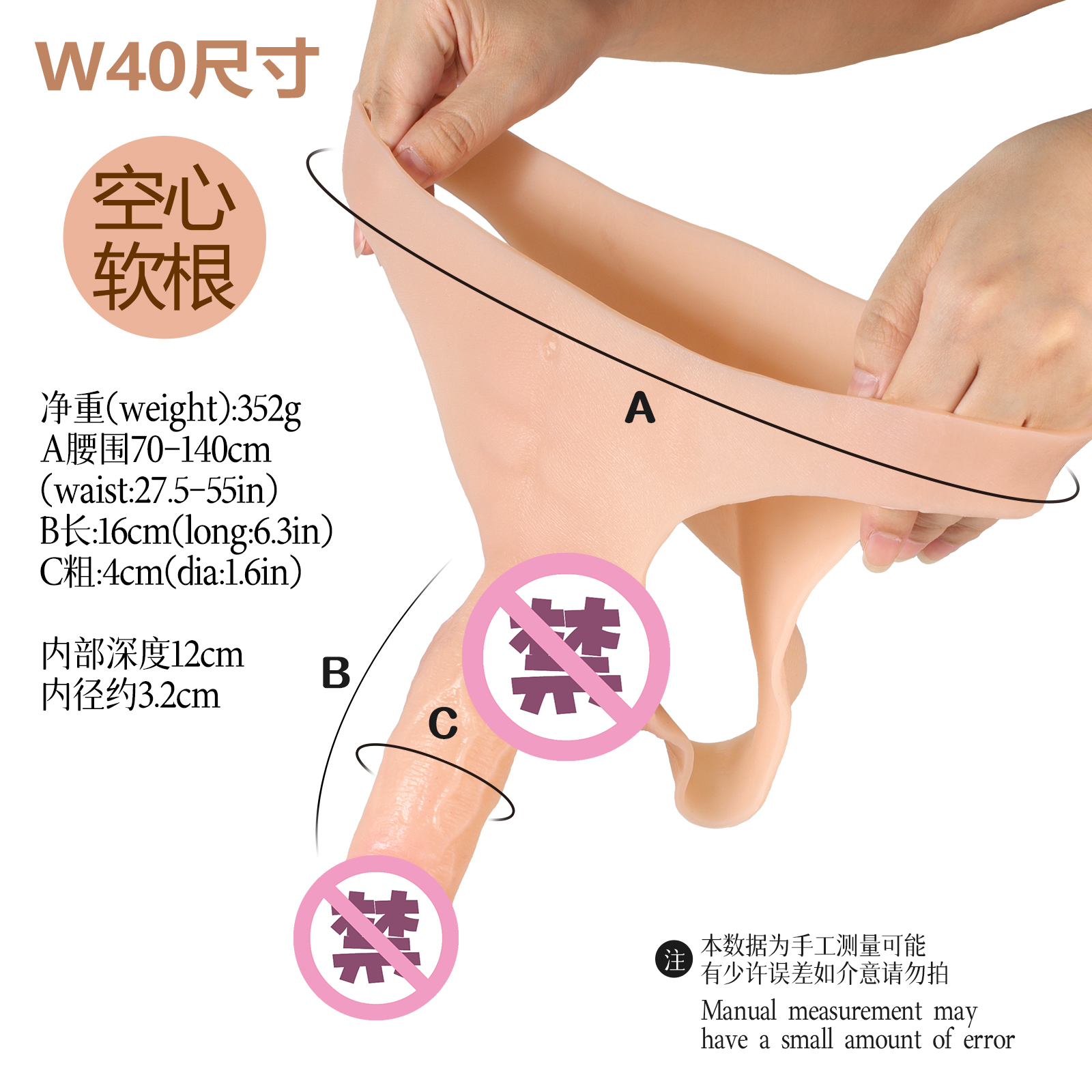 【产品名称】漫渺三角空心软阳具全硅胶裤【型号】W40 【尺寸】阳具:16*4cm,可插入13cm,内部深度12cm,内径约3.2cm【重量】352g【品牌名称】ManMiao漫渺®【品牌商】上海漫渺国际贸易有限公司【执行标准】Q/MMBJ 002-2017【质检标准】GB/T 22048-2008 B6675.4-2014 GB 4706.1-2005合格【产品材质】硅胶【主要功能】带腹肌,空心软皮【保质期】3年【生产日期】见包装盒【保存条件】置阴凉干燥处保存【使用方法】见视频或网页【注意事项】1、本产品为成人用品,严禁未成年人使用 2、考虑个人卫生问题,使用前后需清洗。