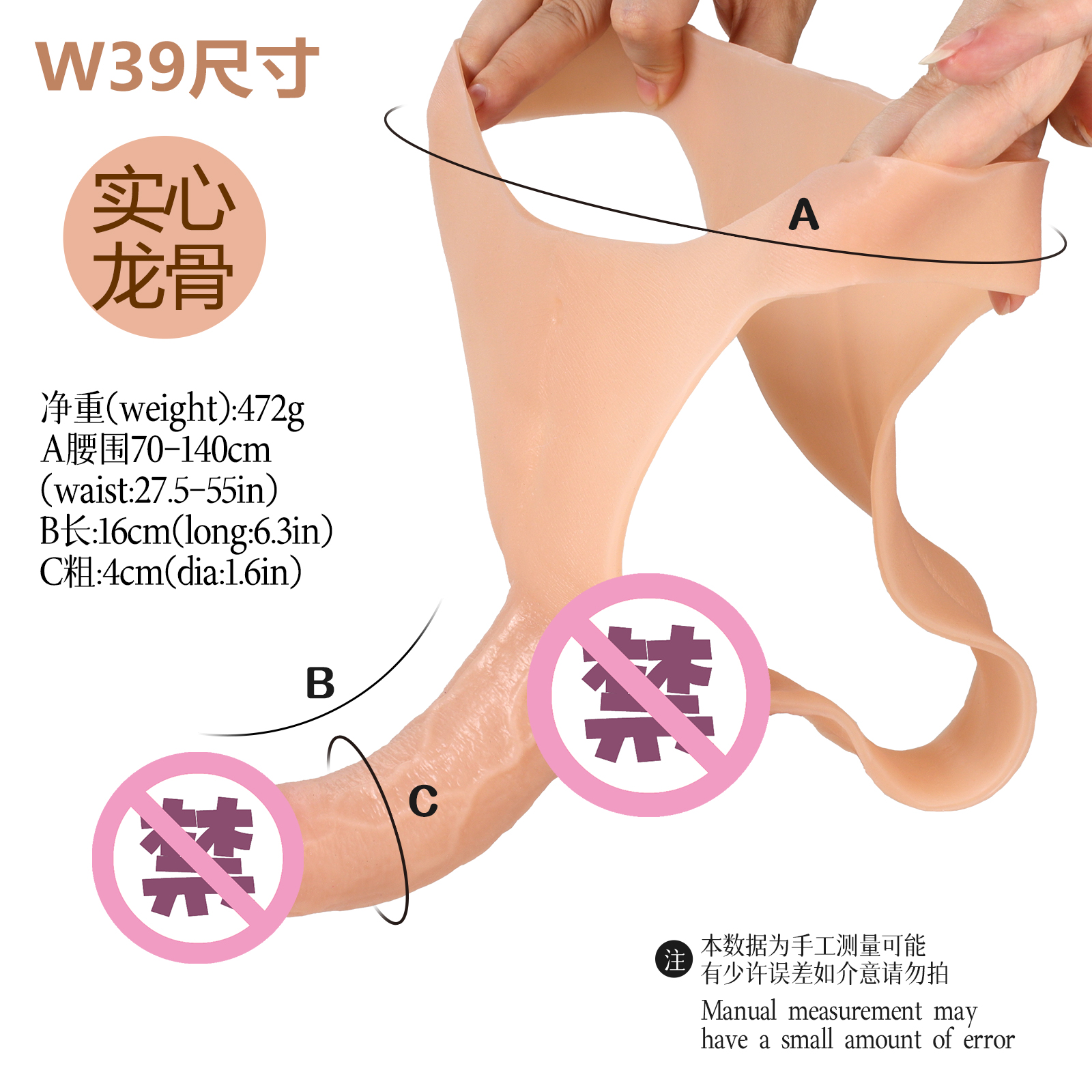 【产品名称】漫渺逆袭战神全硅胶阳具裤【型号】W20【产品材质】液体硅胶【规格尺寸】38*28cm(平铺) 阳具尺寸:16*3.8cm 【颜色】肉色【净重】实心958g空心890g【主要功能】男女通用全硅胶穿戴阴茎裤【保质期】36个月【生产日期】见包装盒或袋【品牌名称】ManMiao漫渺®【执行标准】Q/MMBJ 002-2017【气味】无香型【保存条件】置阴凉干燥处保存【使用方法】见网页或视频【注意事项】1、本产品为成人用品,严禁未成年人使用 2、使用前阴茎涂抹适量润滑液 3、考虑个人卫生问题,使用前后请清洗。