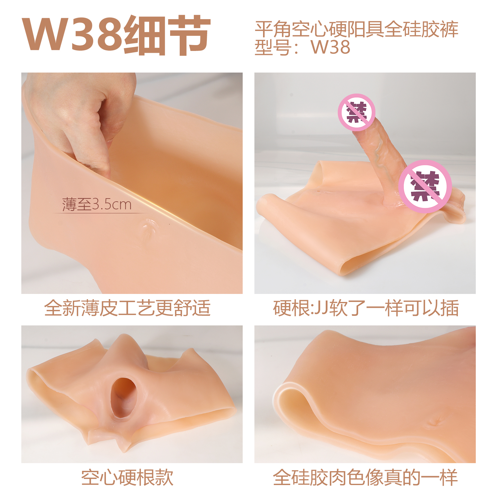 平角空心硬阳具全硅胶裤 型号:W38 条码:6973736552591