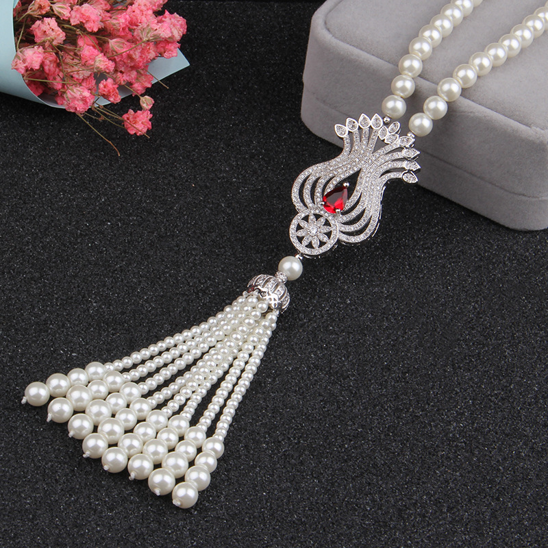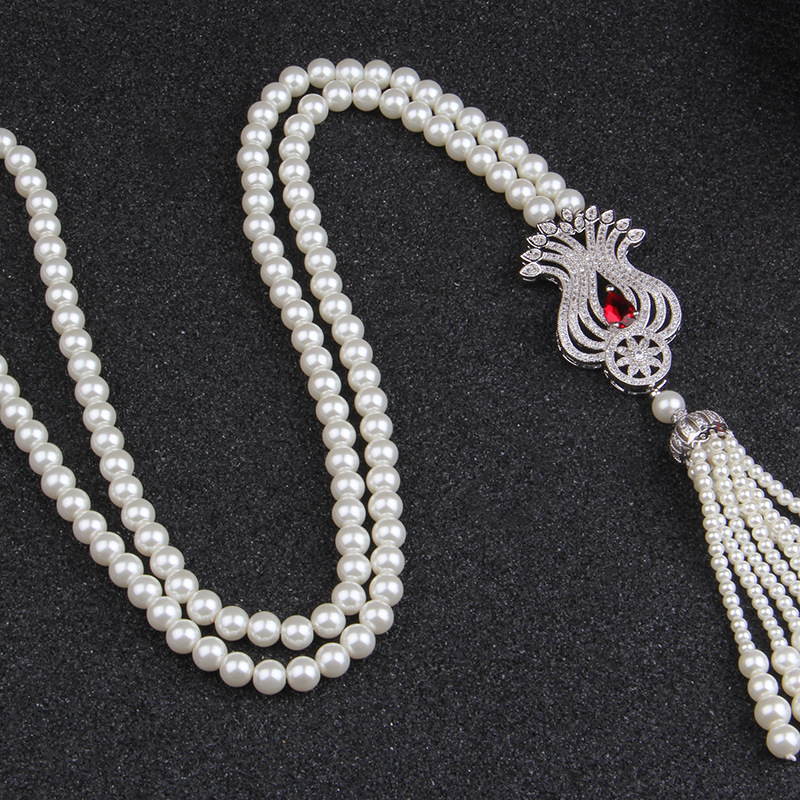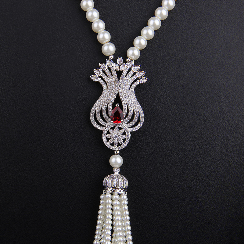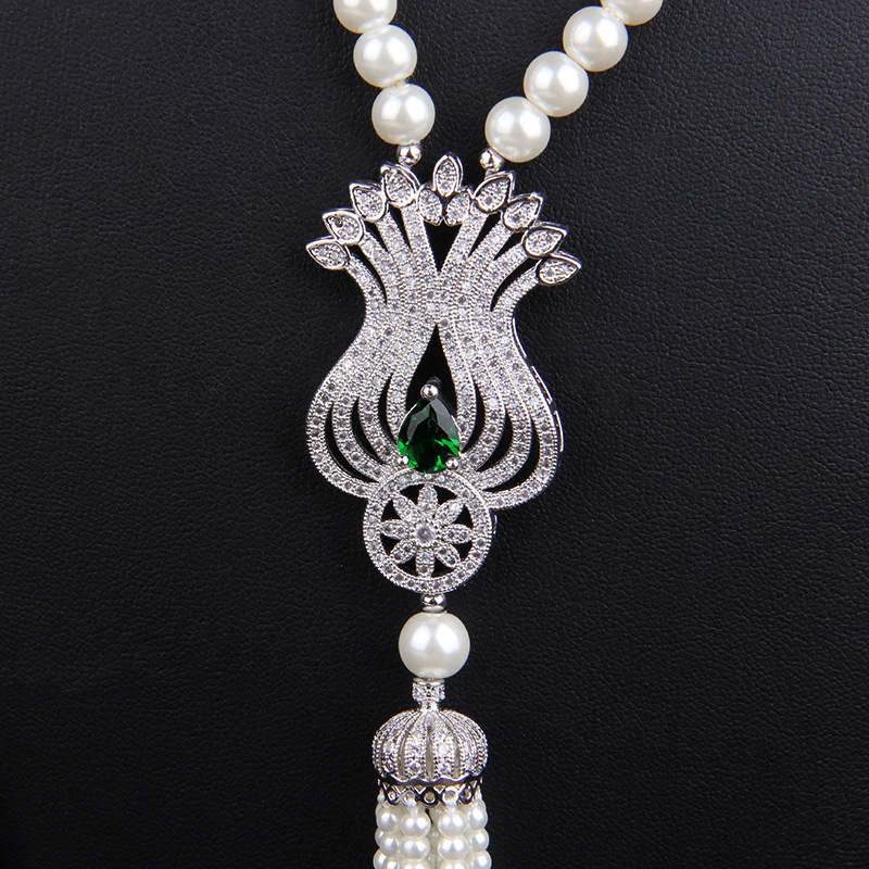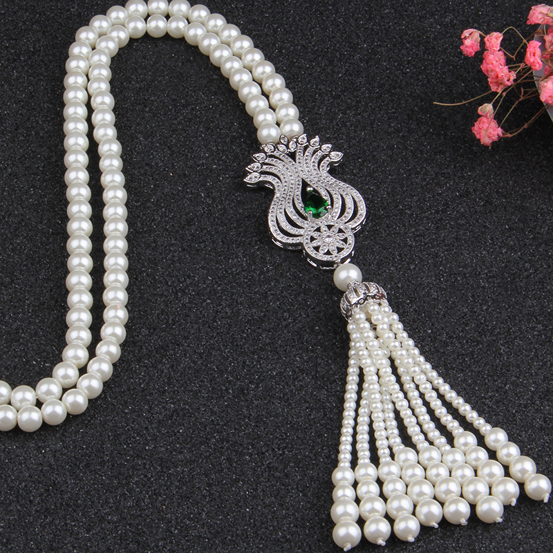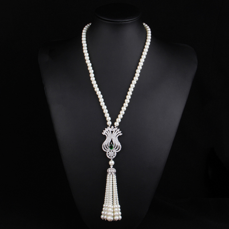 上海旗袍厂NM-Z-81244天然贝壳珠珍珠项链 郁金香微镶毛衣链