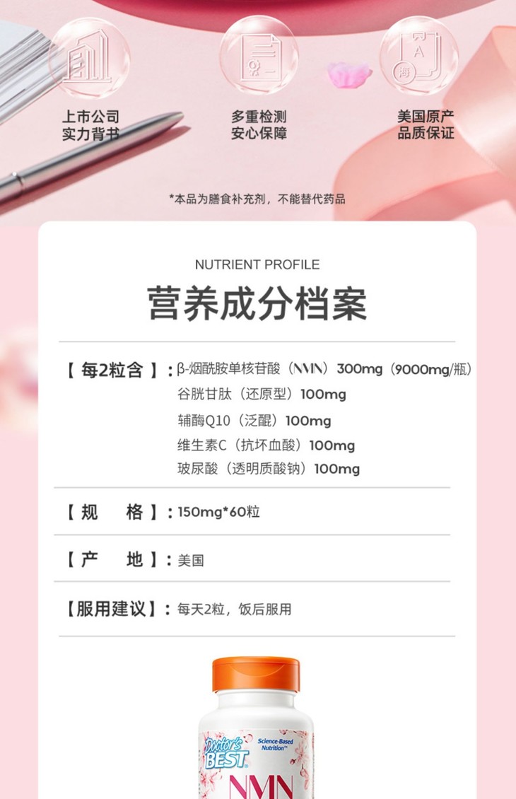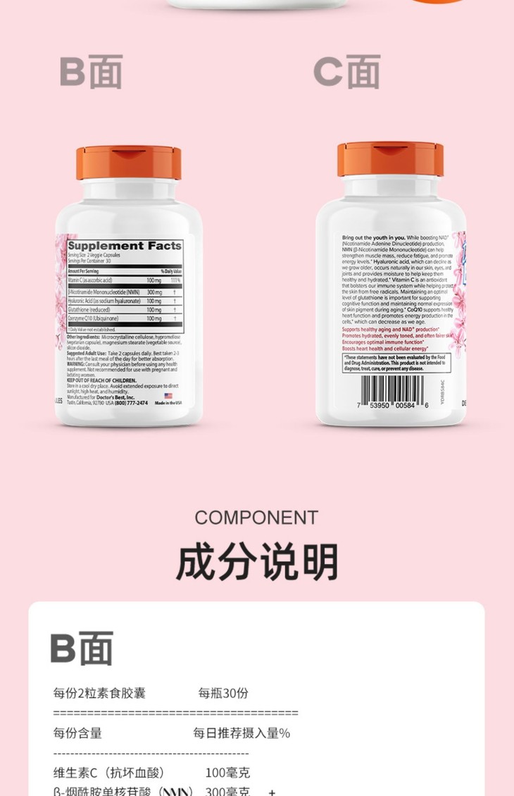 【临期清仓】NMN Doctor's Best多特倍斯NMN小仙弹五合一女性配方60粒金达威 日期到26年11月