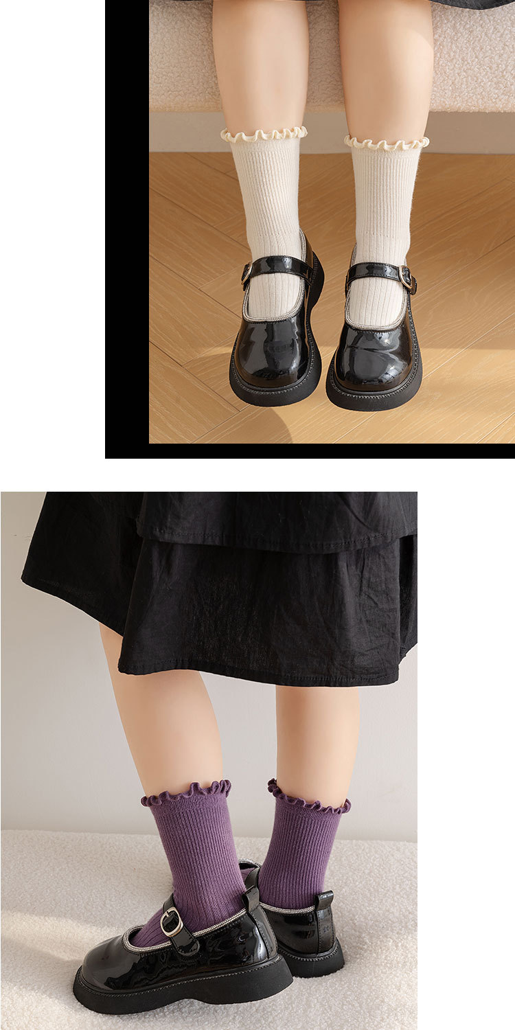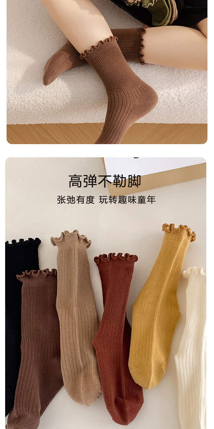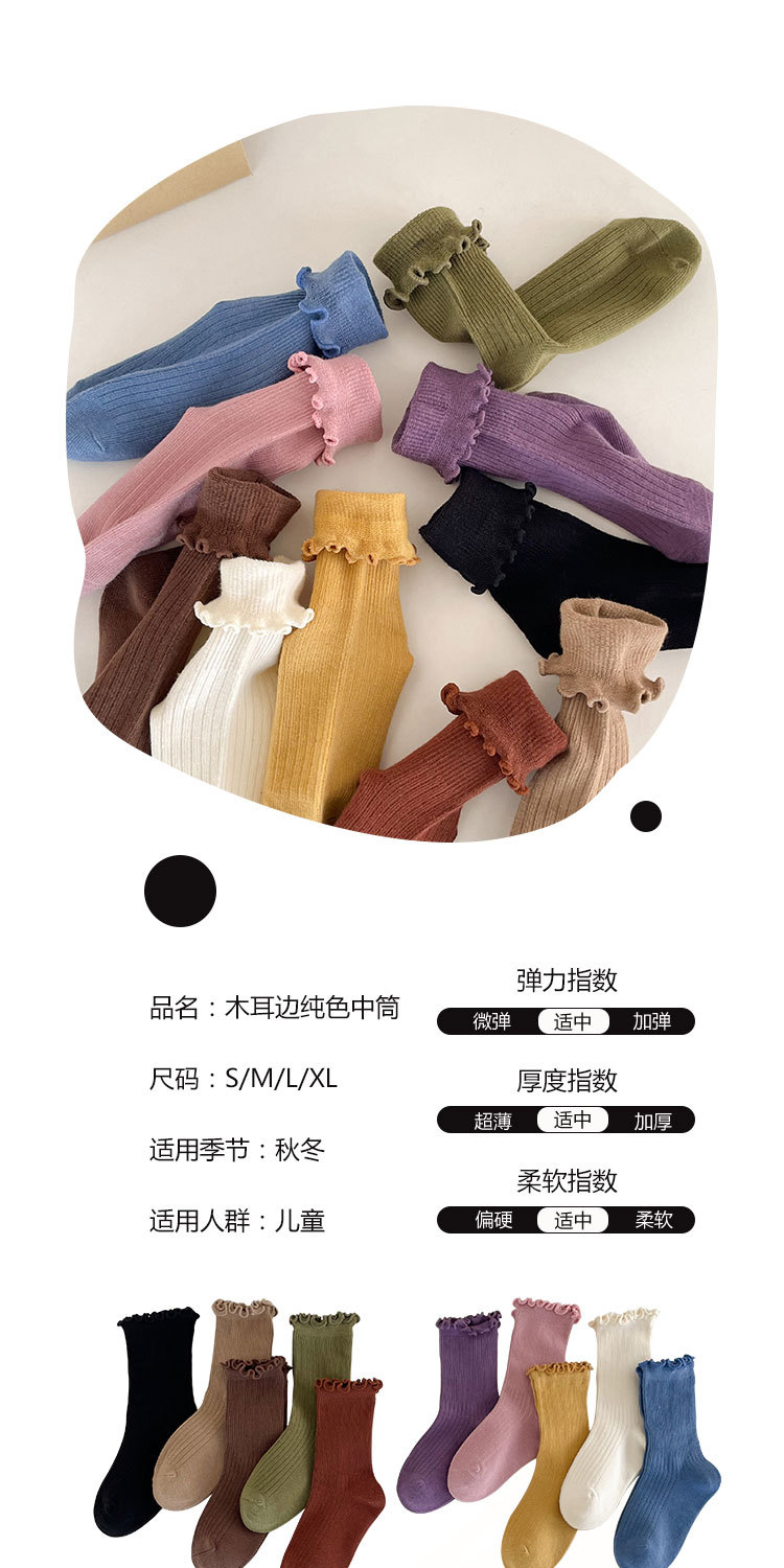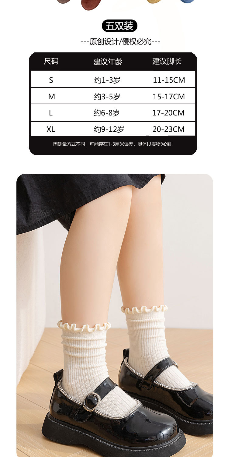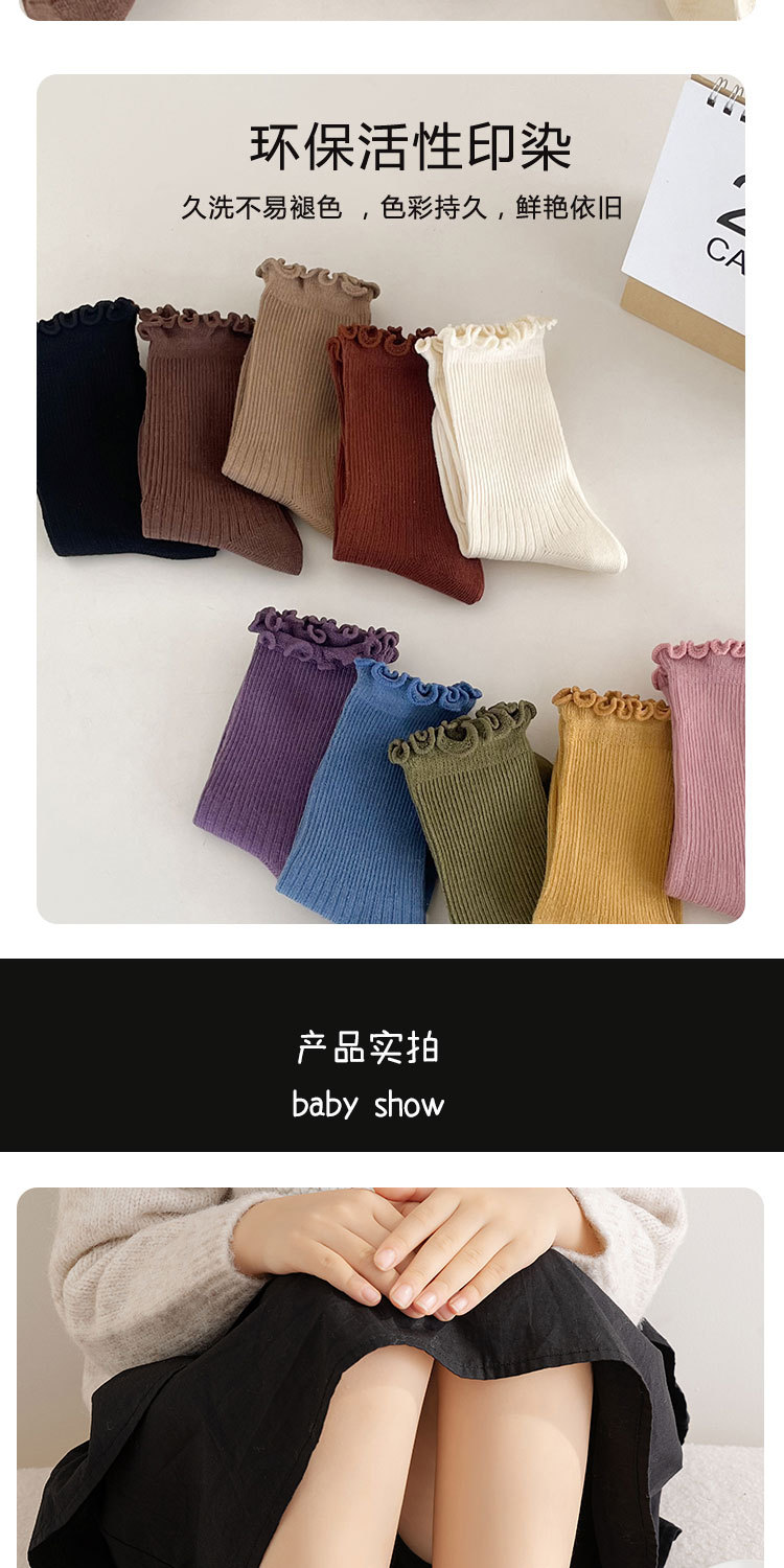 【柔软舒适,精致花边设计】袜子女童堆堆袜 春秋A类棉中筒袜 婴儿袜木耳边花边 宝宝袜儿童袜子-QQ