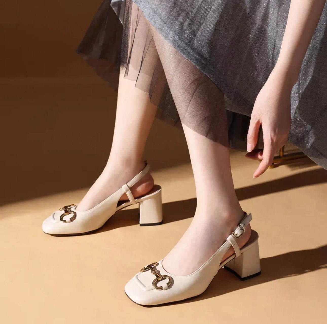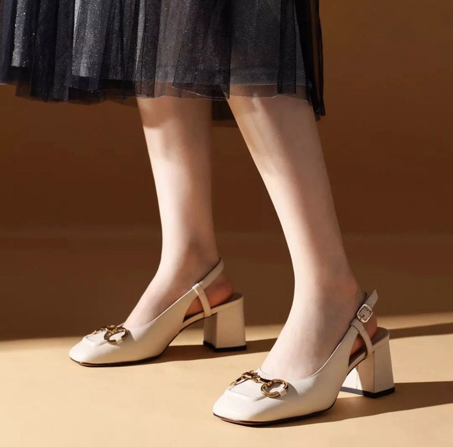 洛诗琳13221高级感马衔扣凉鞋2025新款方圆头粗跟真皮凉鞋81840
