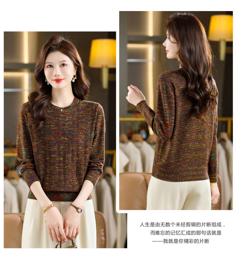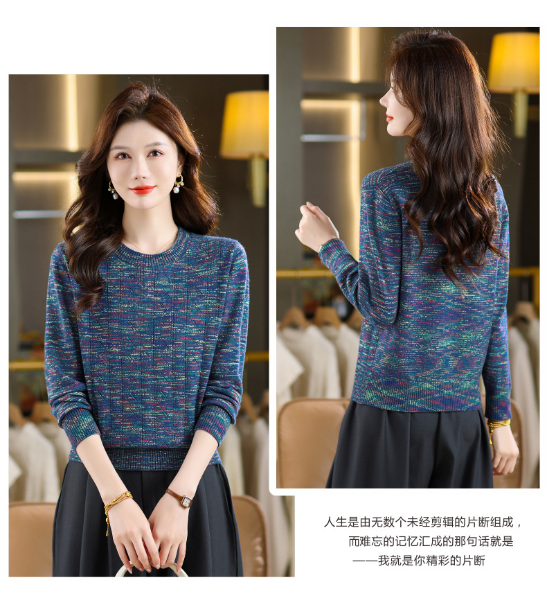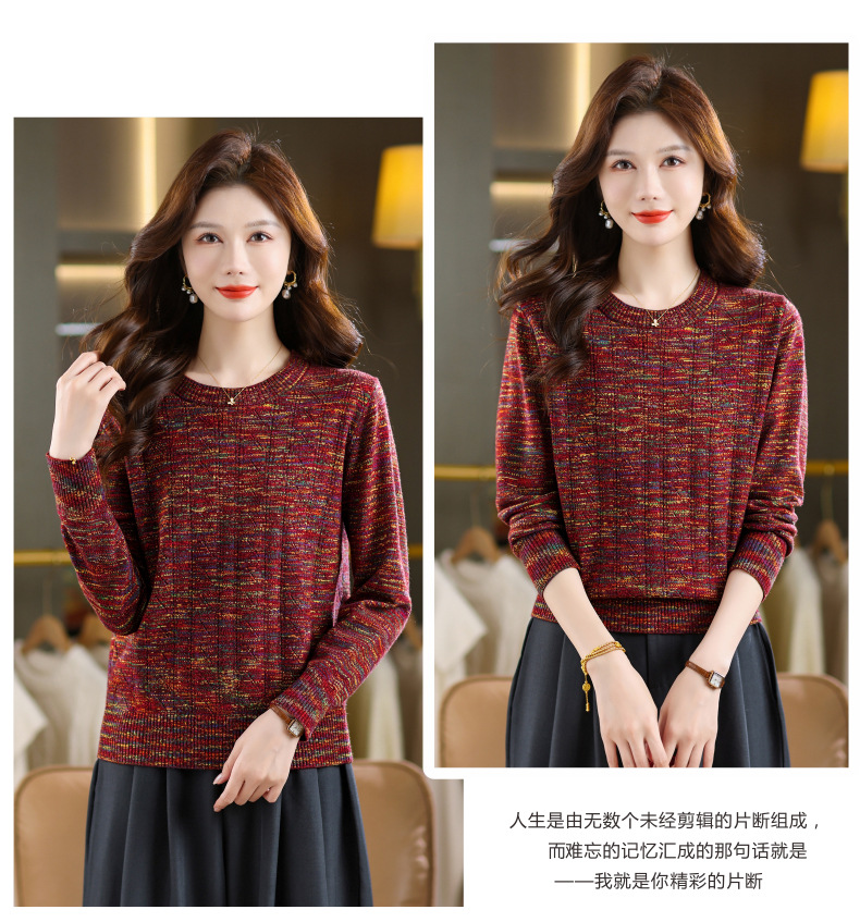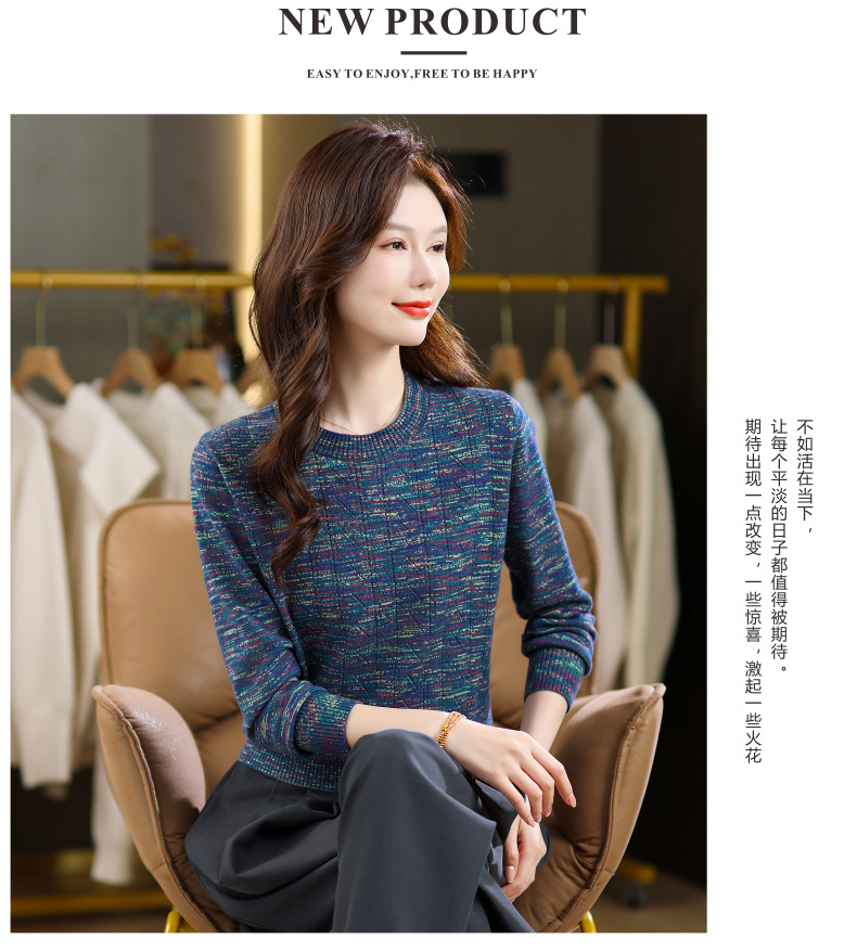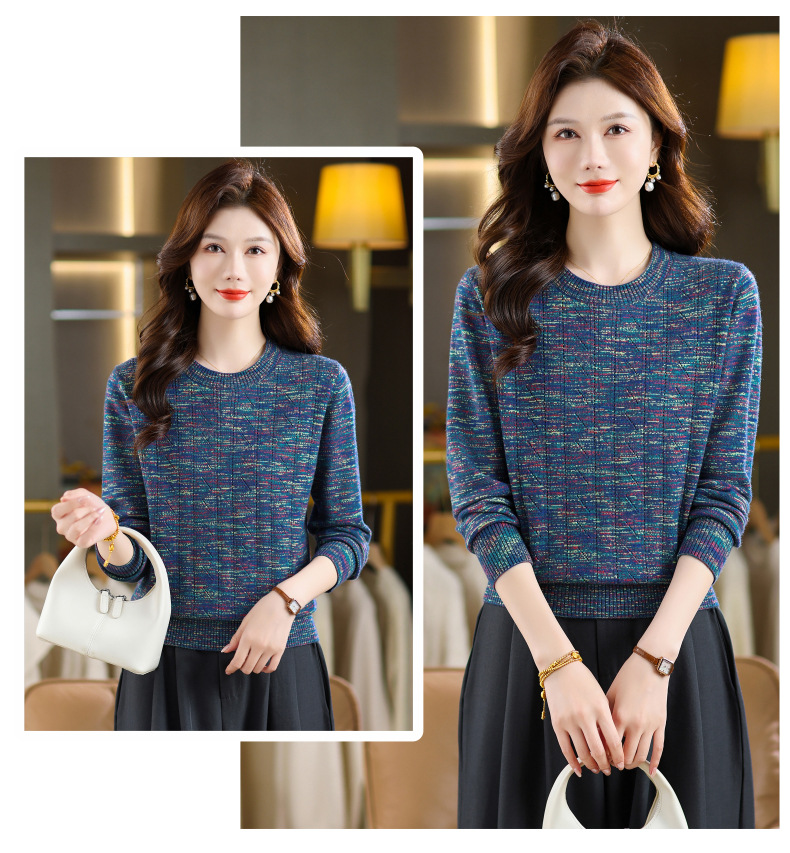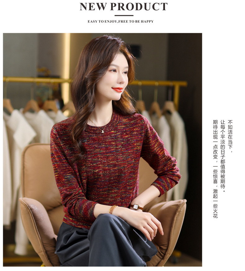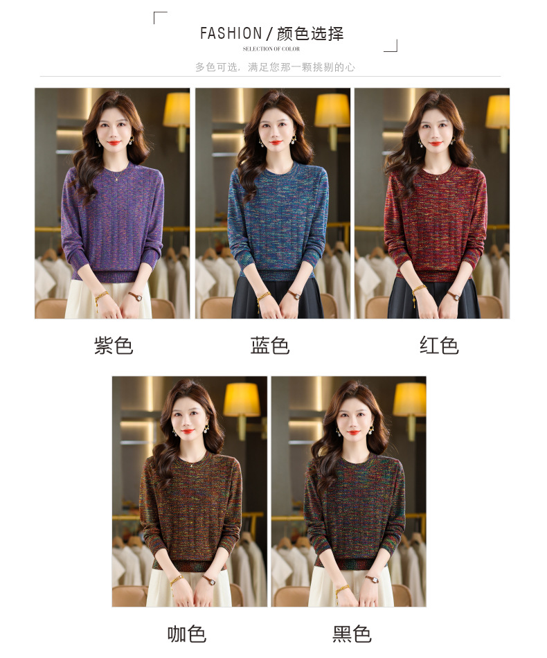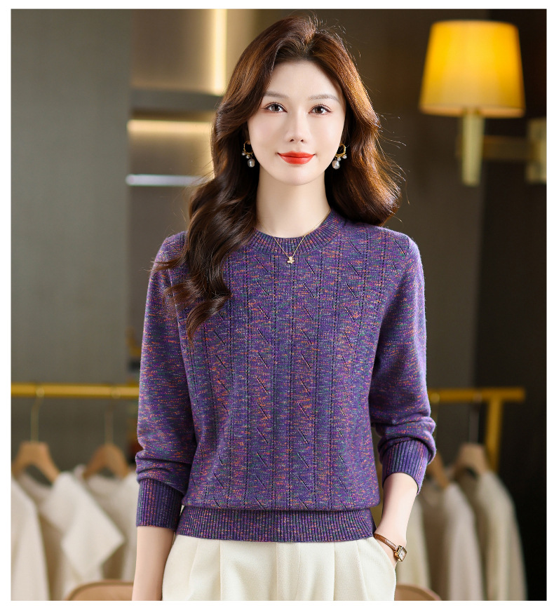 CC紫色圆领针织衫女春秋2025年气质款长袖打底套头宽松显瘦通勤毛衣