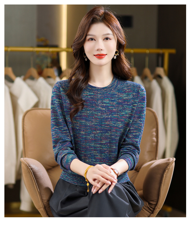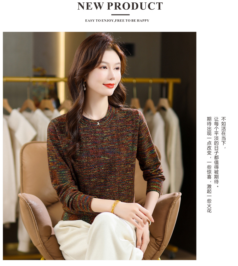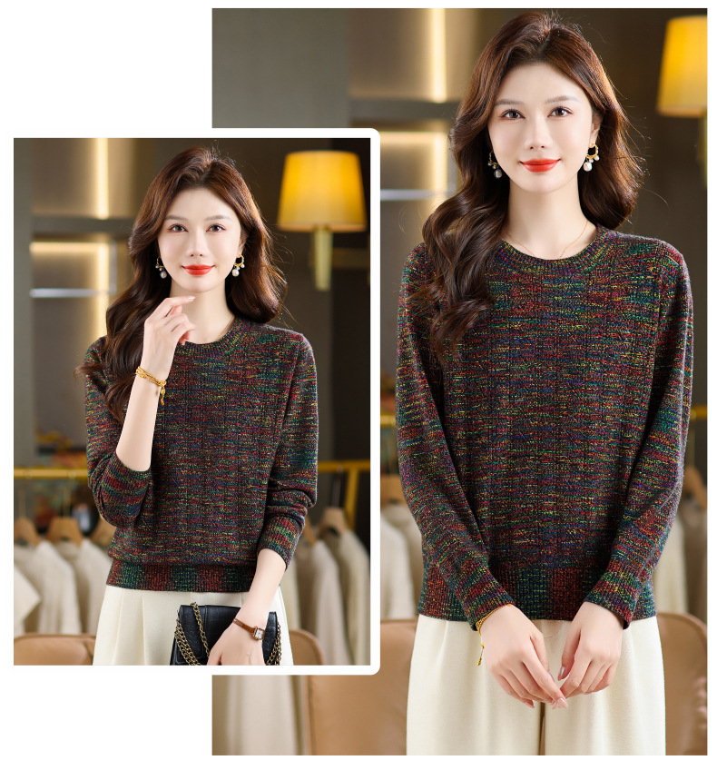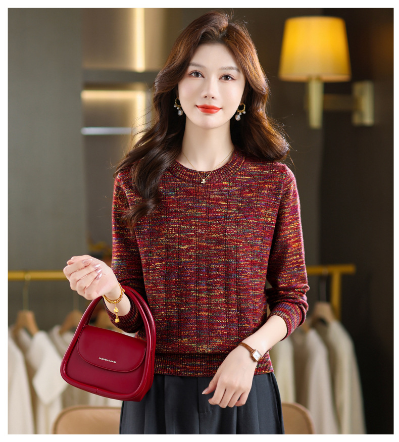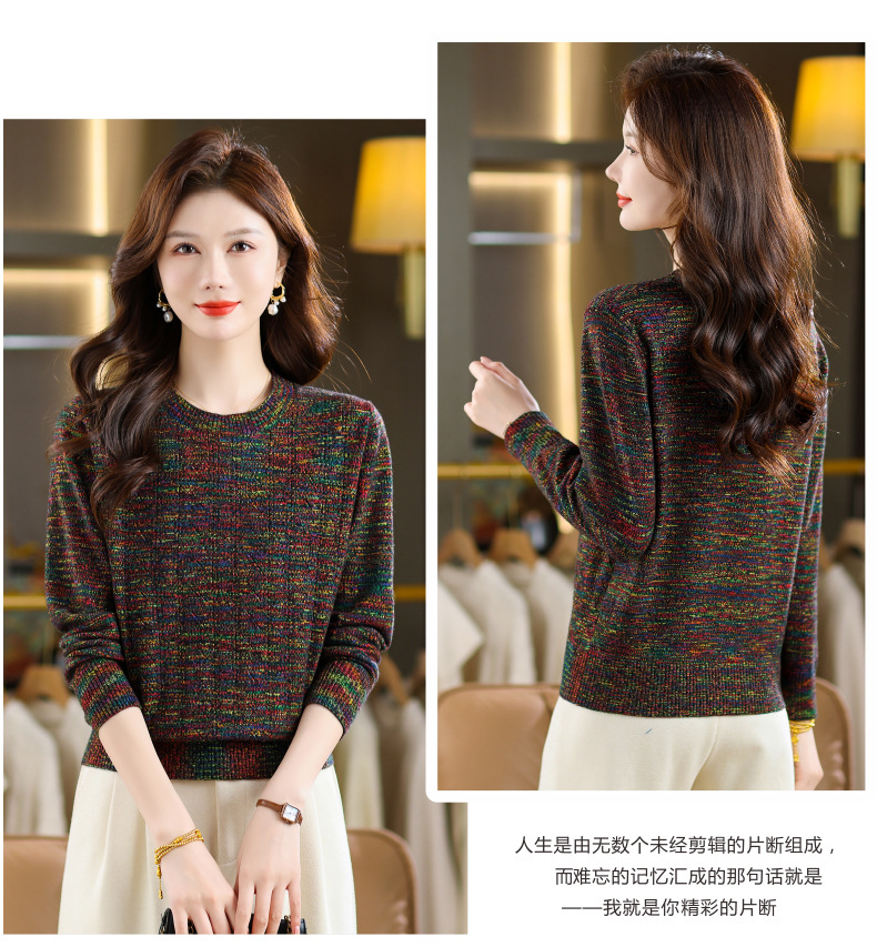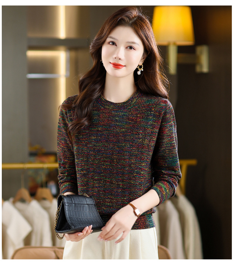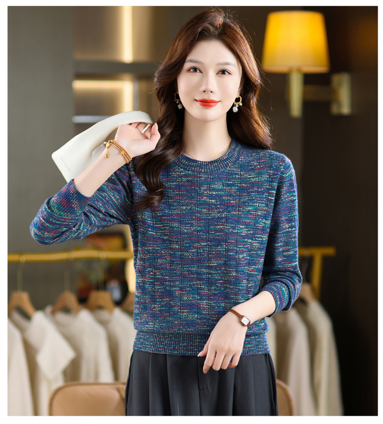 CC紫色圆领针织衫女春秋2025年气质款长袖打底套头宽松显瘦通勤毛衣
