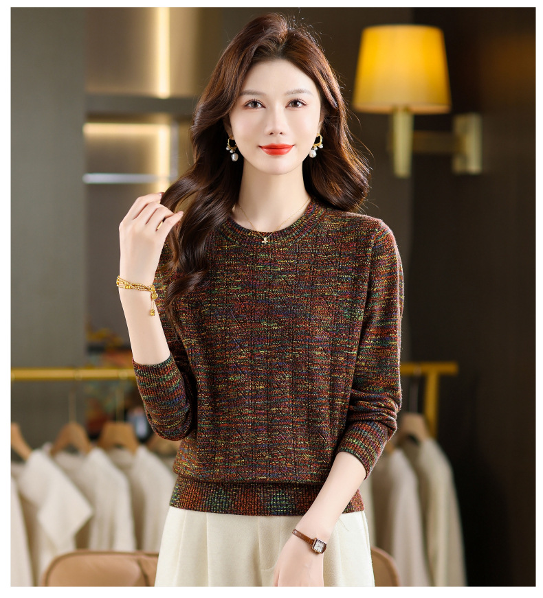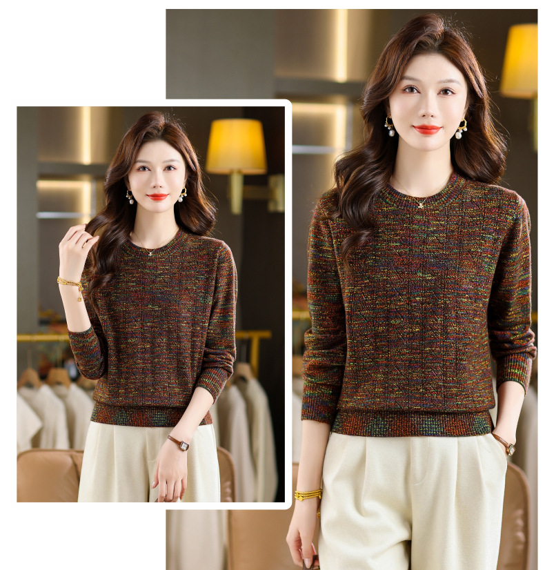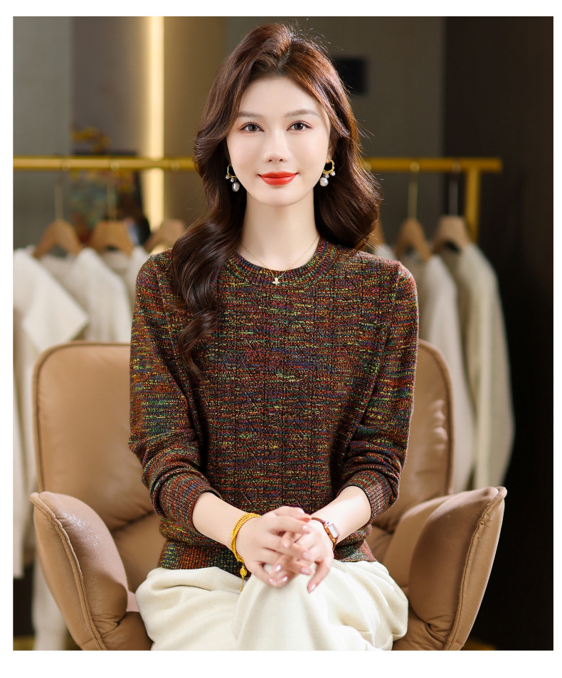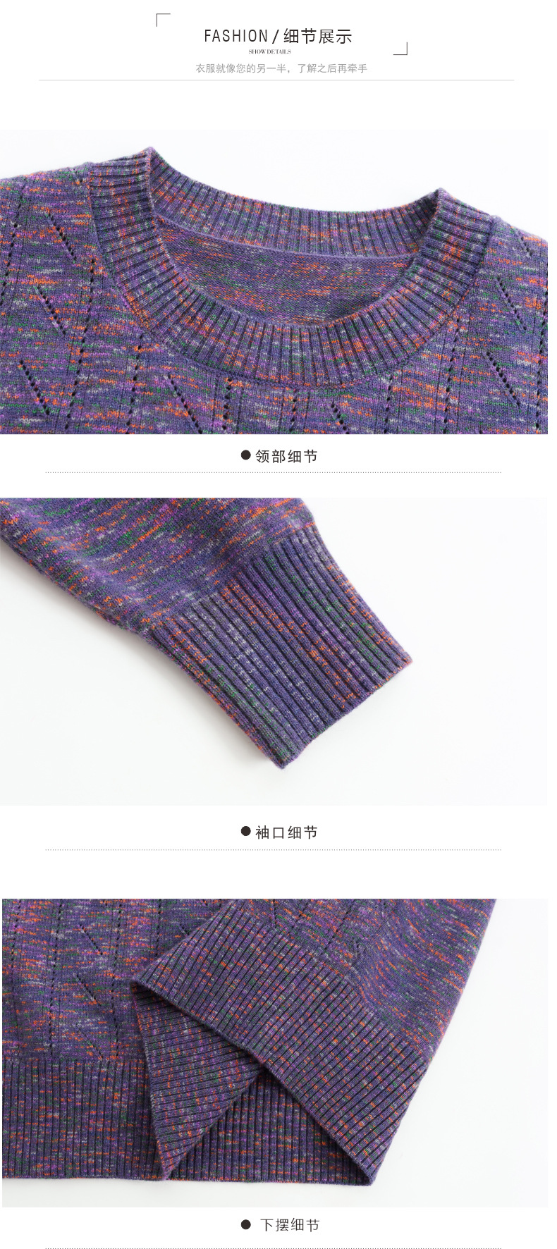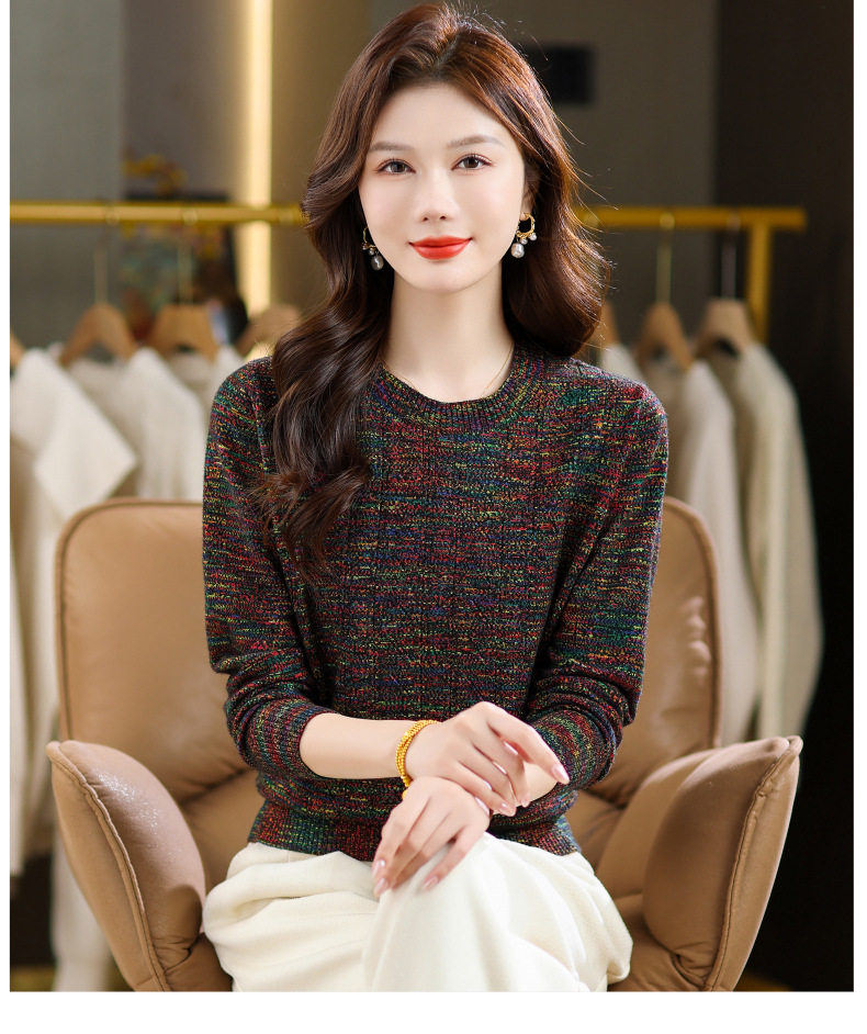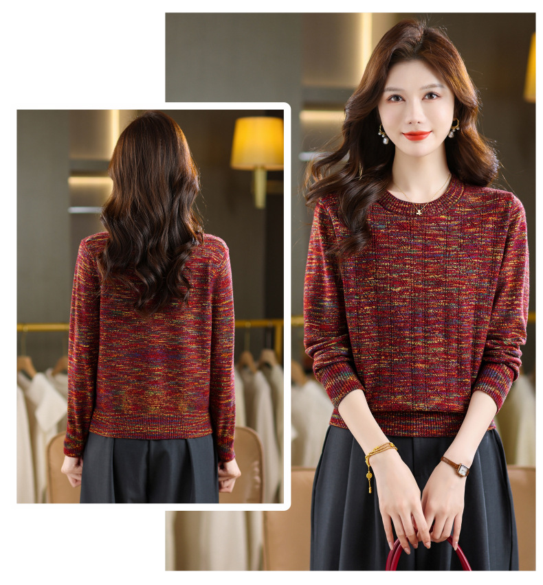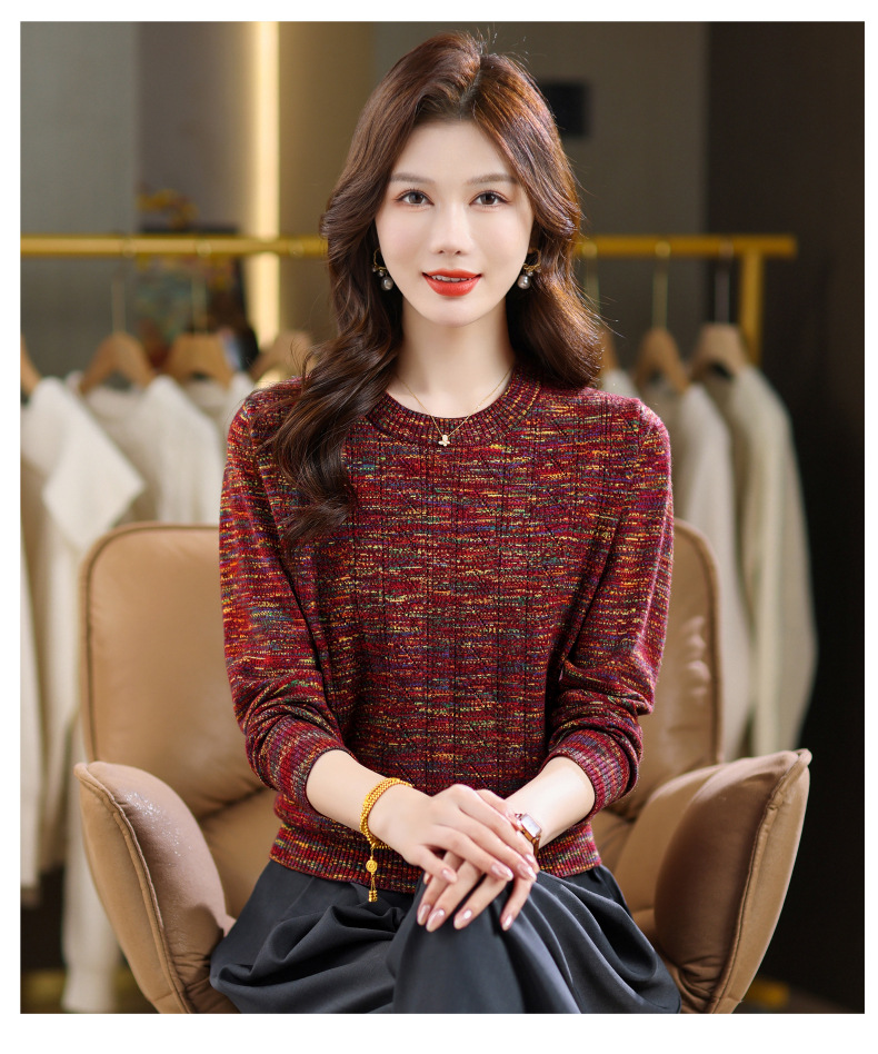 CC紫色圆领针织衫女春秋2025年气质款长袖打底套头宽松显瘦通勤毛衣