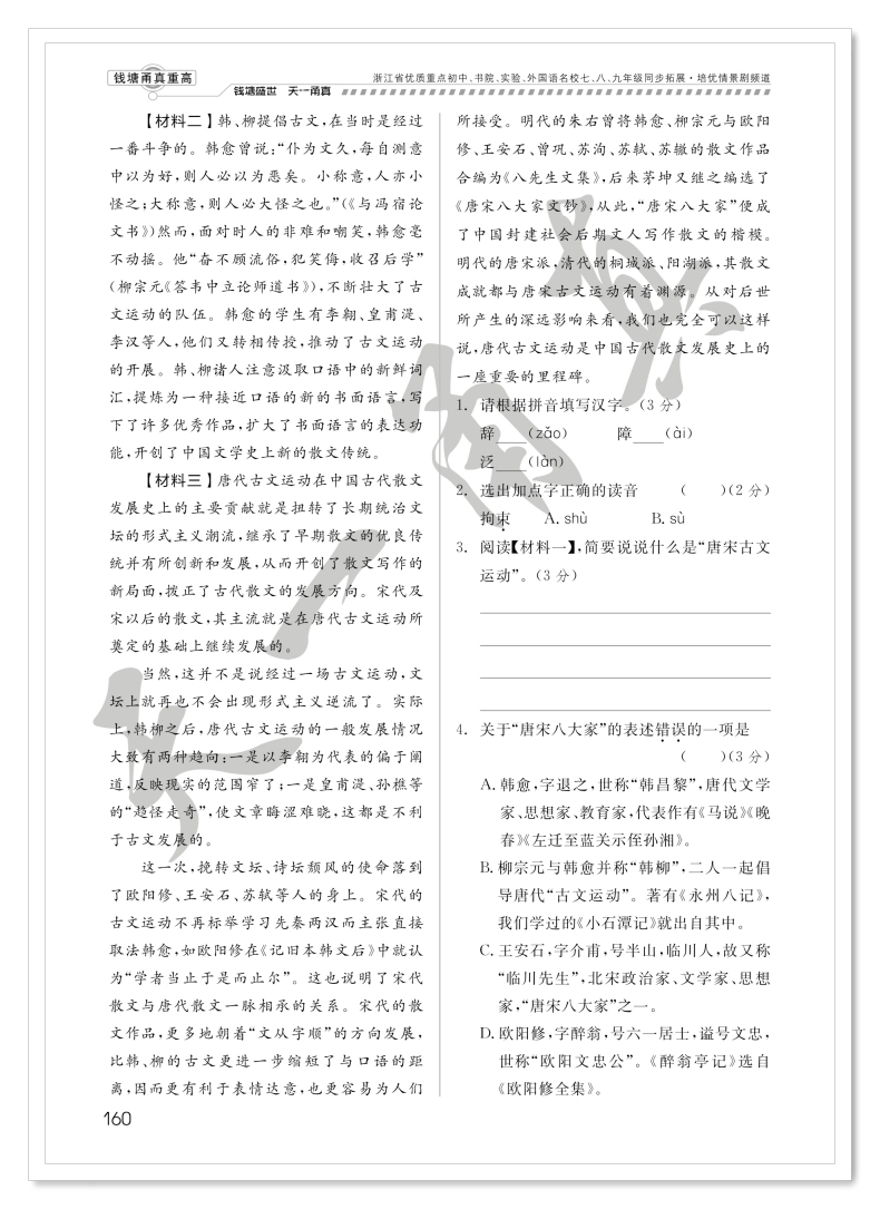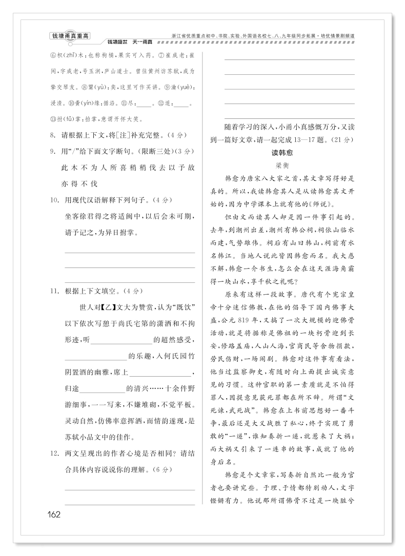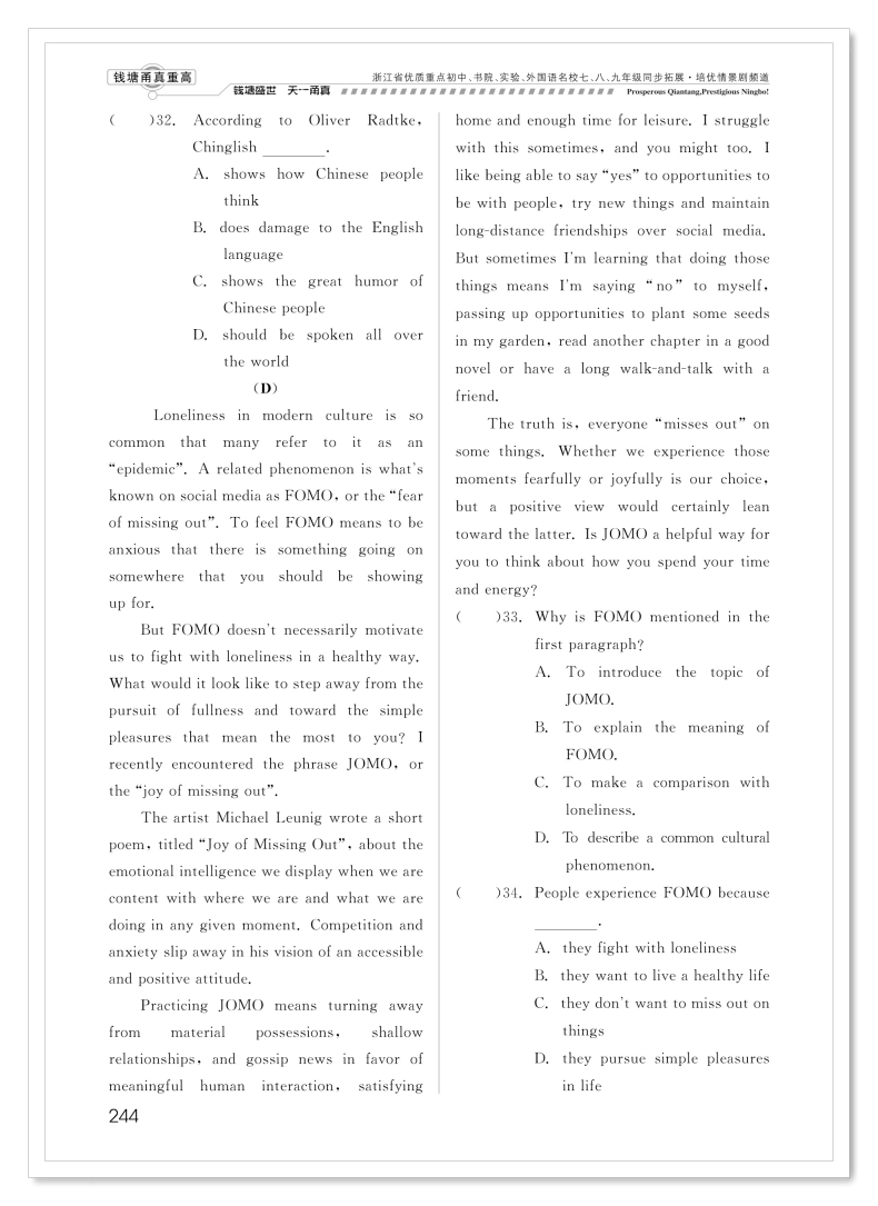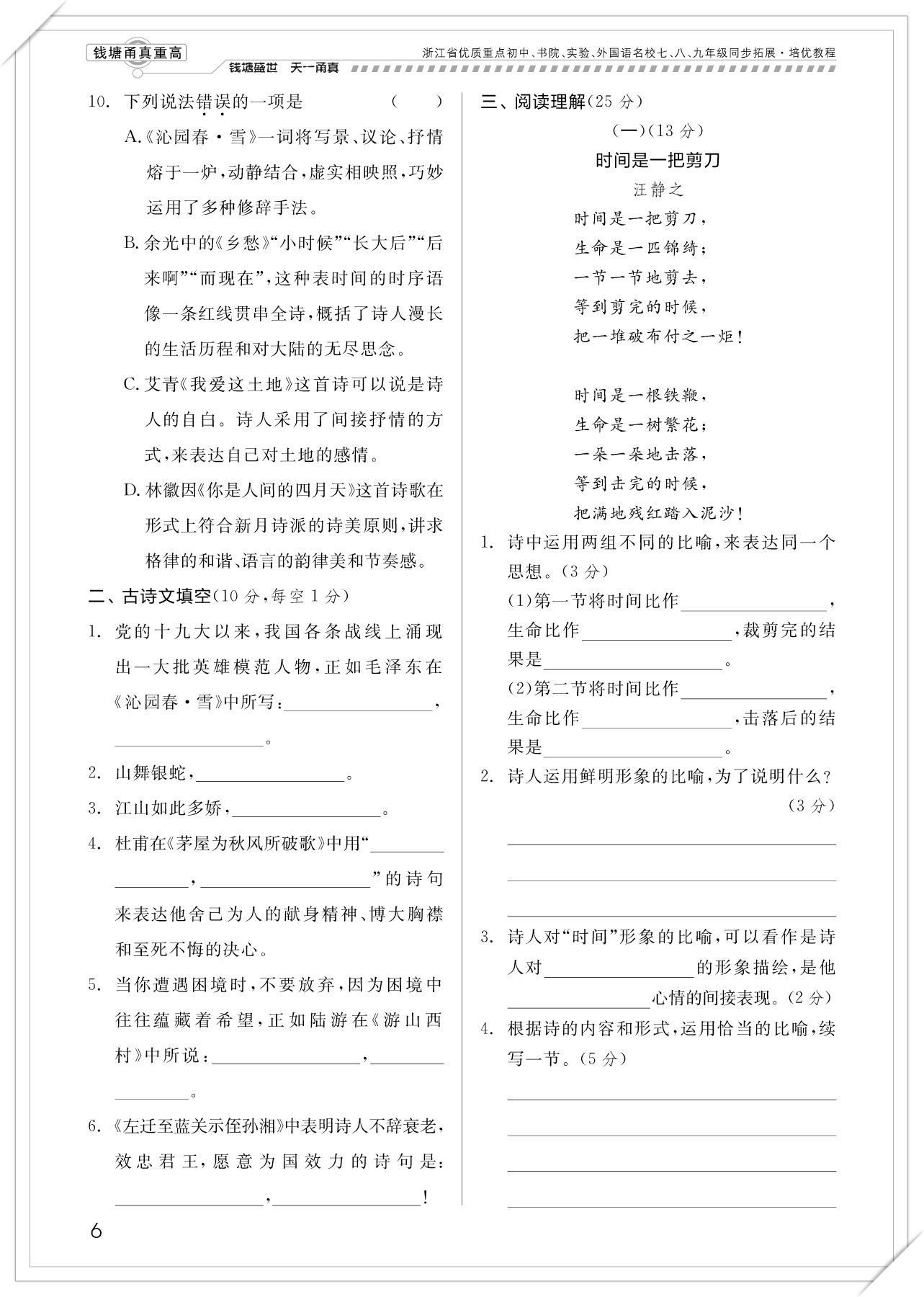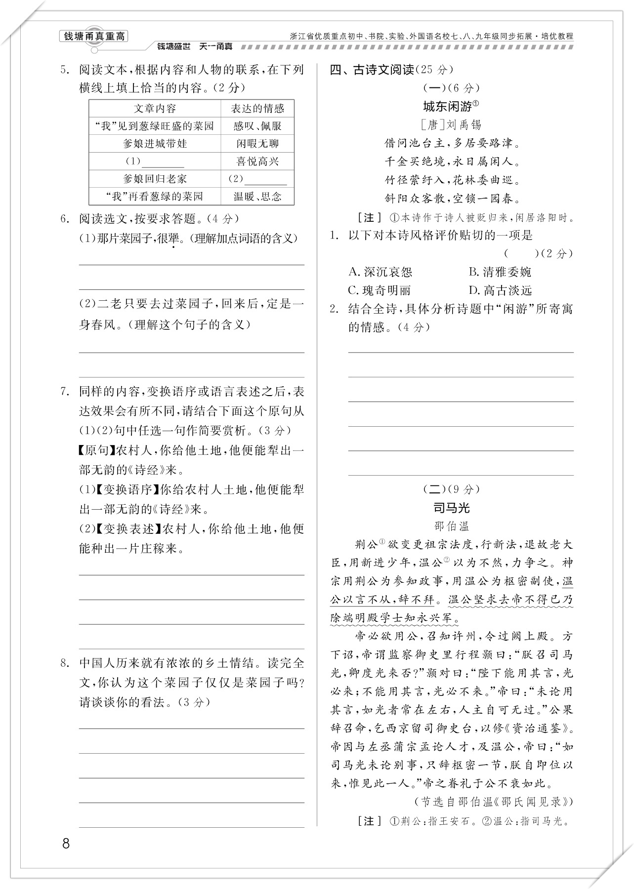 2025新版钱塘甬真重高九年级语数英科科目任选