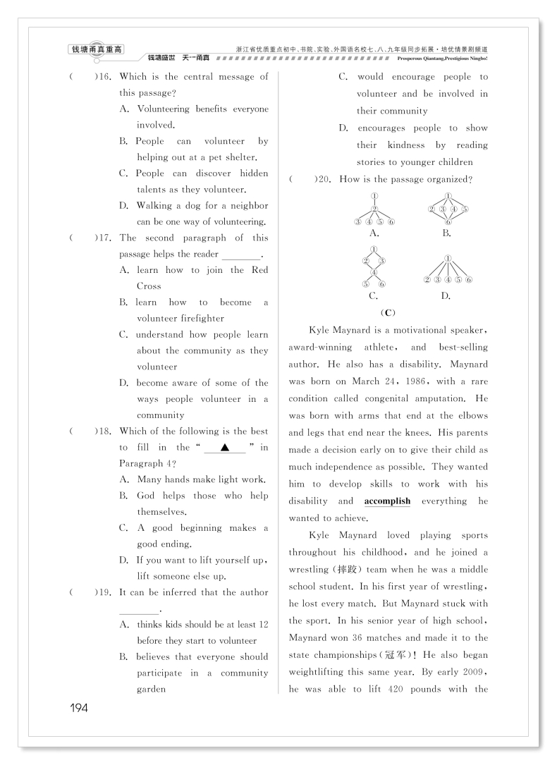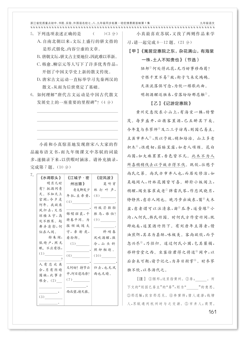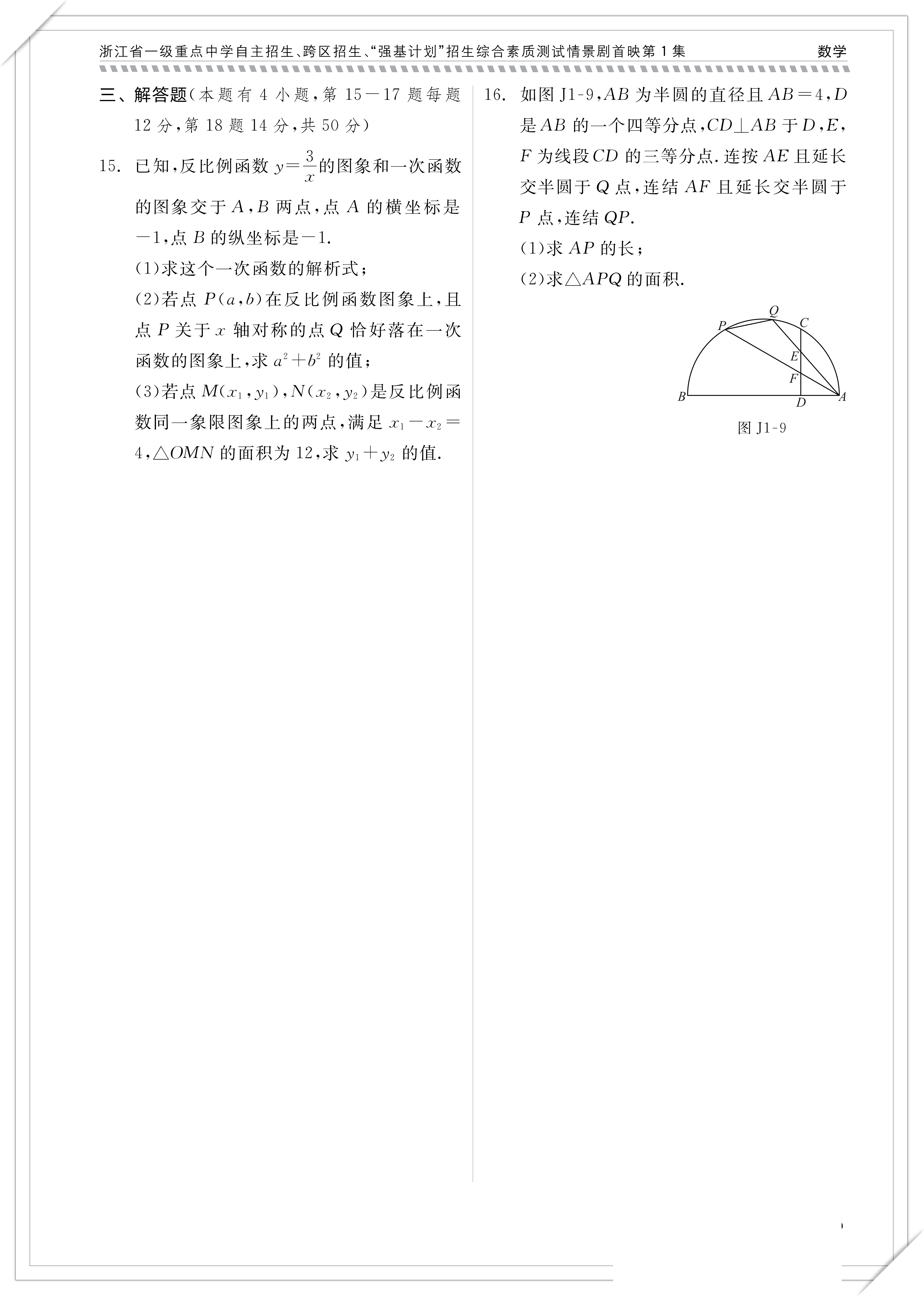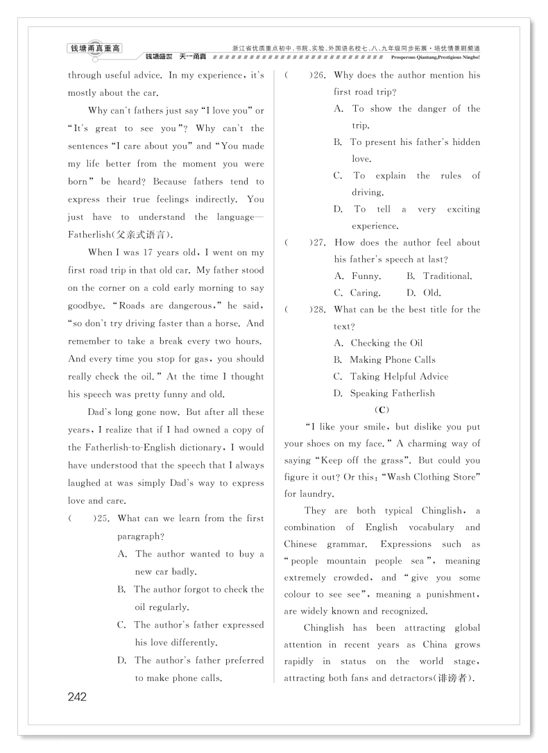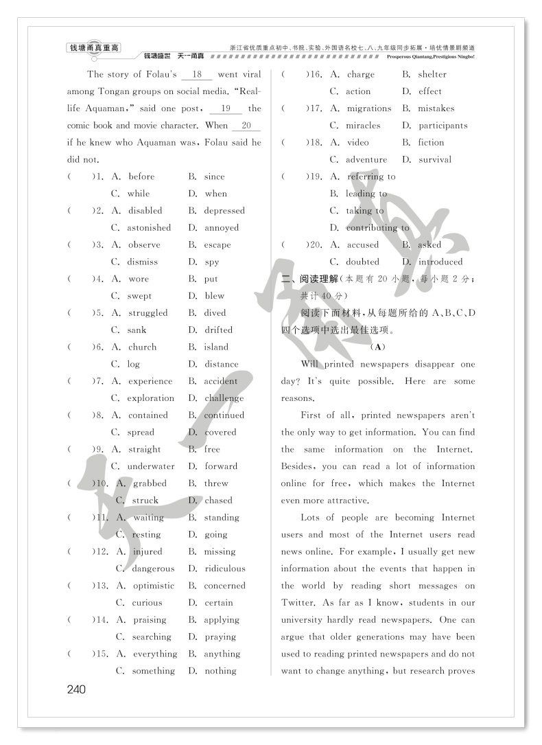 2025新版钱塘甬真重高九年级语数英科科目任选