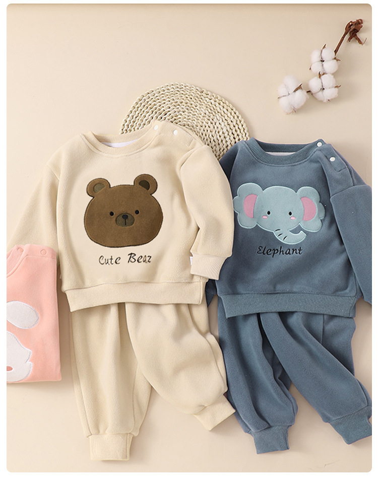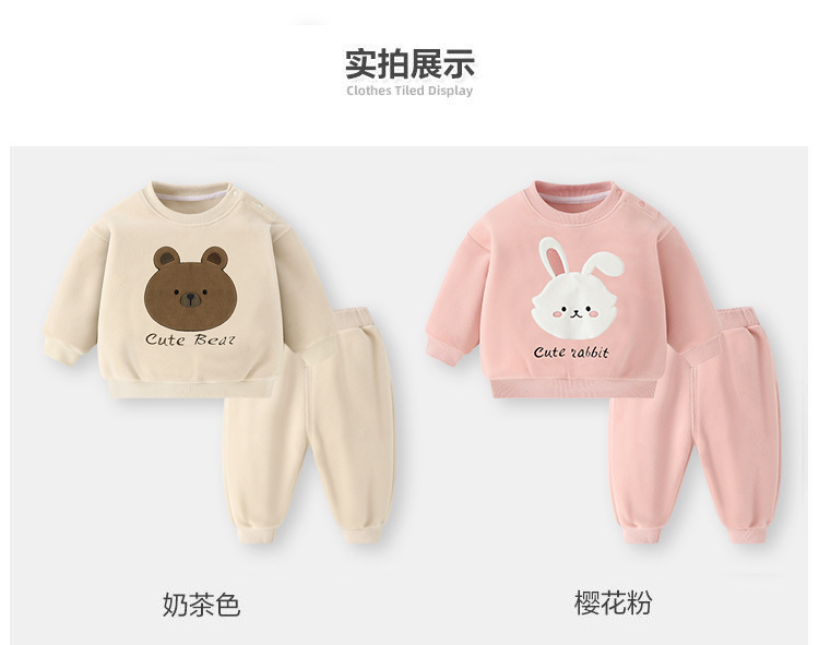 【婴儿奥粒绒卫衣套装,加绒保暖,两件套更超值】婴儿奥粒绒卫衣套装 冬装秋冬男童儿童女宝加绒保暖两件套-QQ