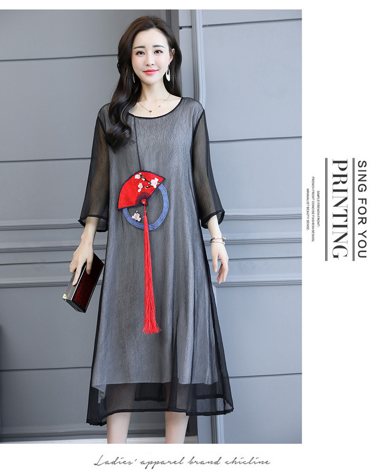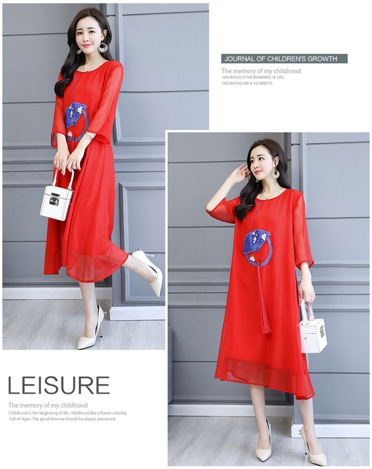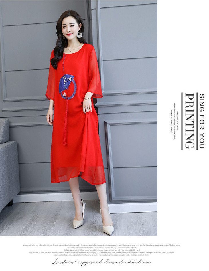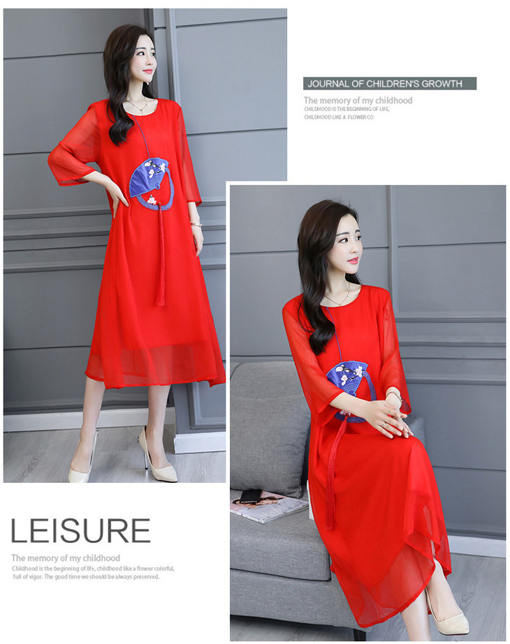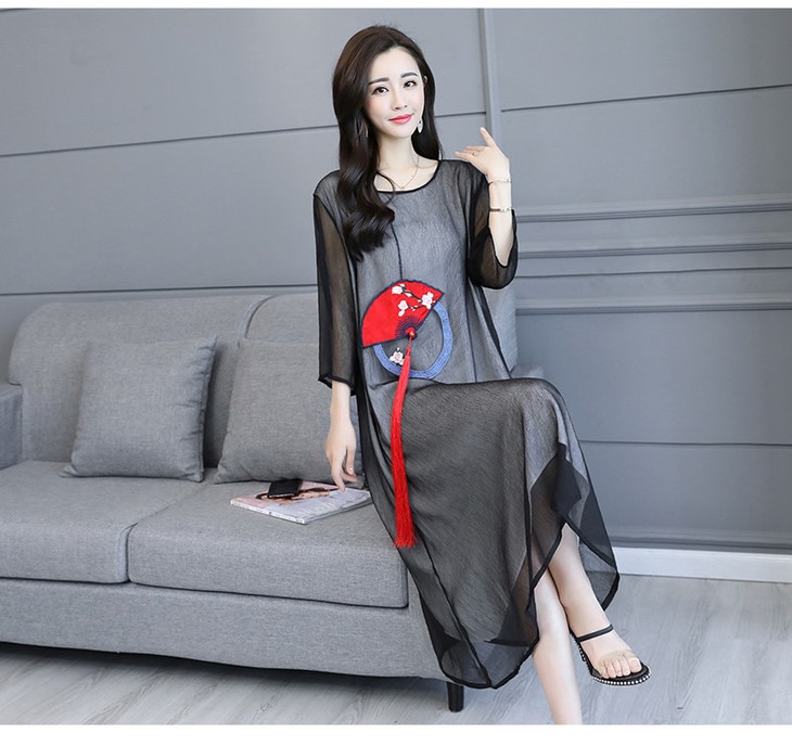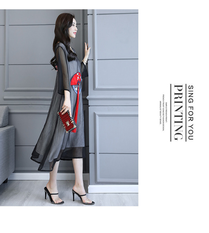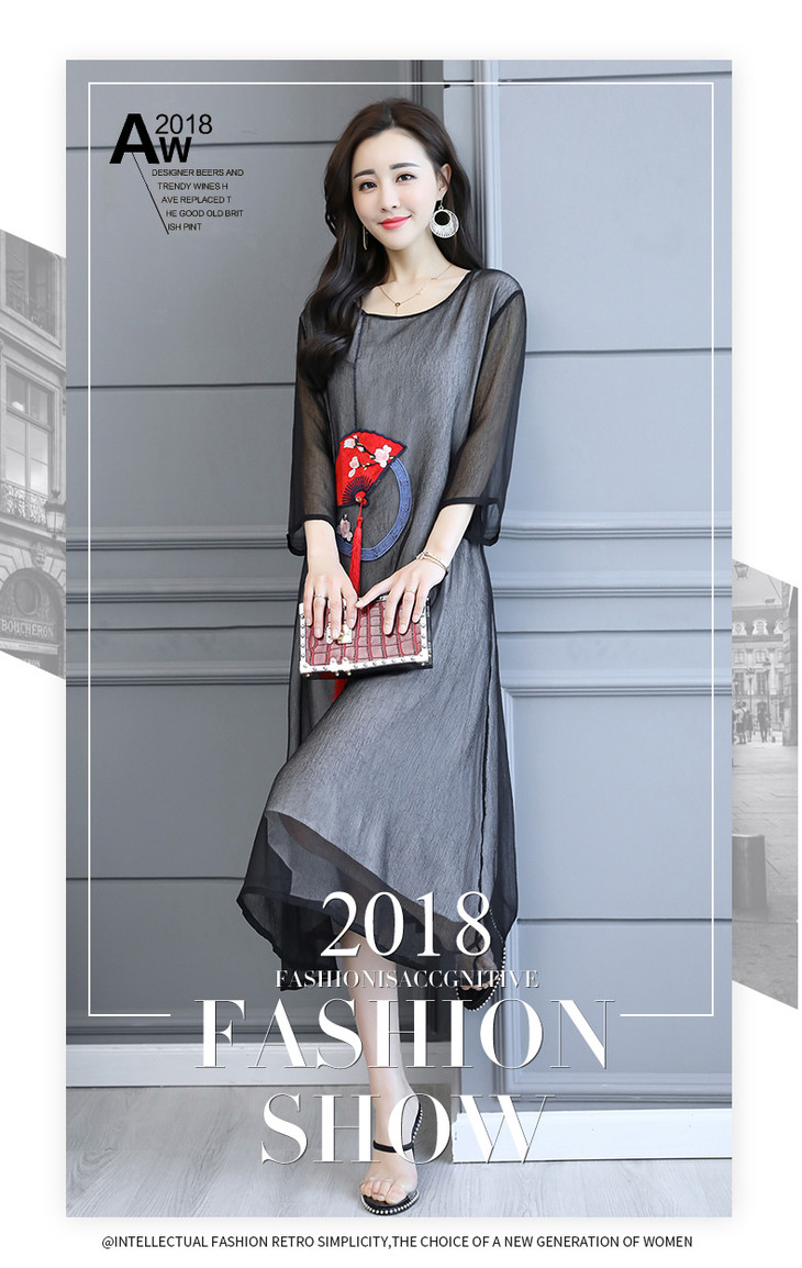 C9004春夏秋冬新款旗袍裙长款旗袍两件套表演礼服