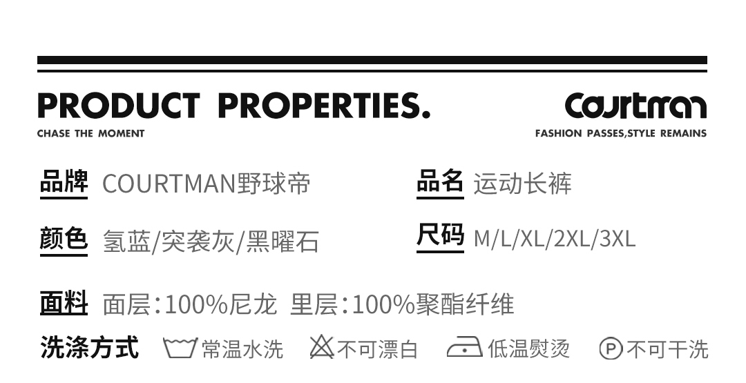COURTMAN束脚卫裤男2021秋冬新款宽松运动长裤梭织休闲裤子野球帝