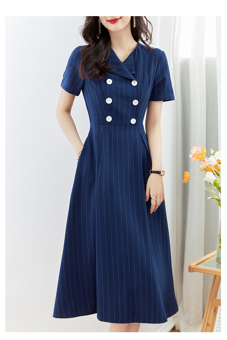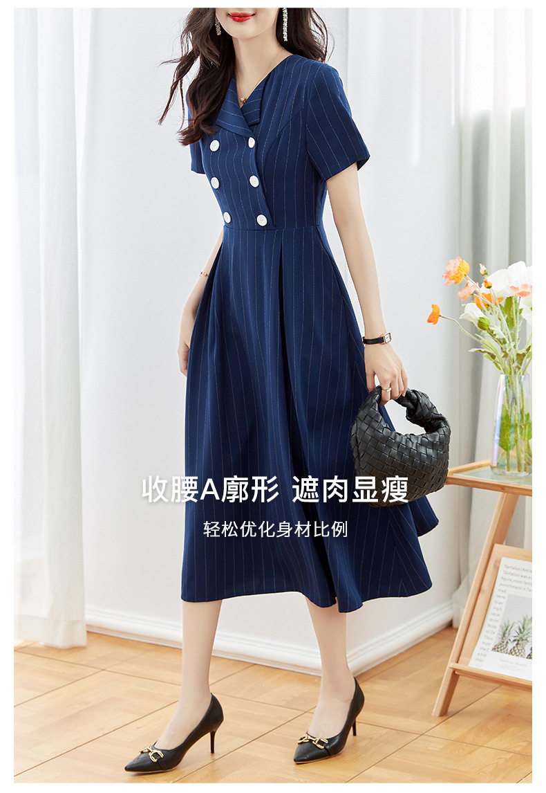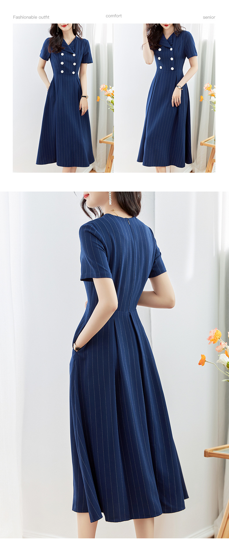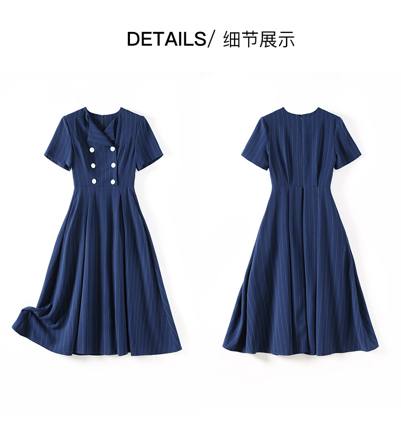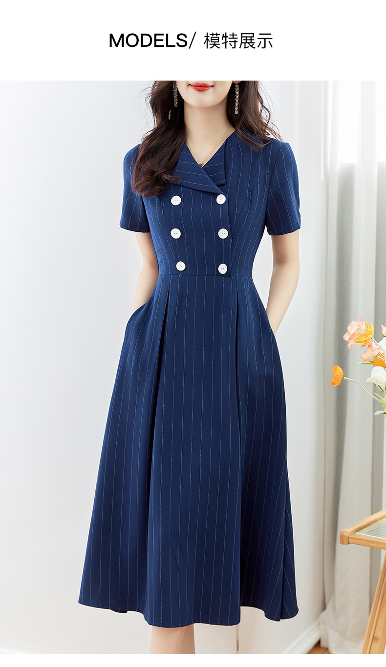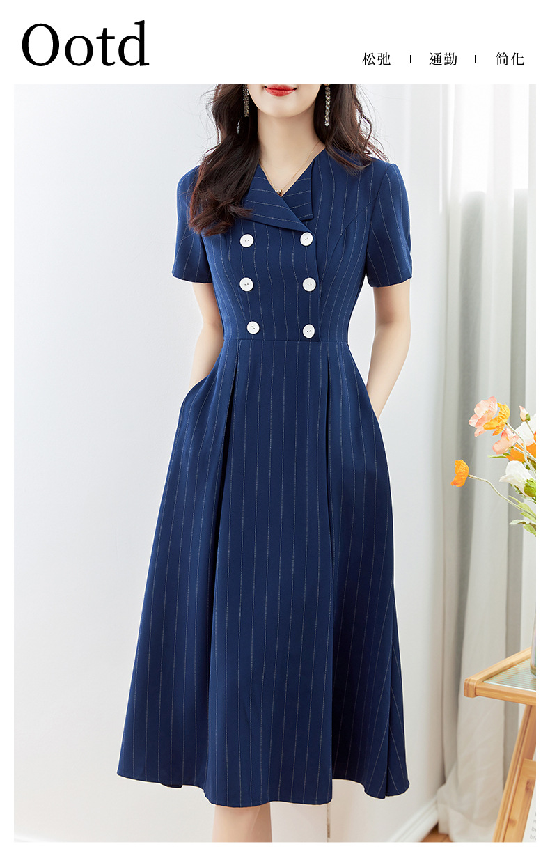 收腰显瘦,设计感竖条纹双排扣通勤职业大摆衬衫式连衣裙WLZD-2313308