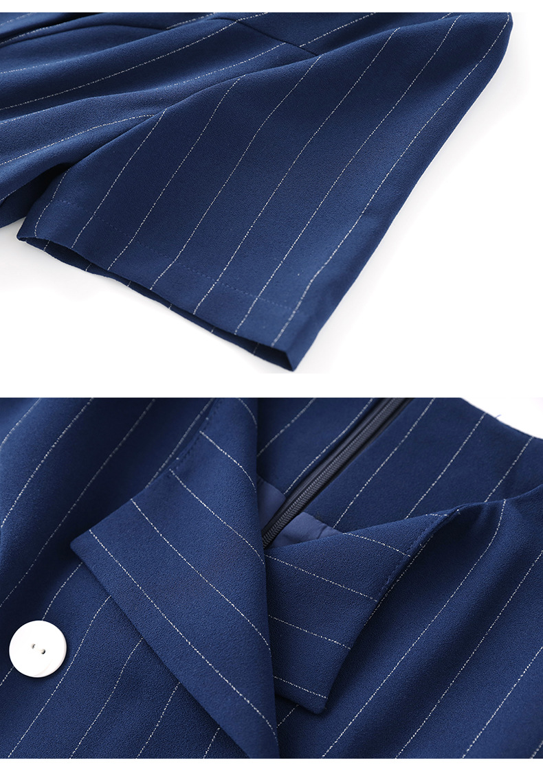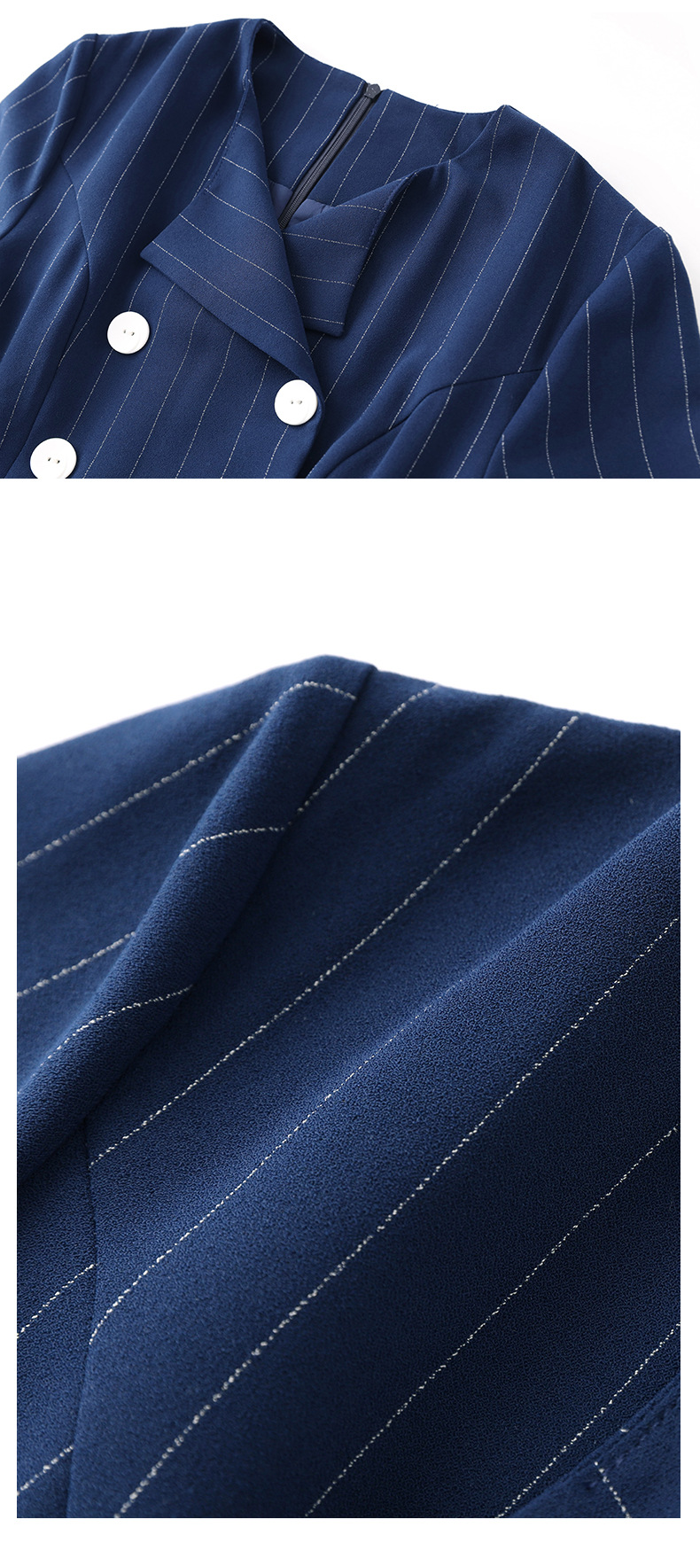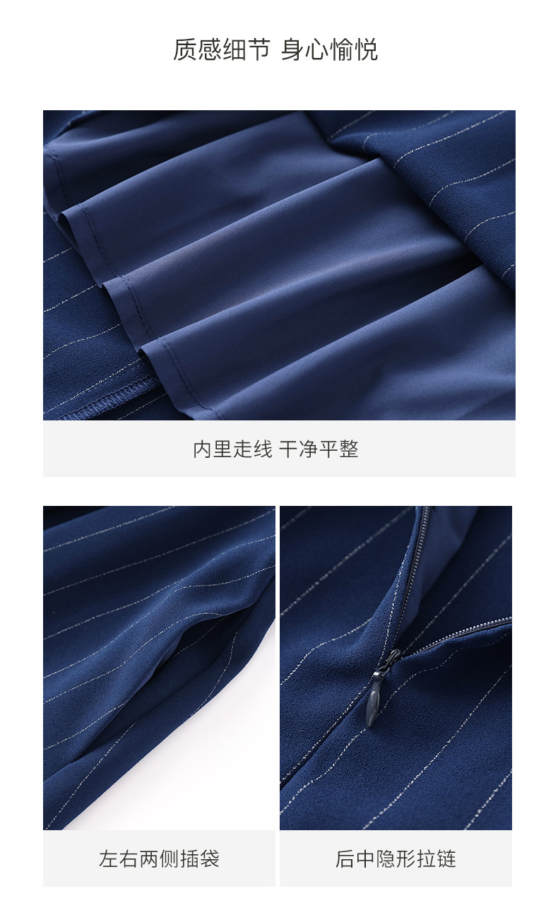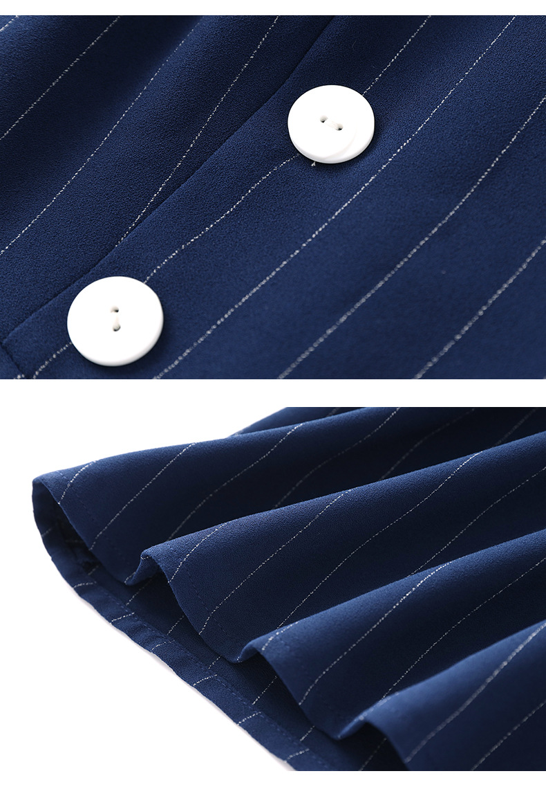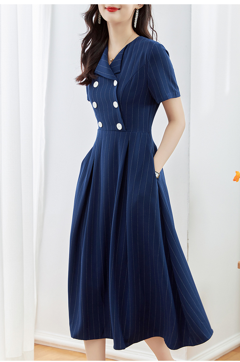 收腰显瘦,设计感竖条纹双排扣通勤职业大摆衬衫式连衣裙WLZD-2313308