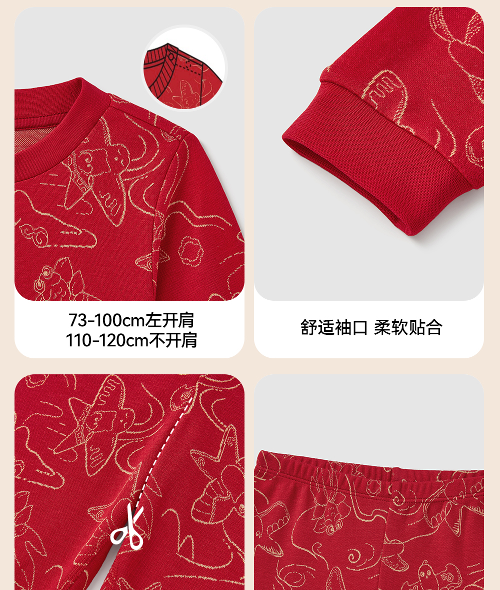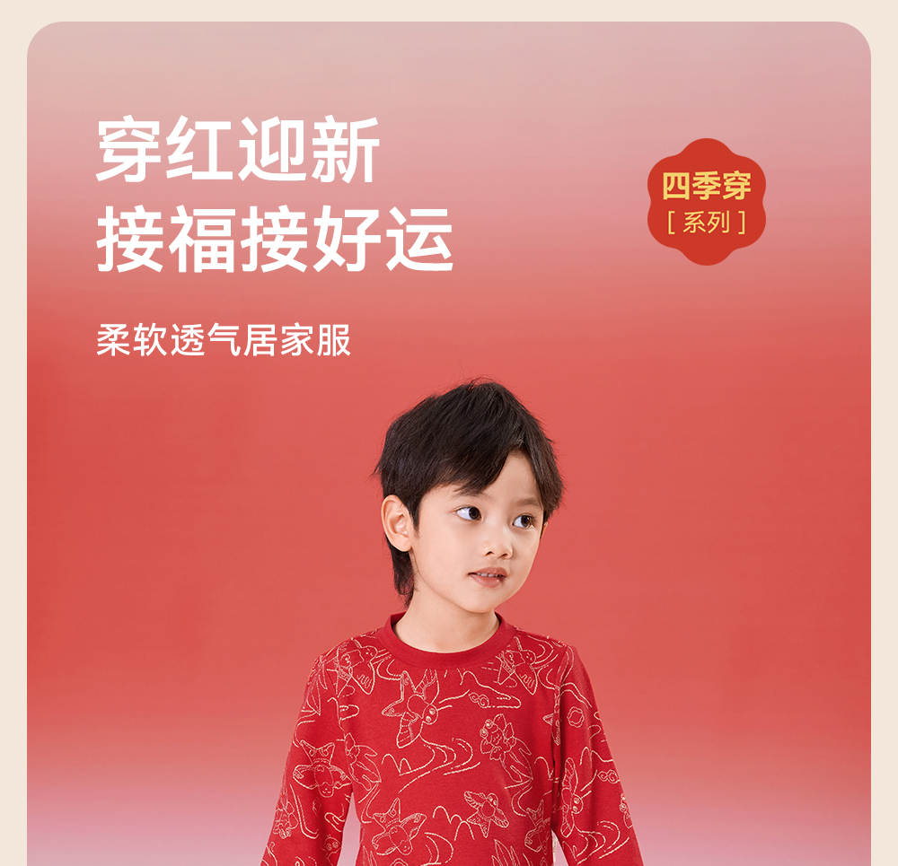 【商场同款】英氏儿童家居服春季长袖柔软透气睡衣睡裤喜庆新年款