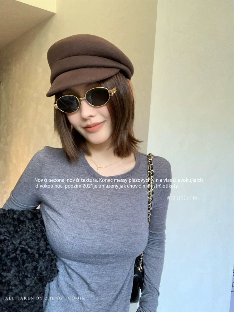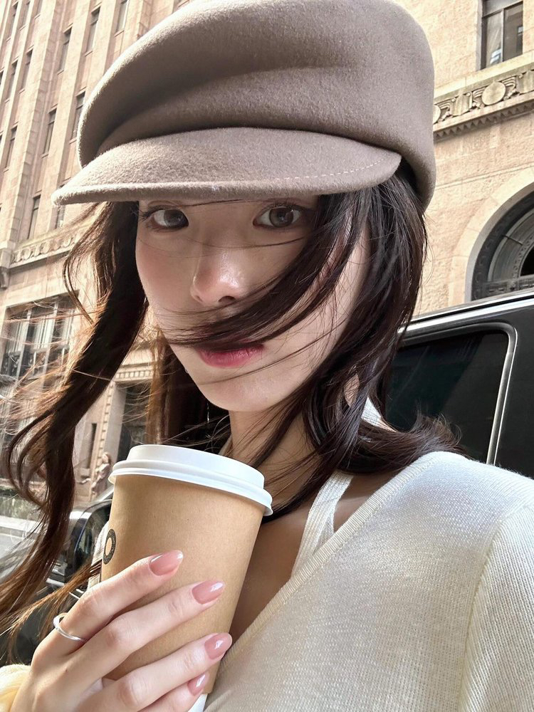 这款报童帽立体裁剪太绝了,软塌头戴上都能支棱出圆头型,颅顶视觉高了一截,是我戴过最显头小的帽子而且不压头发!最惊喜的是宽帽檐!方圆脸的颧骨直接被得严实实,对着镜子一看,下颌线都变流畅了,秒有小V脸既视感~