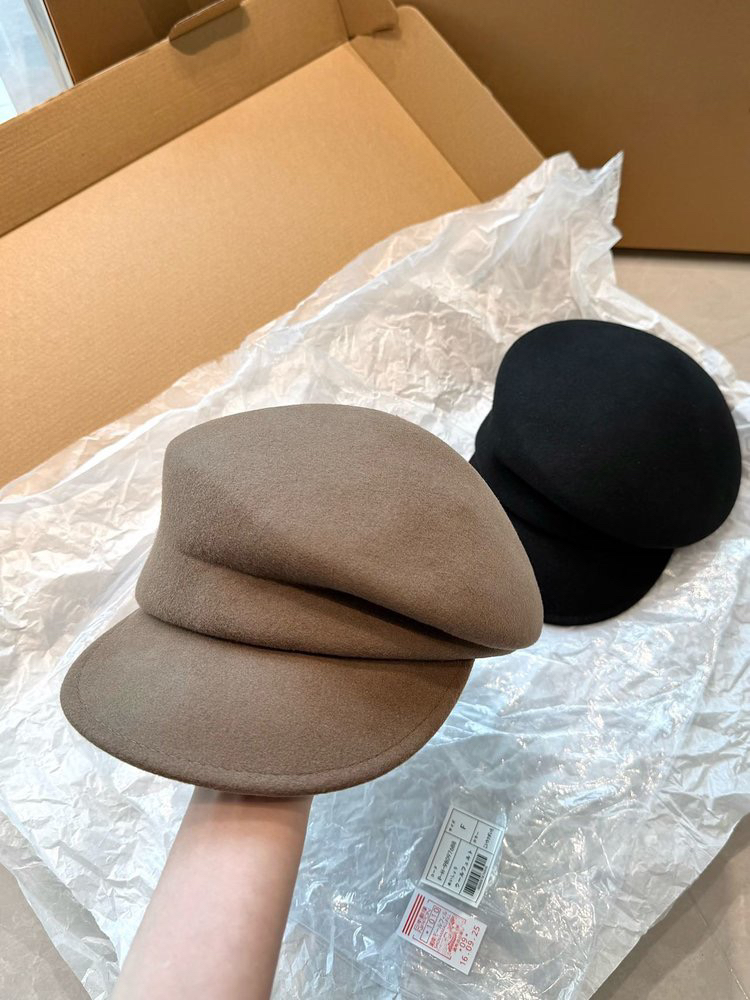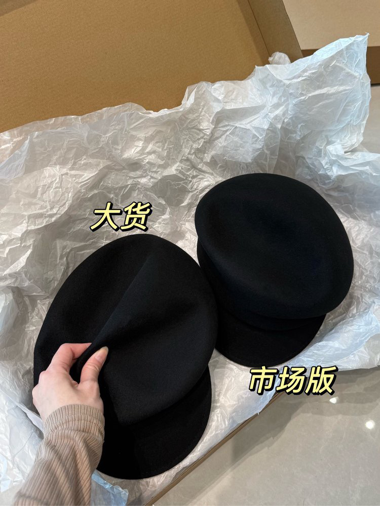 整体是比较软的,也可以随意塞在包里面,拿出来戴上头有很容易支棱起来,羊毛报童帽由前帽檐,蓬松感形状与不规则压褶构成,小日子真的很会拿捏细节~对比🆚市场版:市场版内部细节处理得不好,版型比较生硬,市场版的毛手感一般