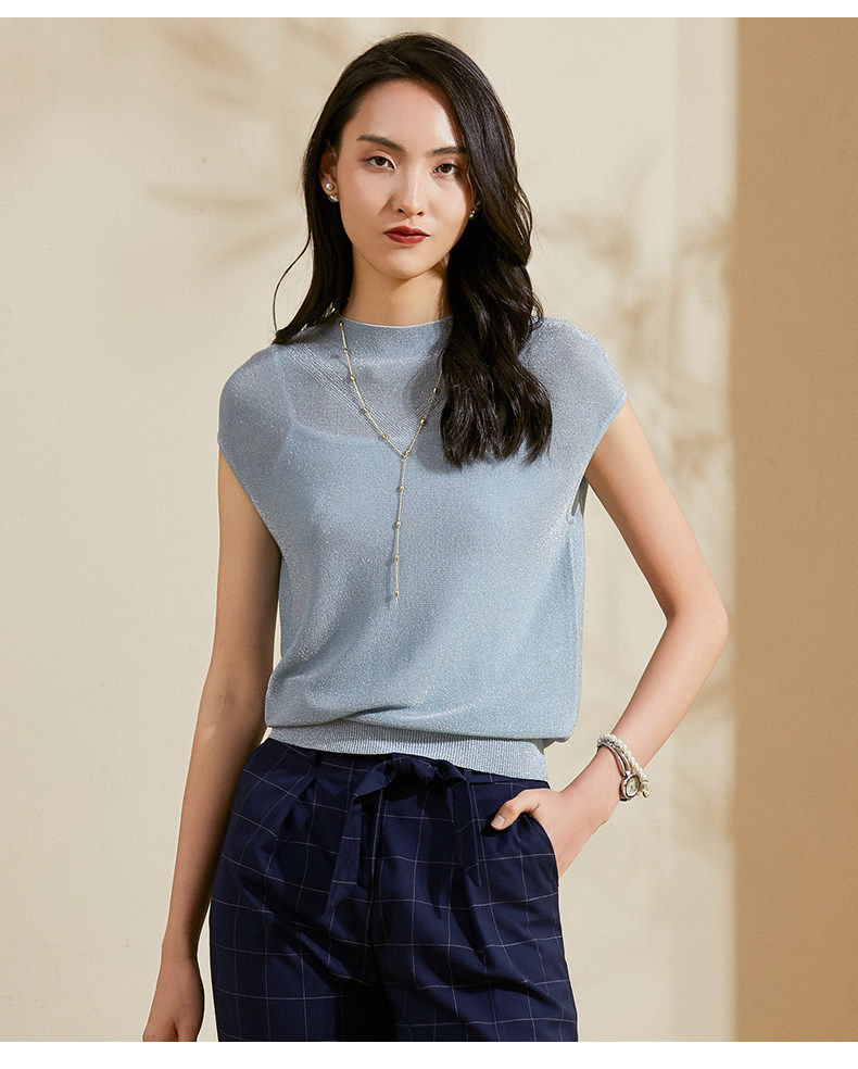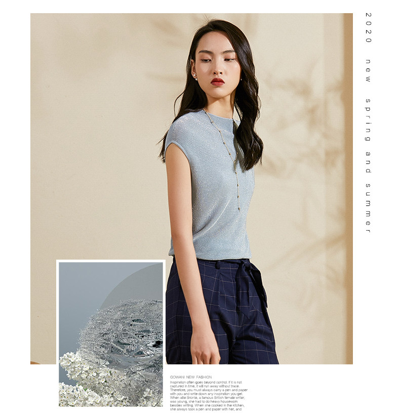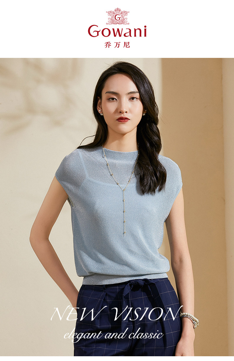 乔万尼针织衫夏季新款短袖薄款套头上衣简约流行纯色ES1M010