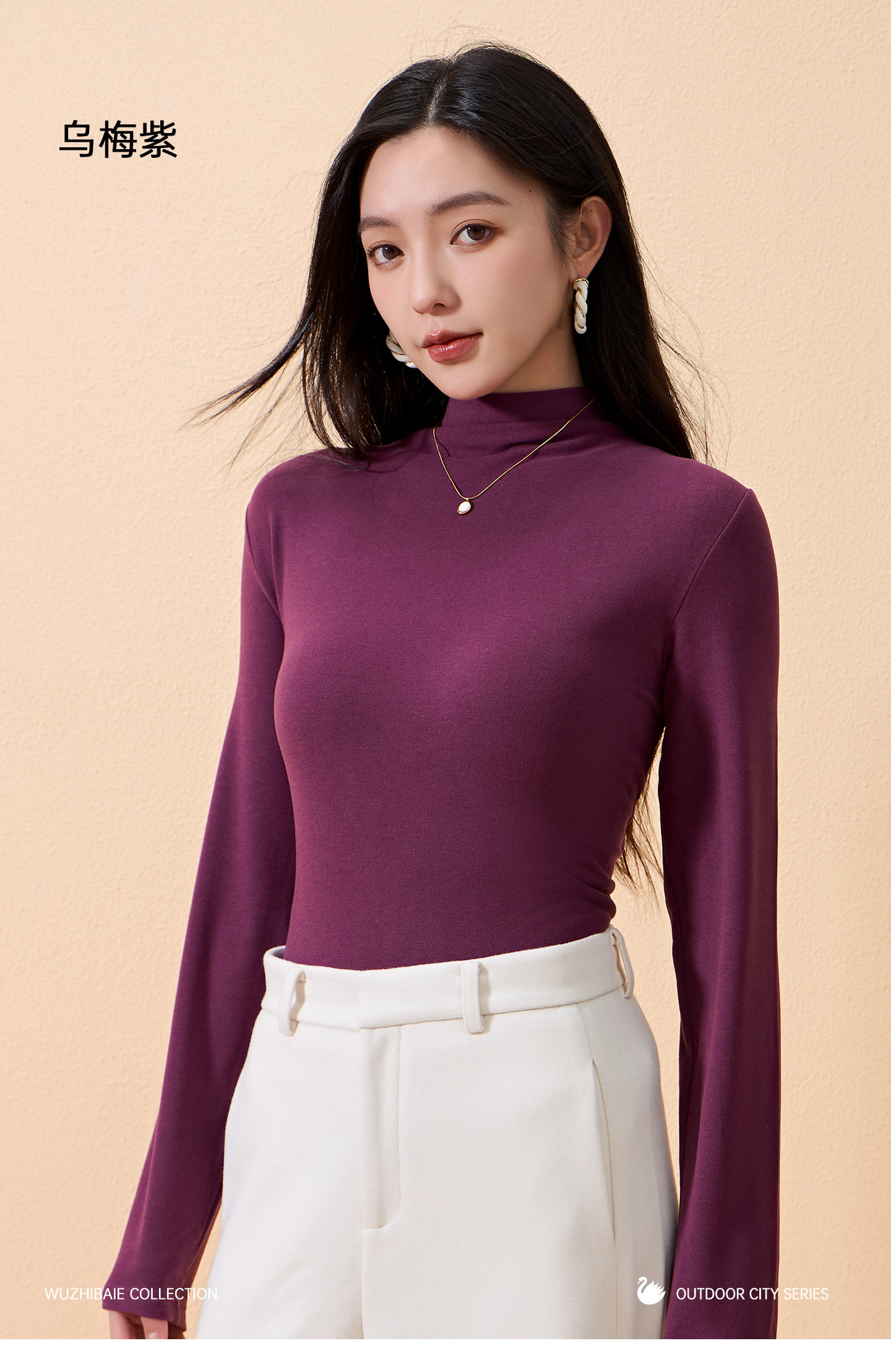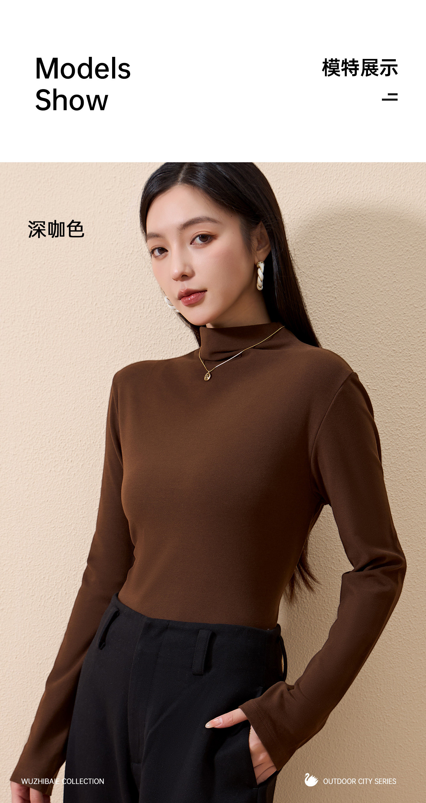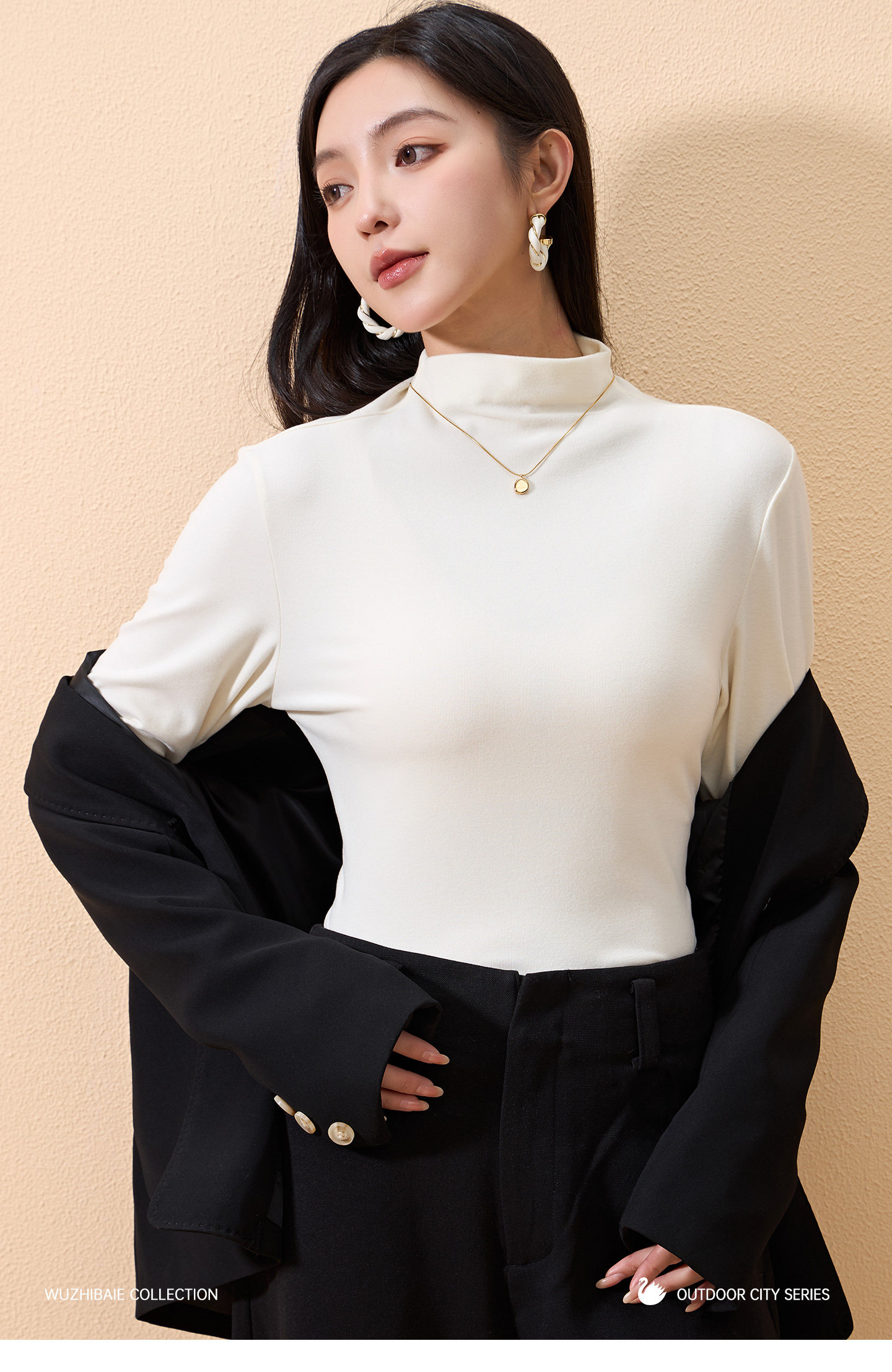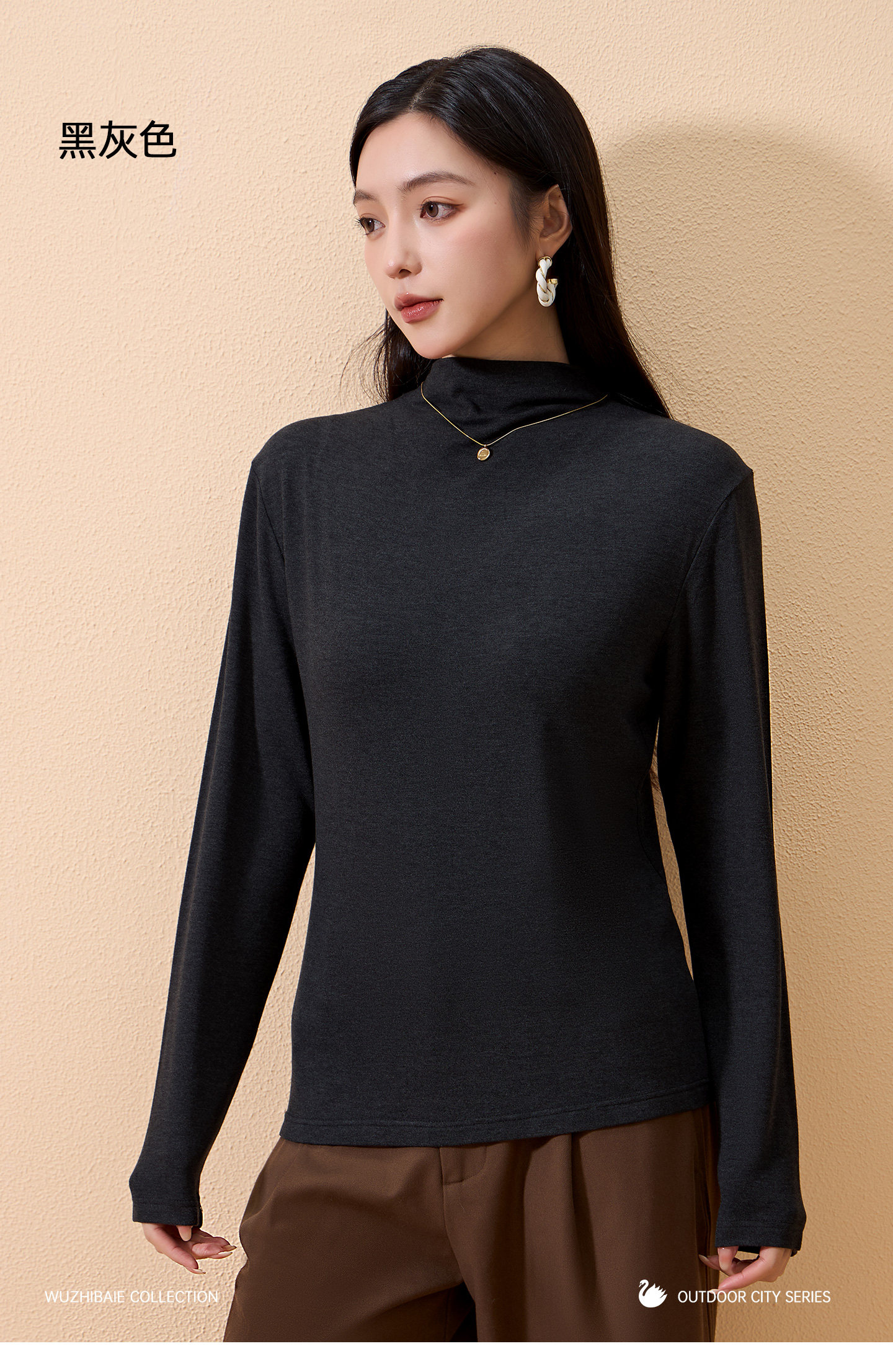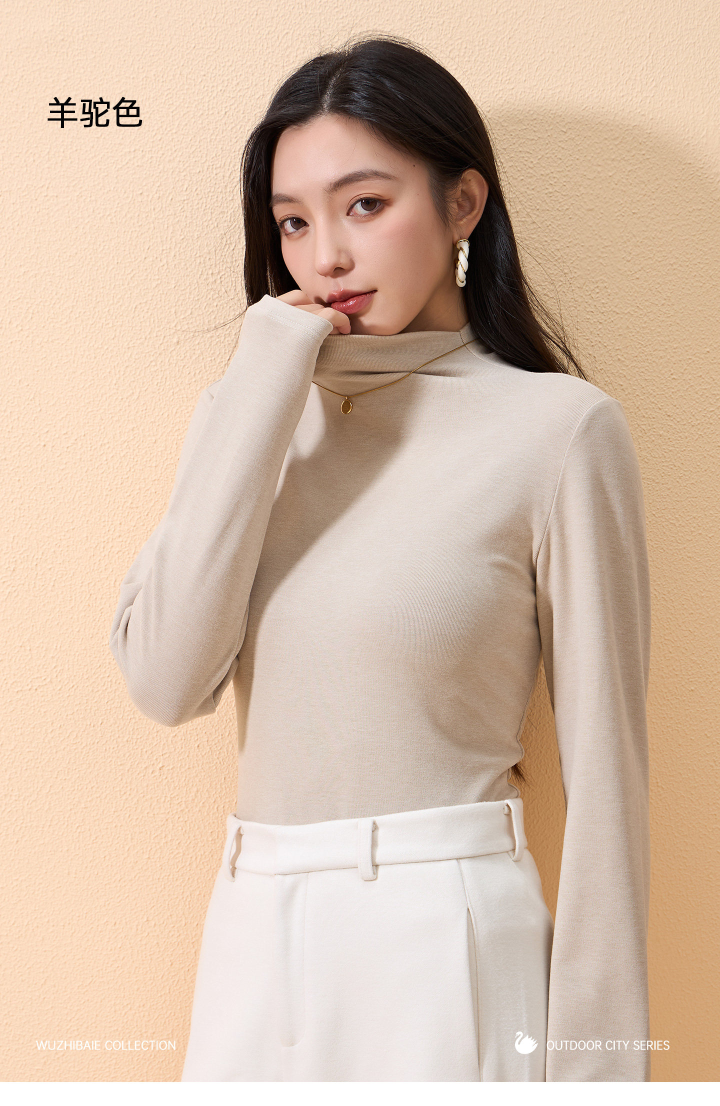 五只白鹅—2025秋冬新款天丝羊毛半高领打底衫女5501