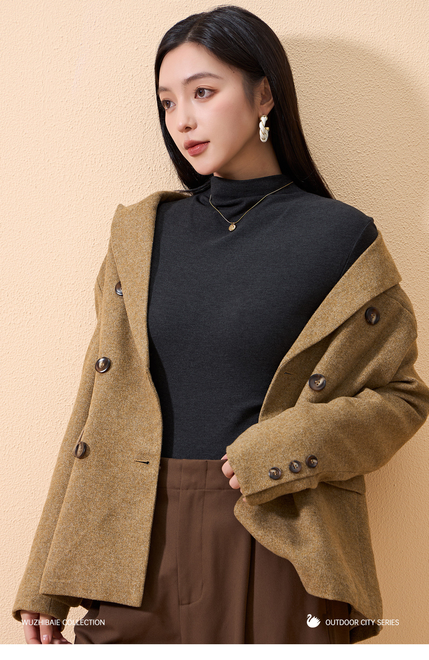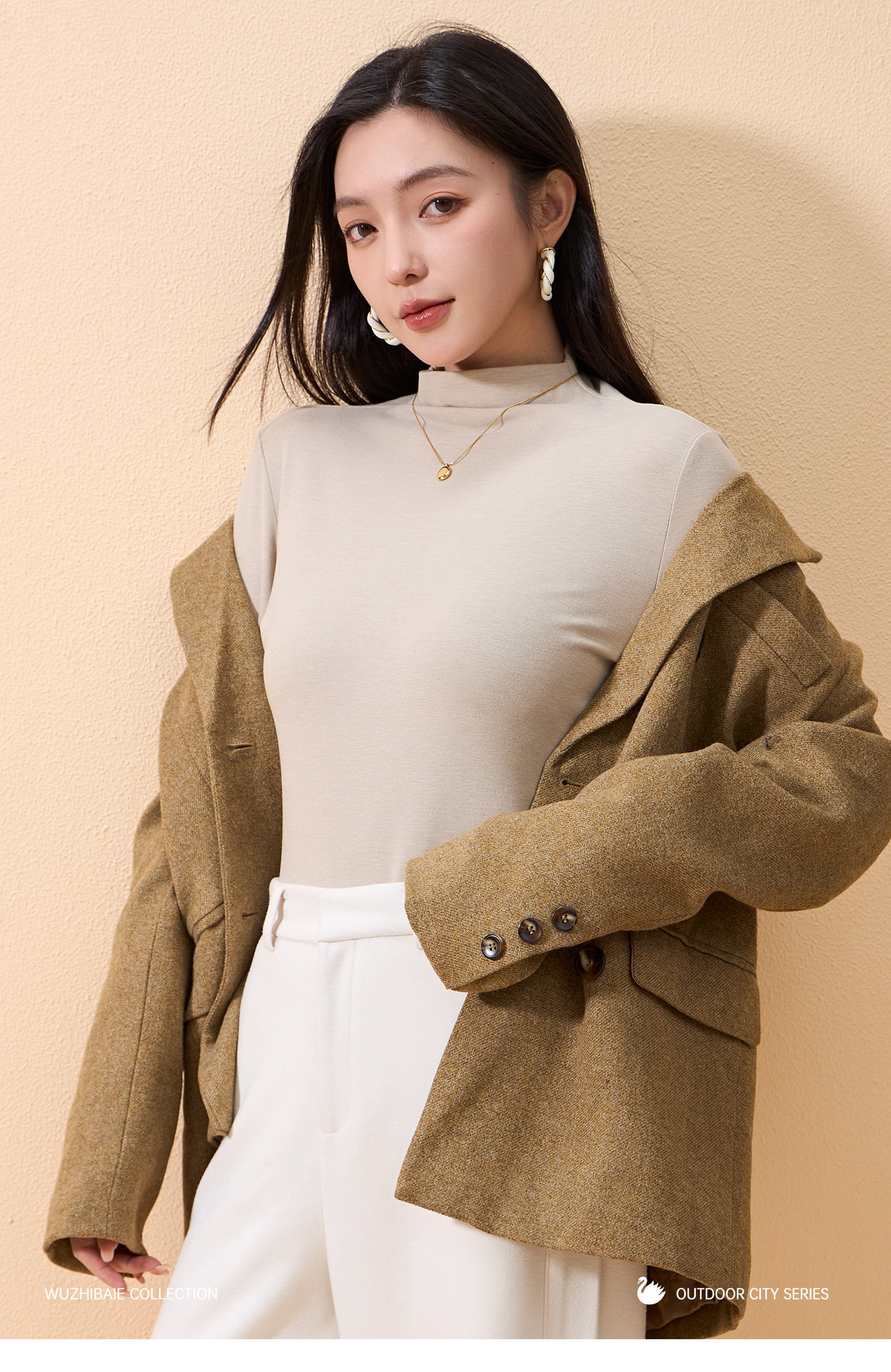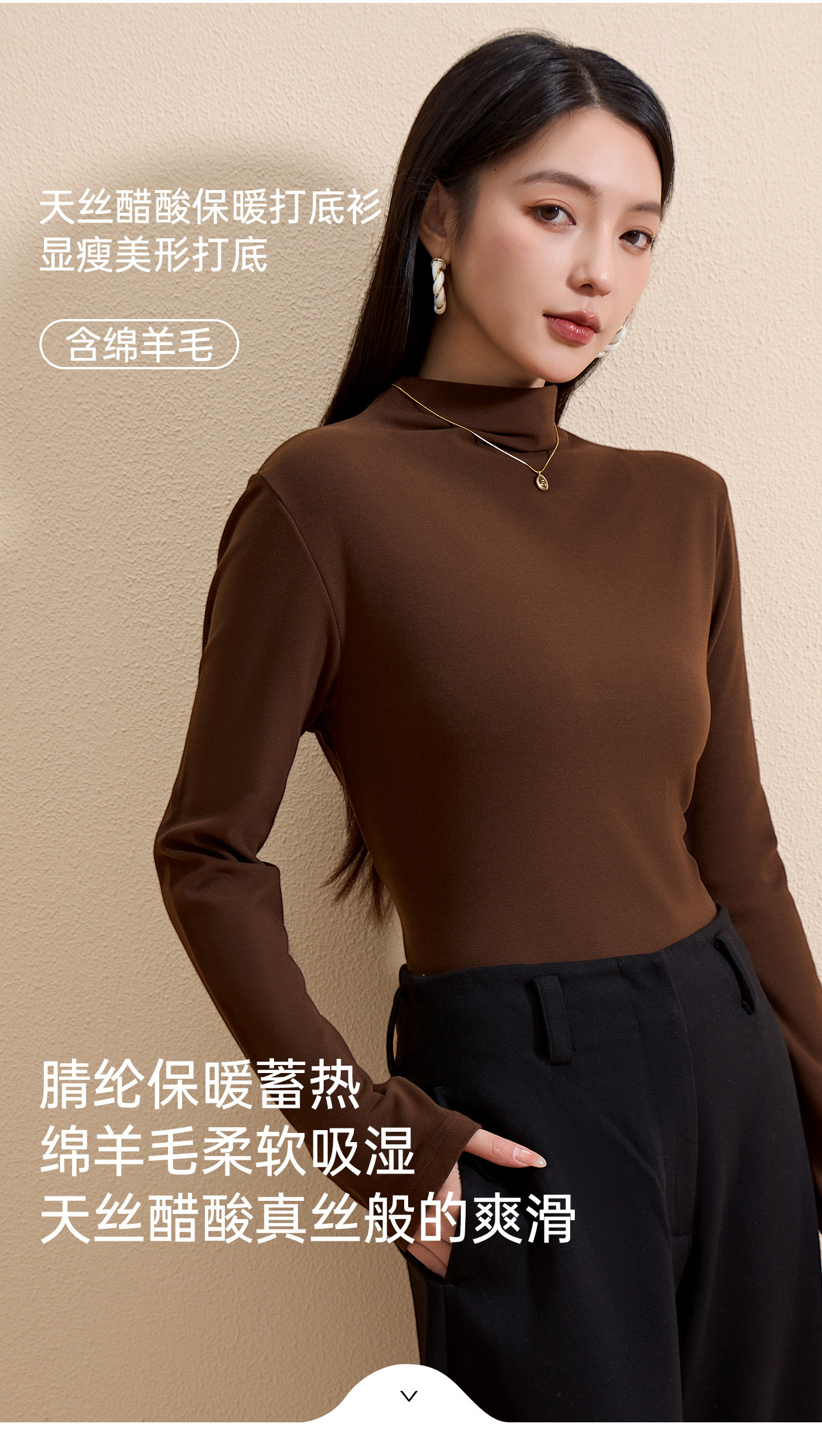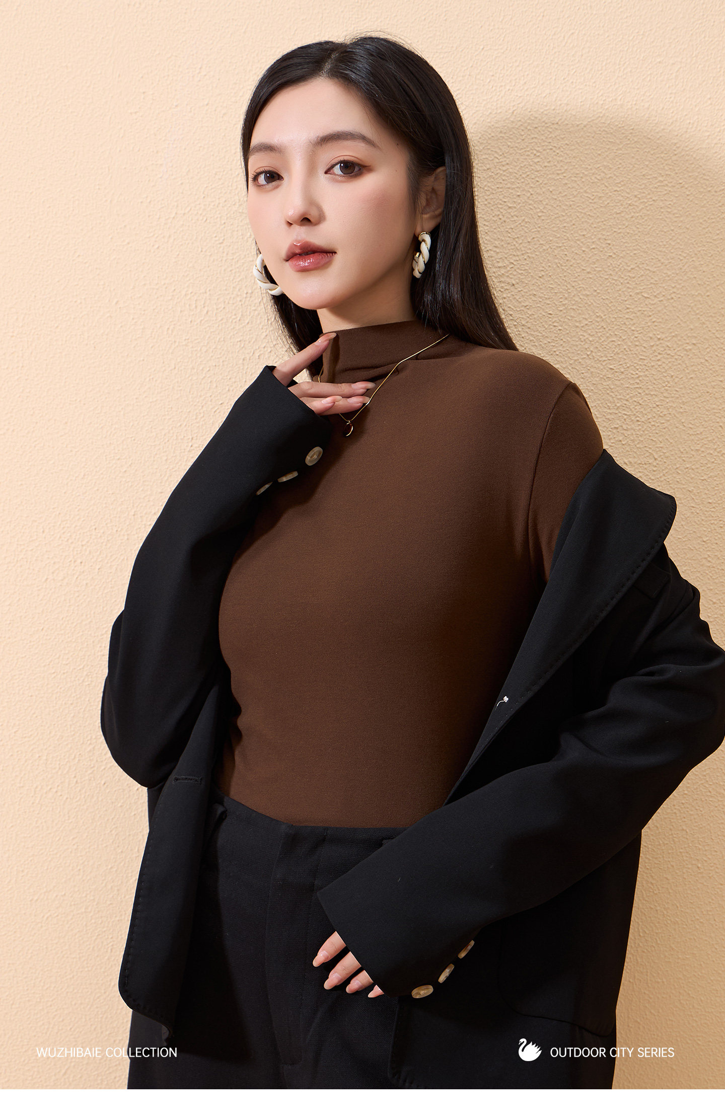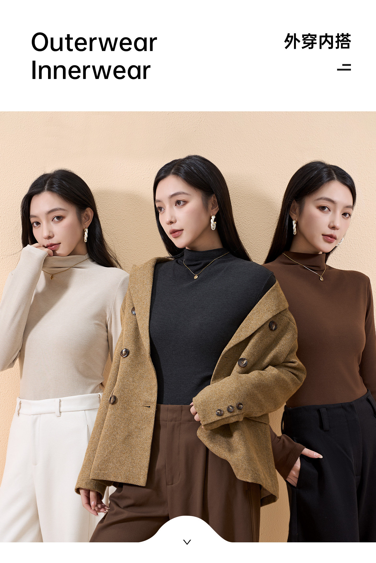 五只白鹅—2025秋冬新款天丝羊毛半高领打底衫女5501