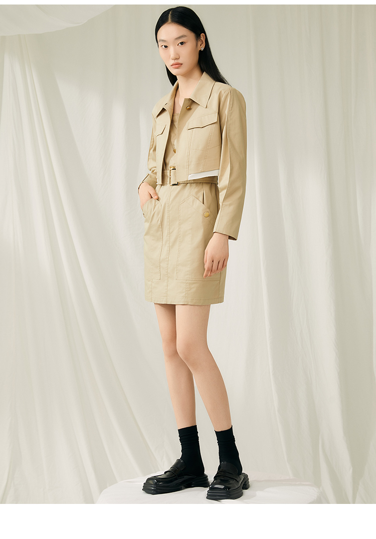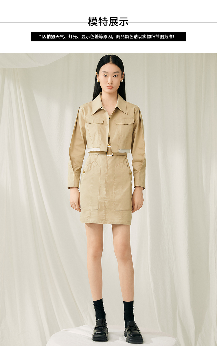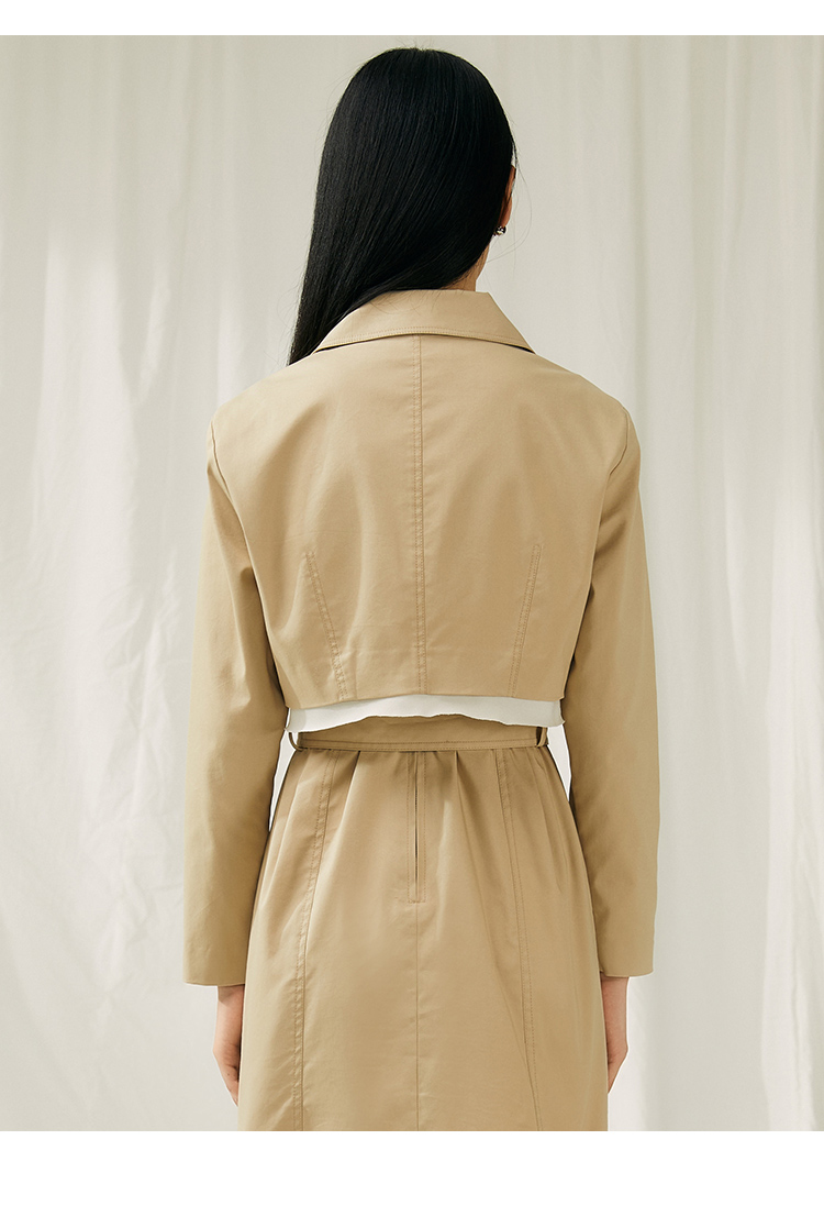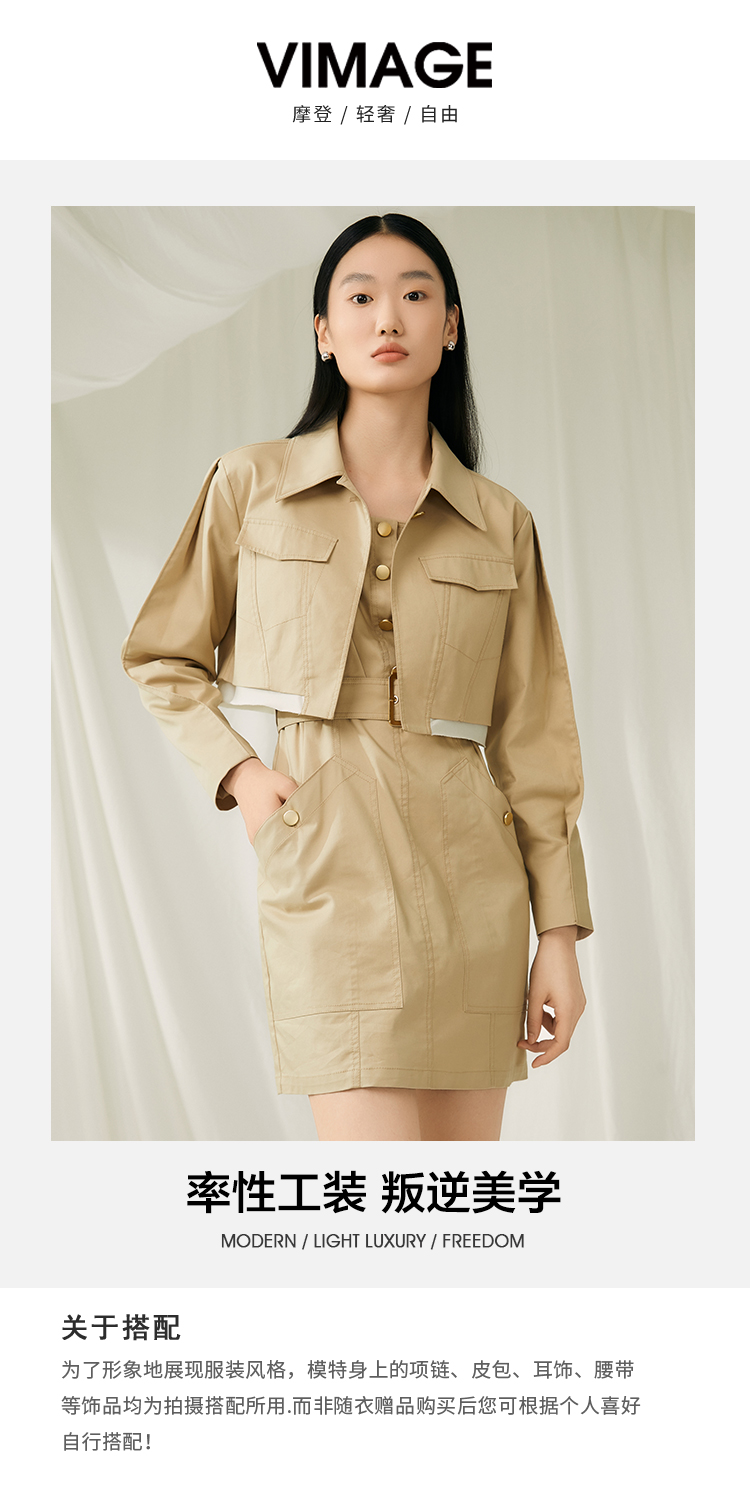 VIMAGE纬漫纪秋款气质翻领双排扣风衣外套女短款时尚经典VA2104109