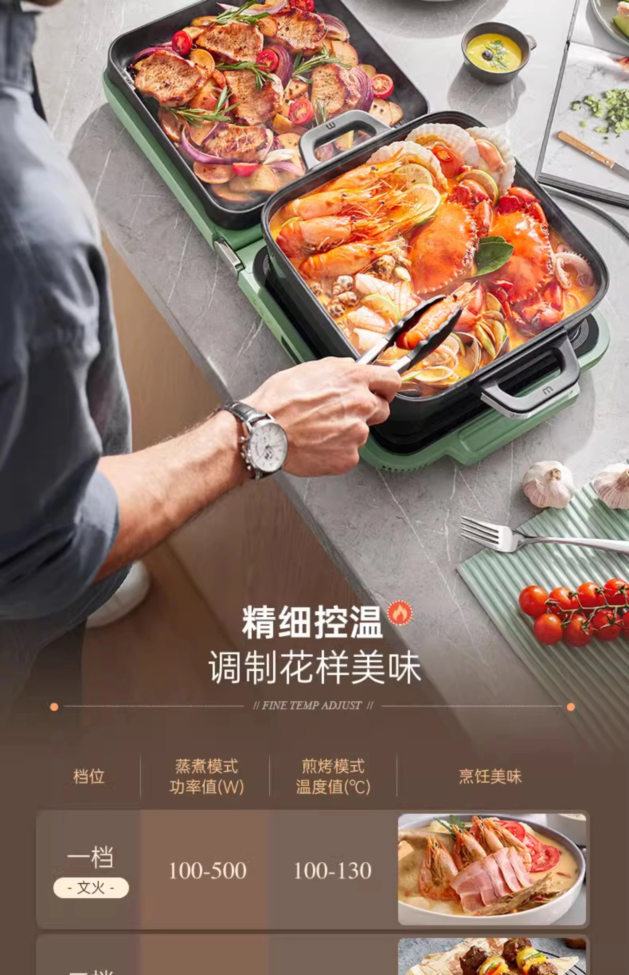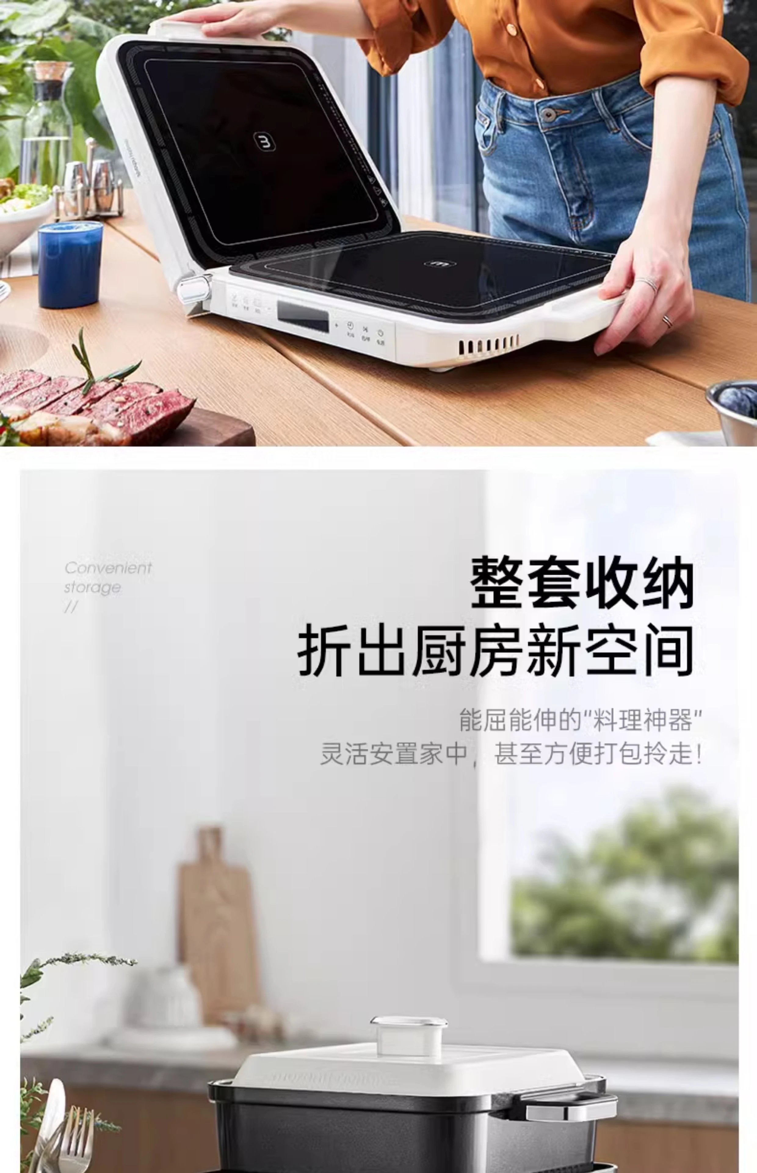 摩飞第三代多功能蒸煮煎烤折叠锅180灵动折叠折出厨房新空间双测控温烹饪机烤肉涮一体电火锅电煮锅