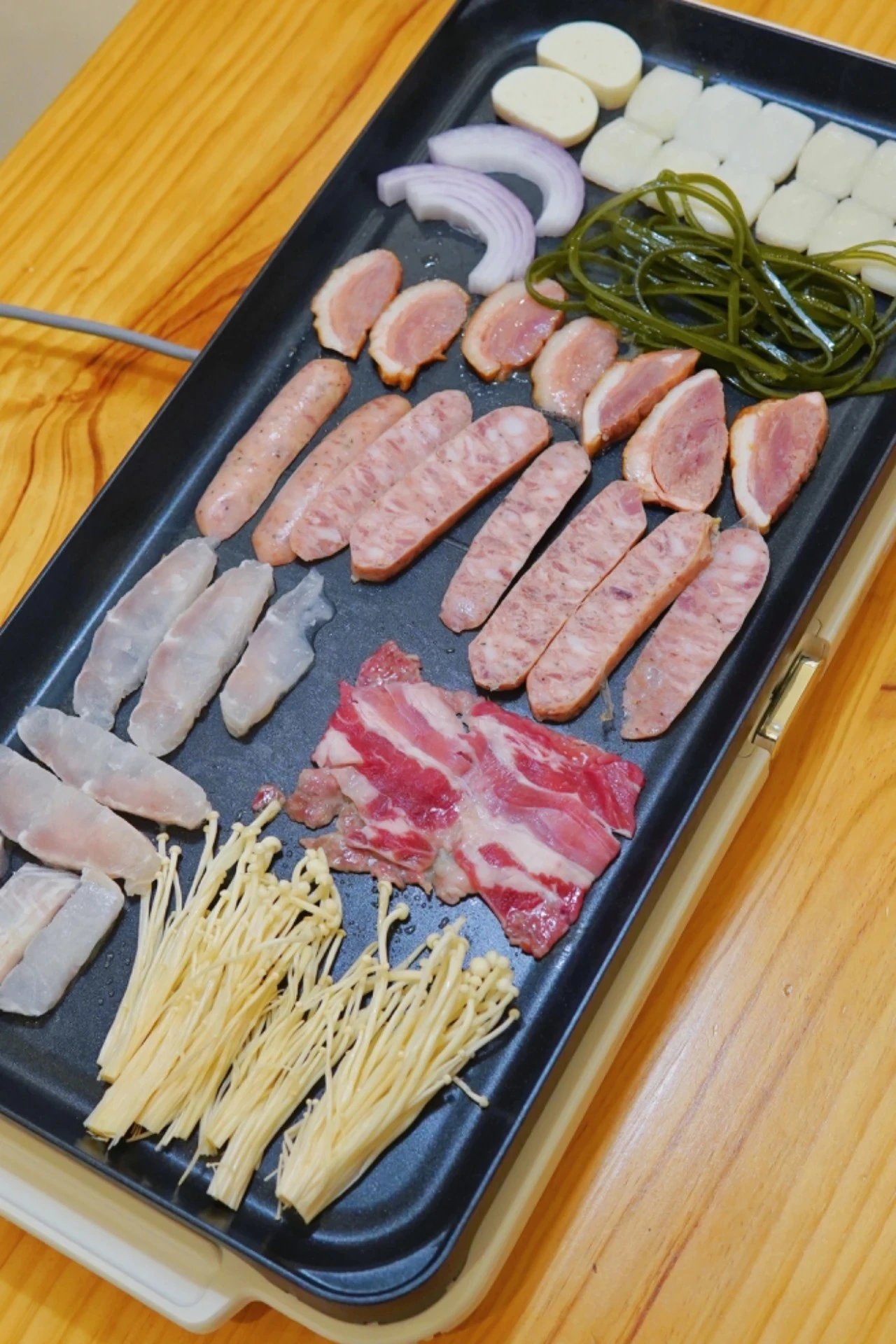 周末孩子爸爸回来,一家四口换上嗨吃盘,超大烤盘适合人多的时候。嗨吃盘是选配,一家四口用标配的烤盘也够了,6-8人嗨吃盘给力。