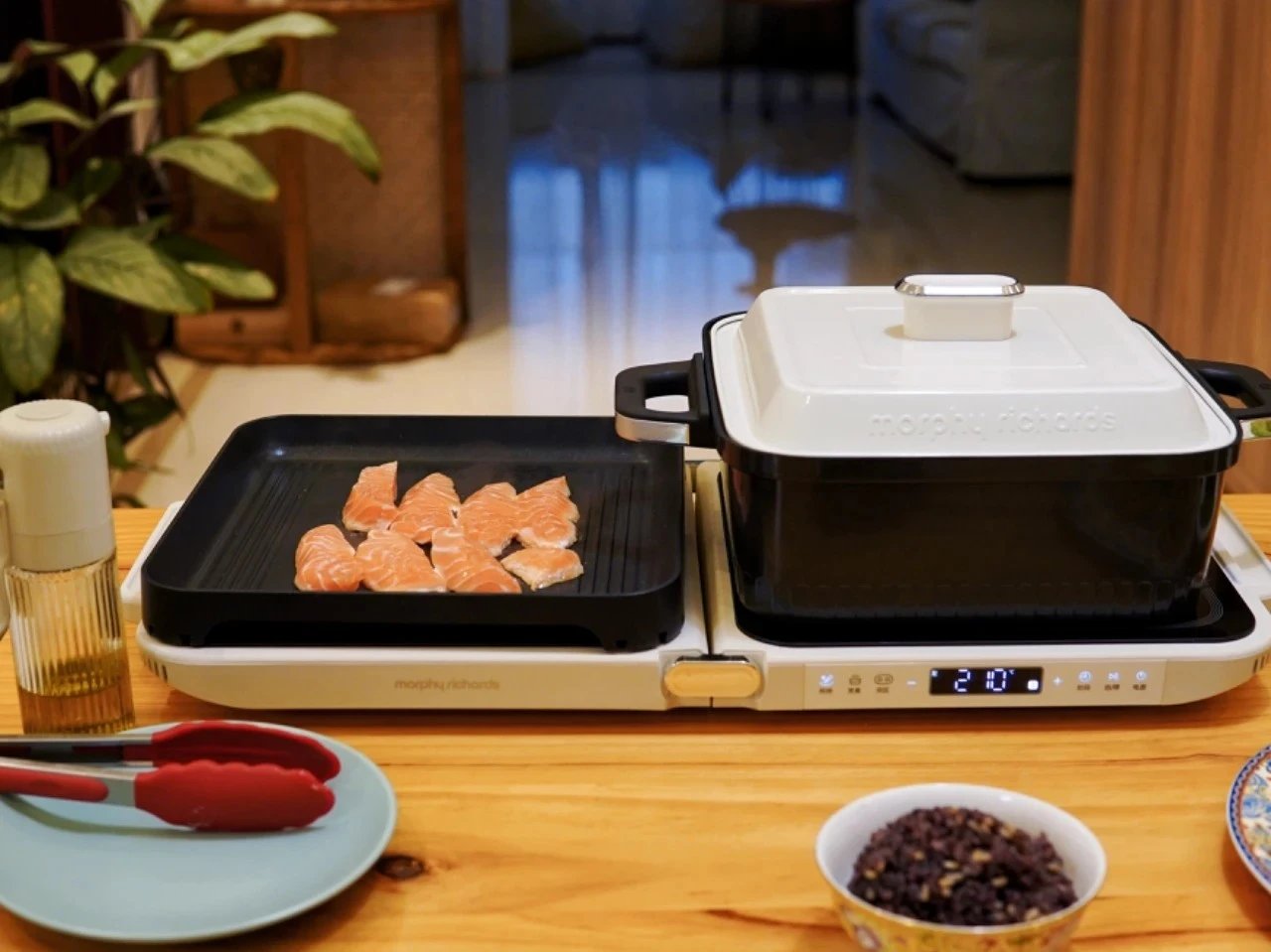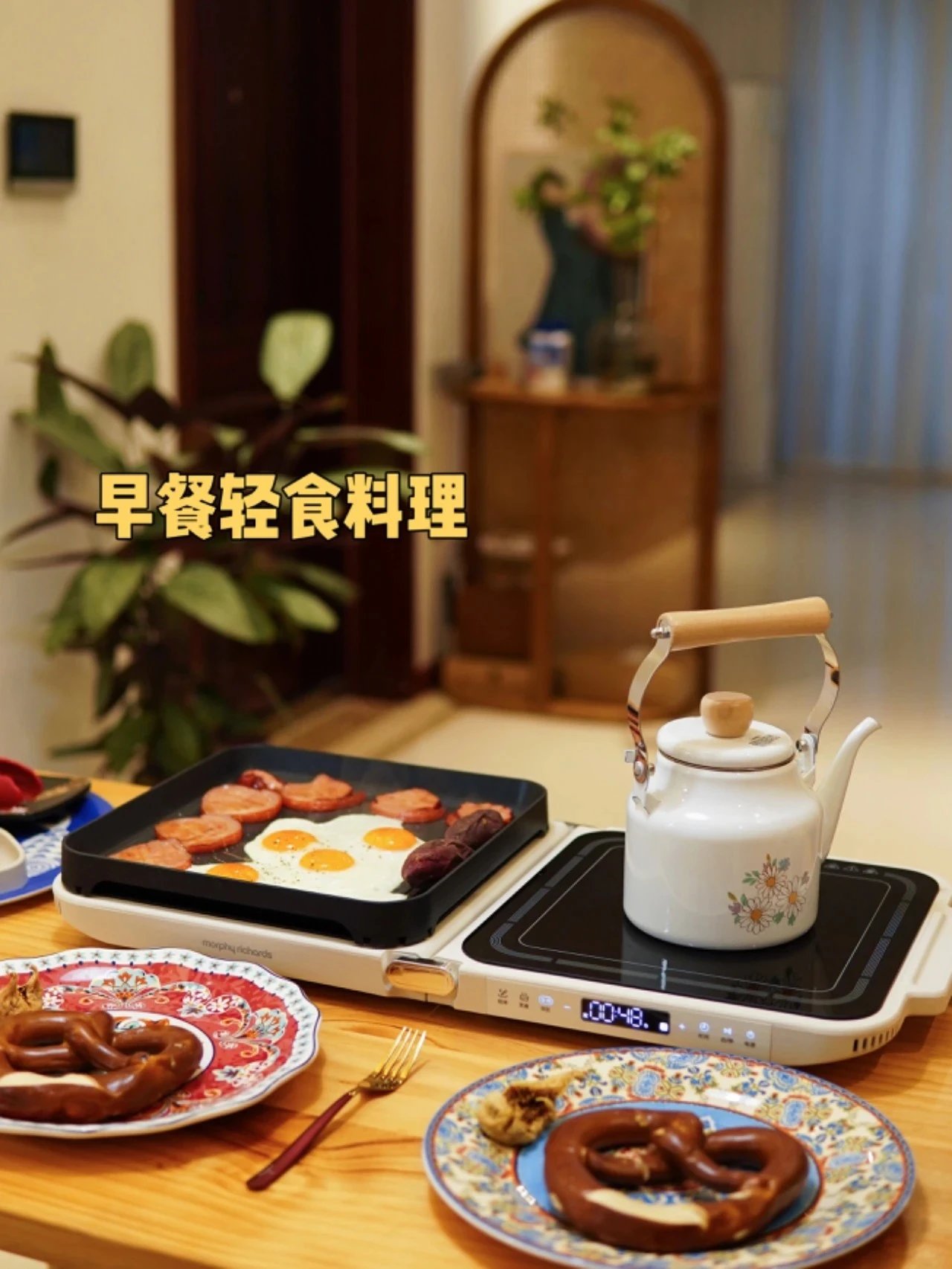 早餐晚餐它都擅长,煎煮蒸涮。都能满足。摆在餐桌上。就能做饭?夏天也不用忍受没有空调的厨房。