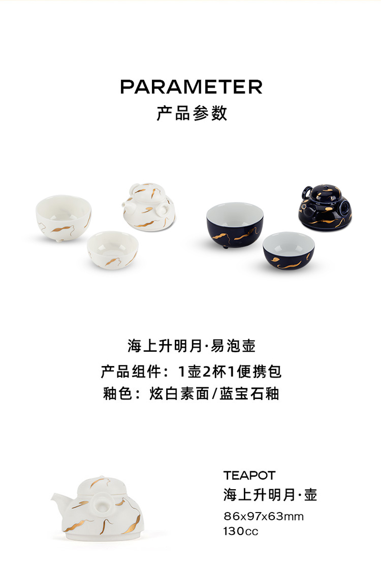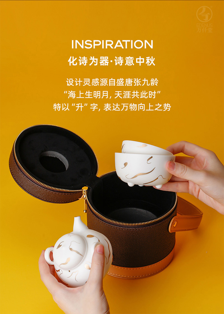 万仟堂 | 海上升明月·易泡壶 旅行茶具套装 便携快客杯 一壶两杯陶瓷功夫茶具 礼盒套装 海上升明月 不建议刻字 炫白素面