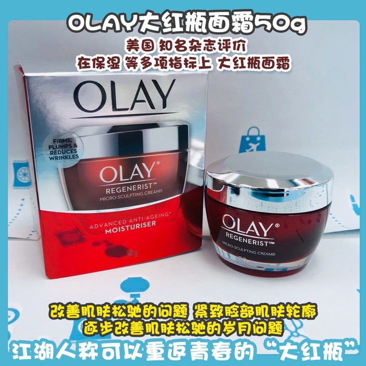 OLAY大红瓶面霜50g👍美国🇺🇸知名杂志评价:“ 在保湿💦等多项指标上,大红瓶面霜❤的表现足以媲美价值上千元的奢华面霜!”。配方含珍贵成份,深入肌肤表层,有效帮助外观上淡化细纹🌬,改善肌肤松驰的问题,紧致脸部肌肤轮廓⬆,逐步改善肌肤松驰的岁月问题🗓,肌肤宛若新生。🔅江湖人称可以重返青春的“大红瓶”,你真的不心动吗❓