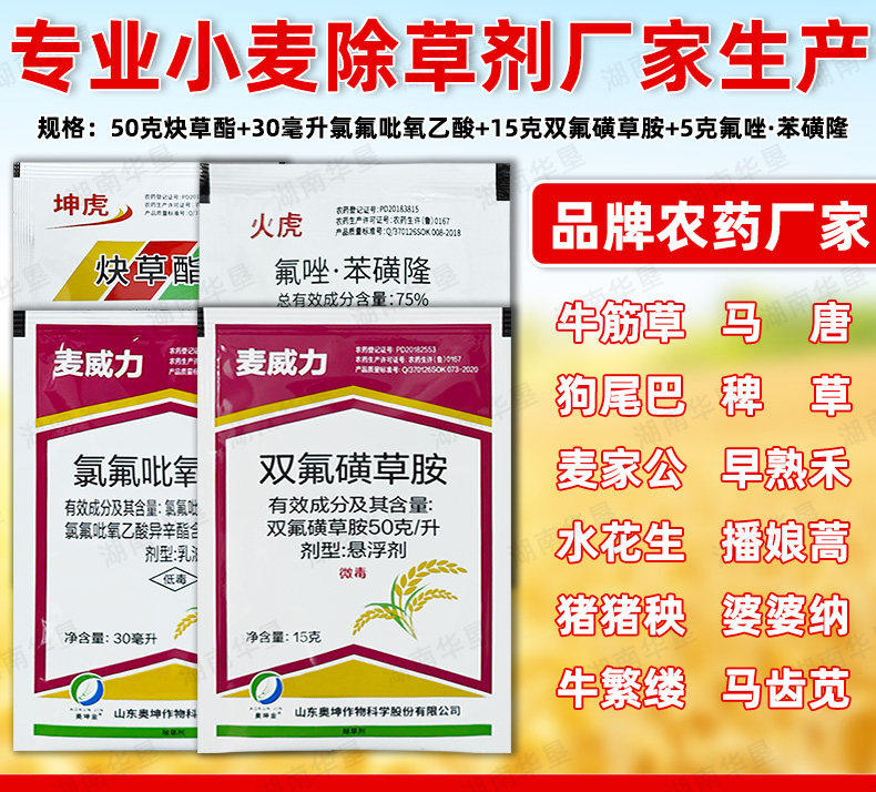 小麦苗后专用除草方案炔草酯除野燕麦看麦娘黑麦草专用除草剂正品