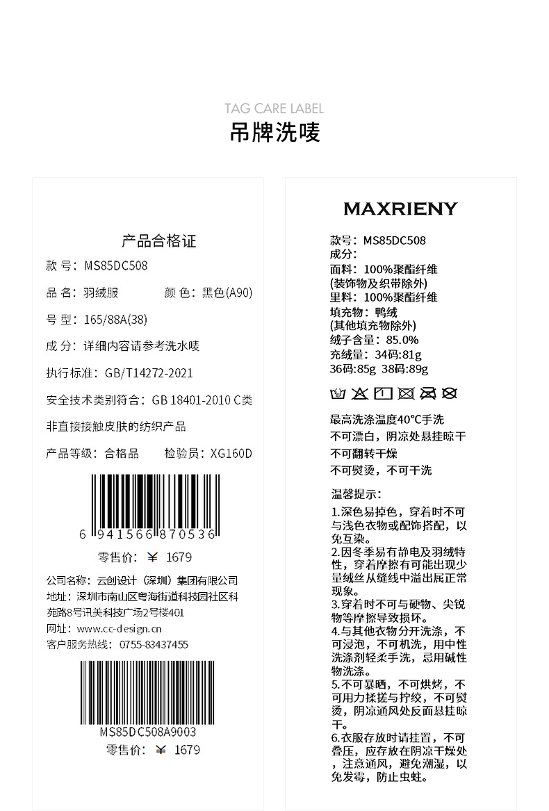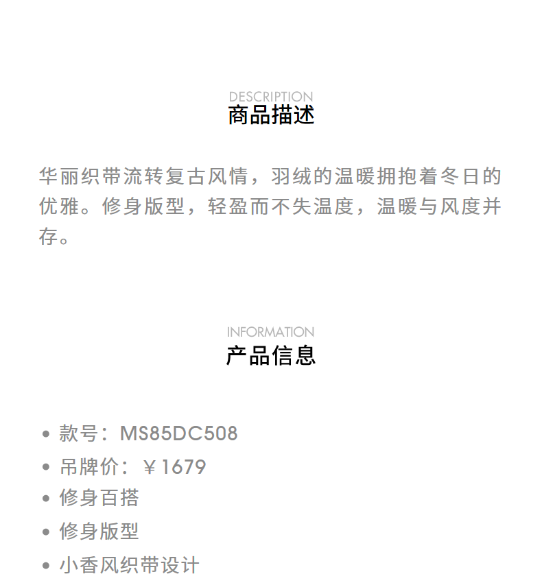 【商场同款】MAXRIENY精致复古感羽绒服女2024秋冬新款织带外套(货号:MS85DC508)