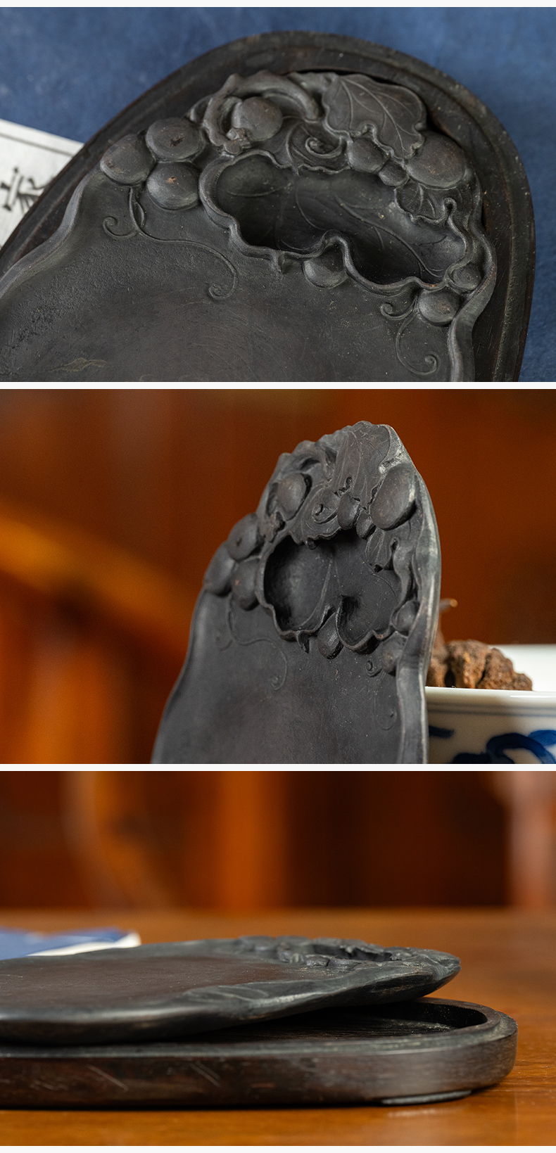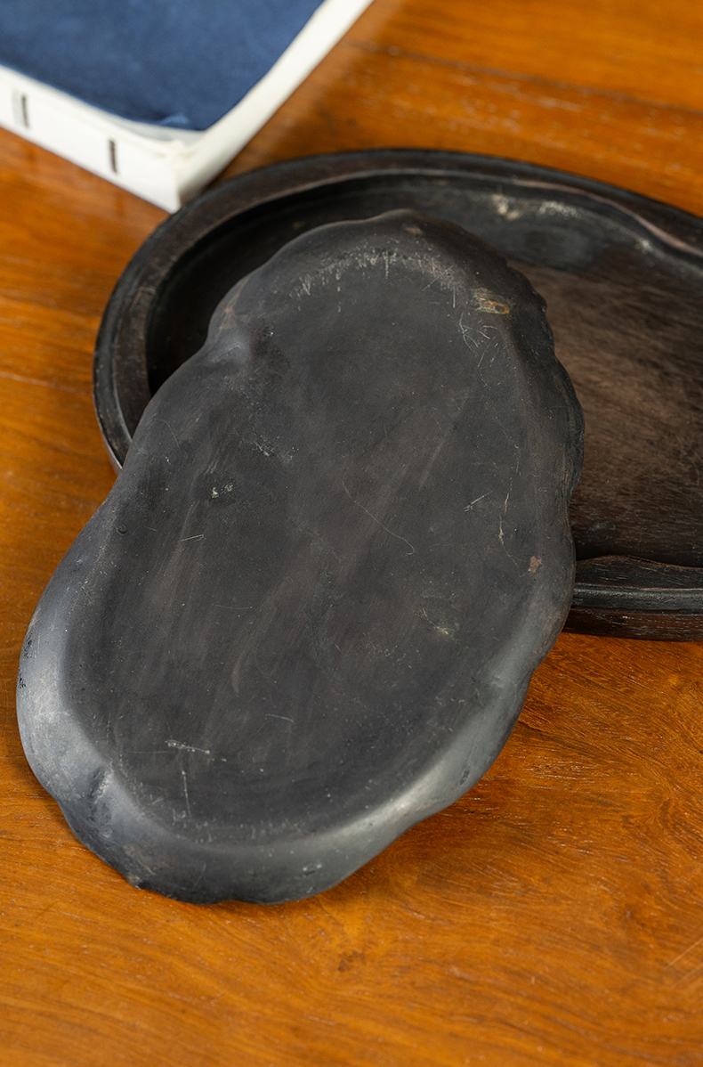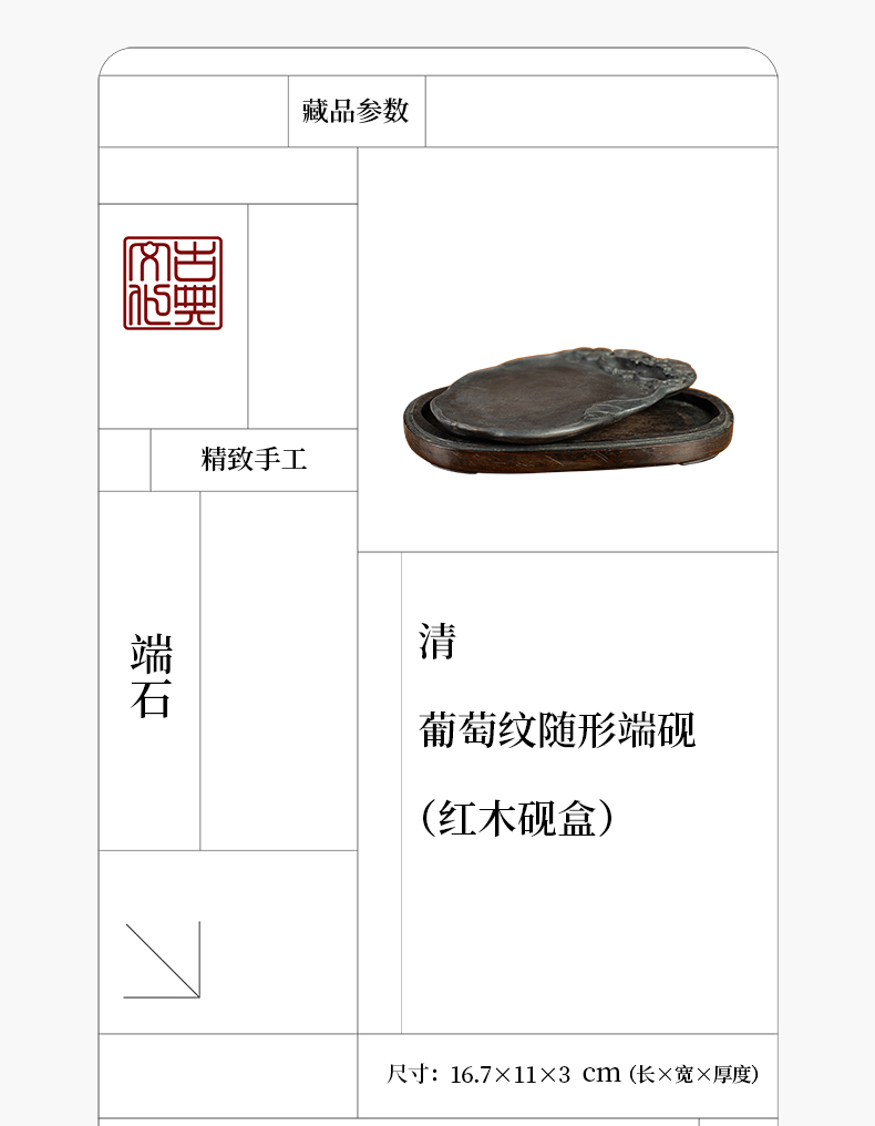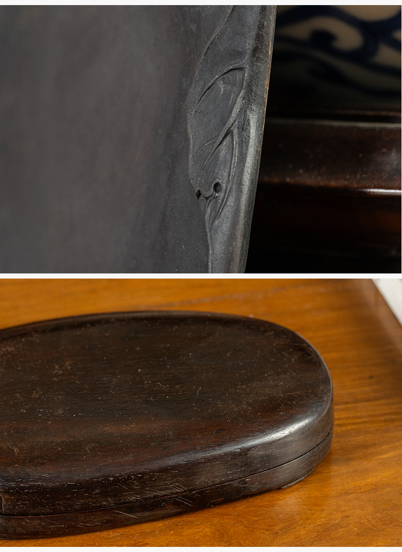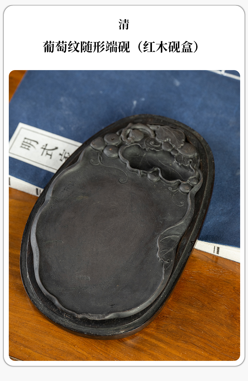 清 葡萄纹随形端砚(红木砚盒)