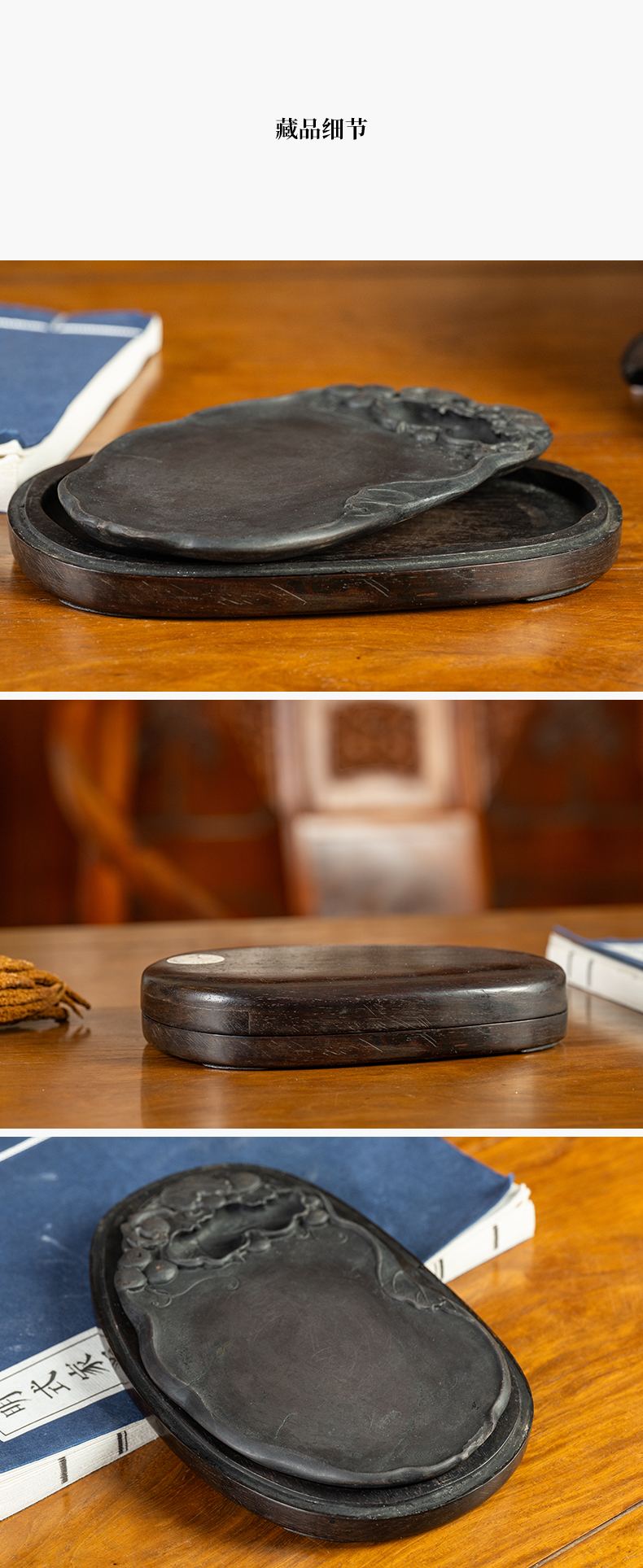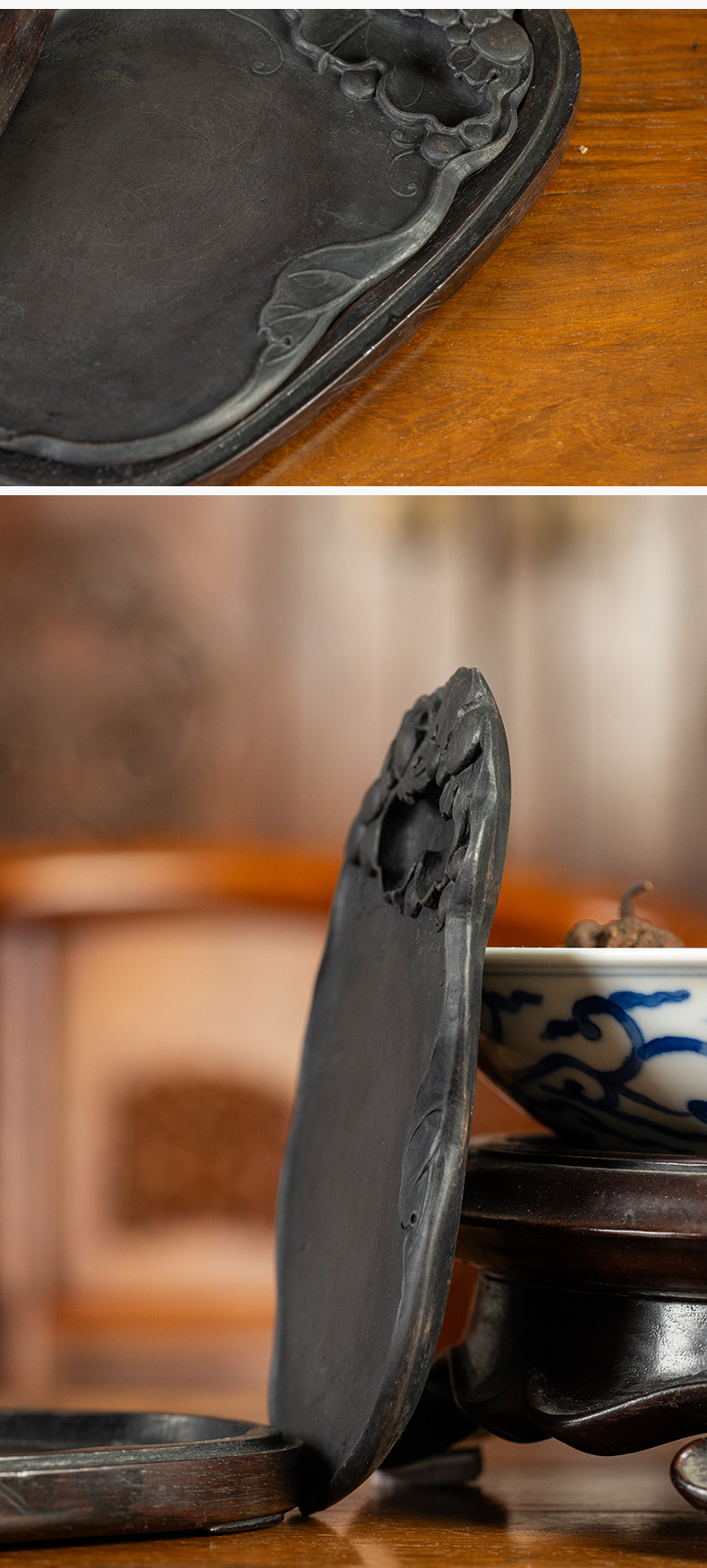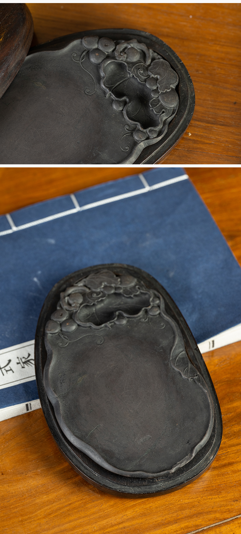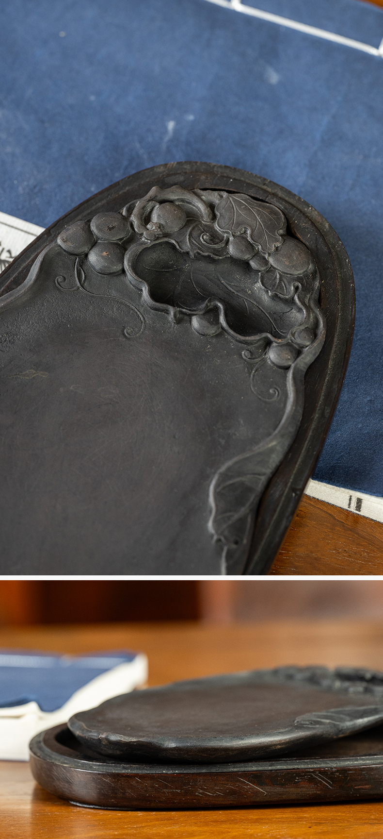 清 葡萄纹随形端砚(红木砚盒)