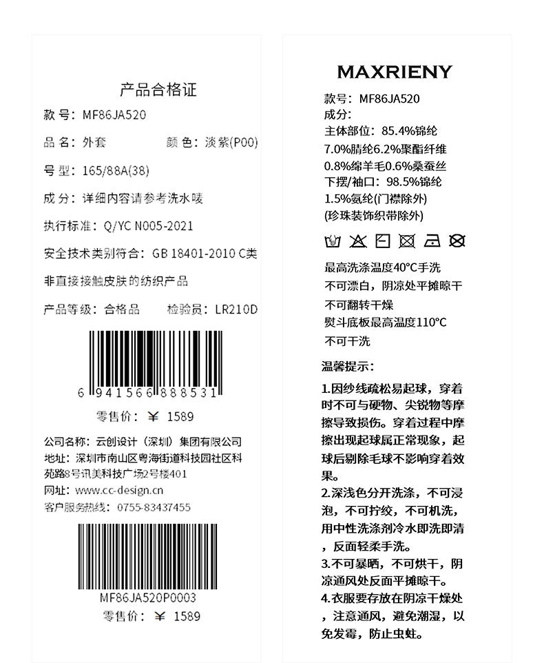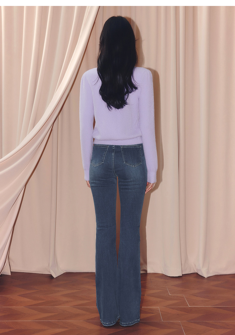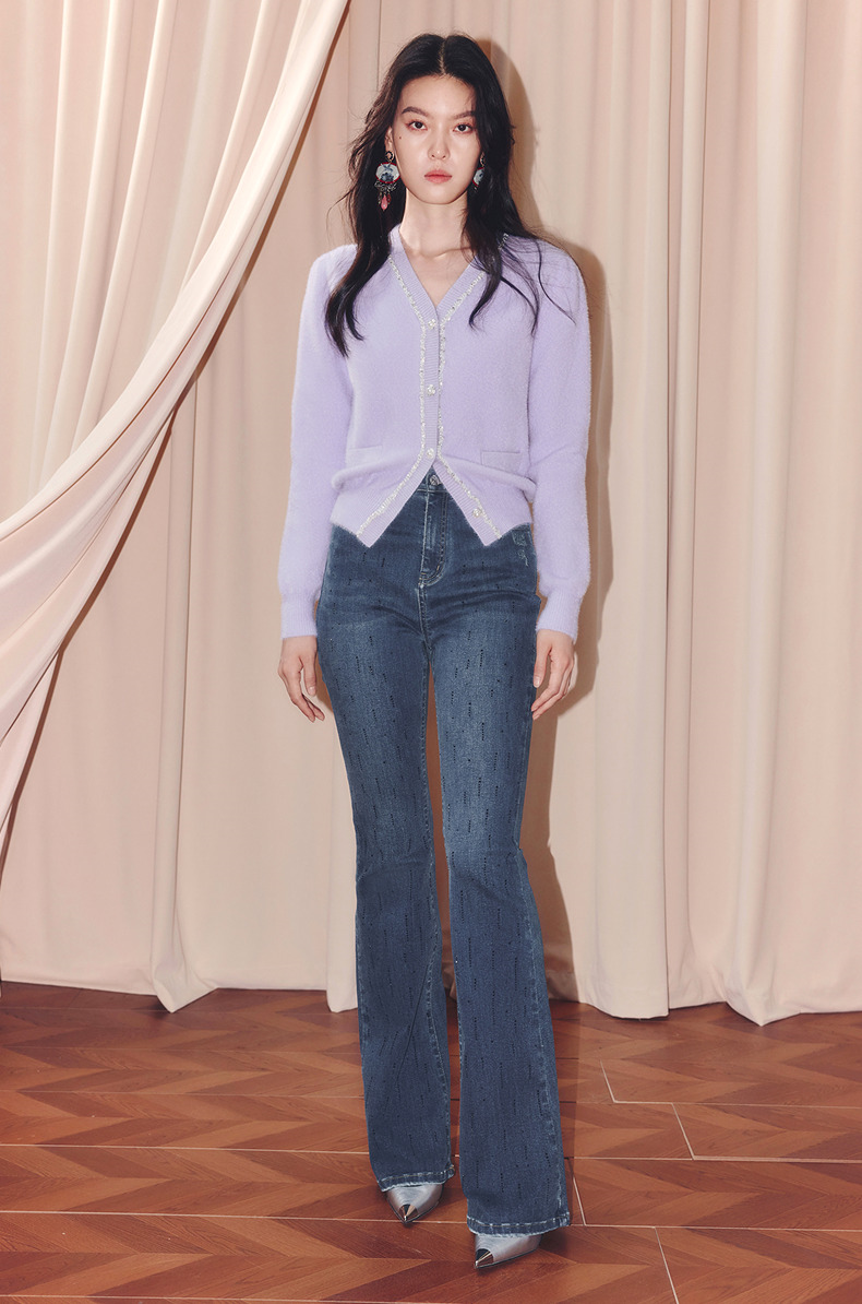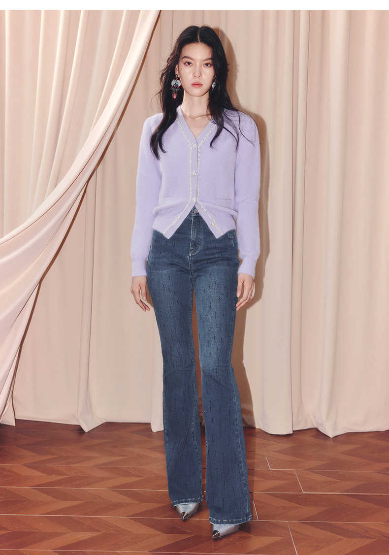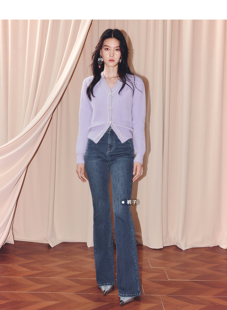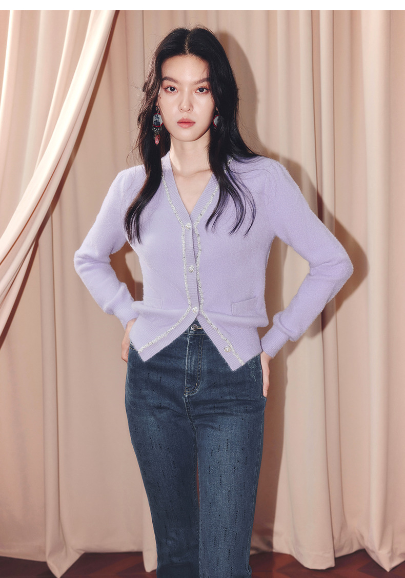 MAXRIENY甜美钉珠针织外套女25冬款修身显瘦v领收腰长袖上衣(货号:MF86JA520)