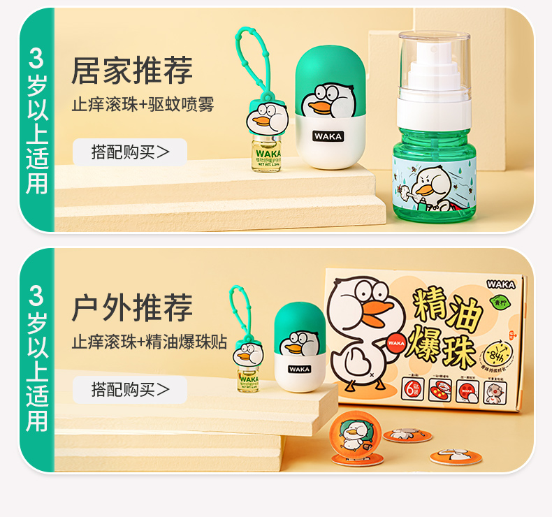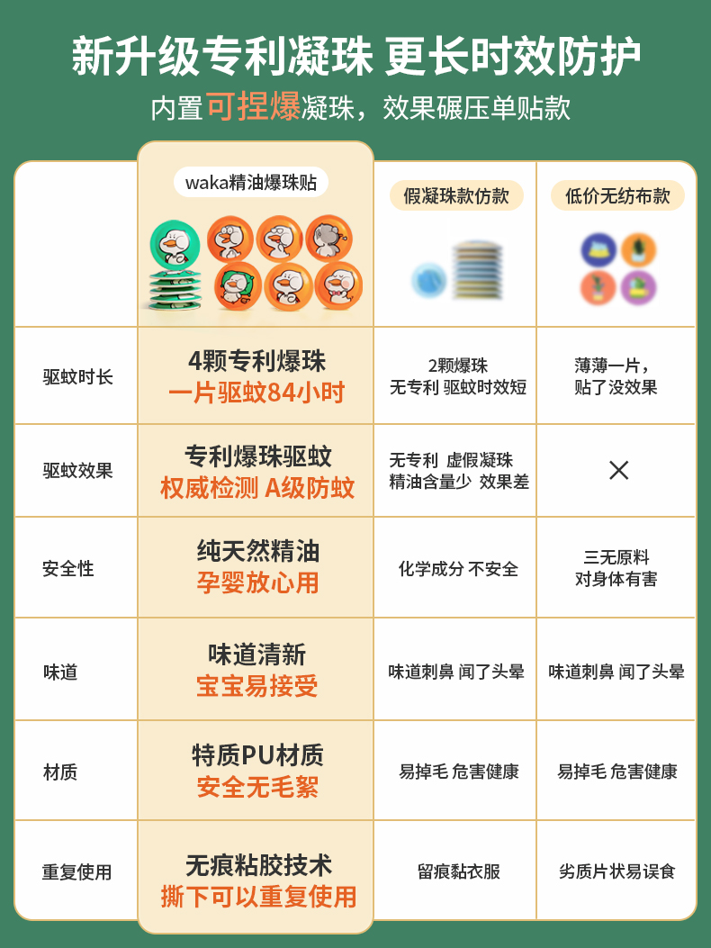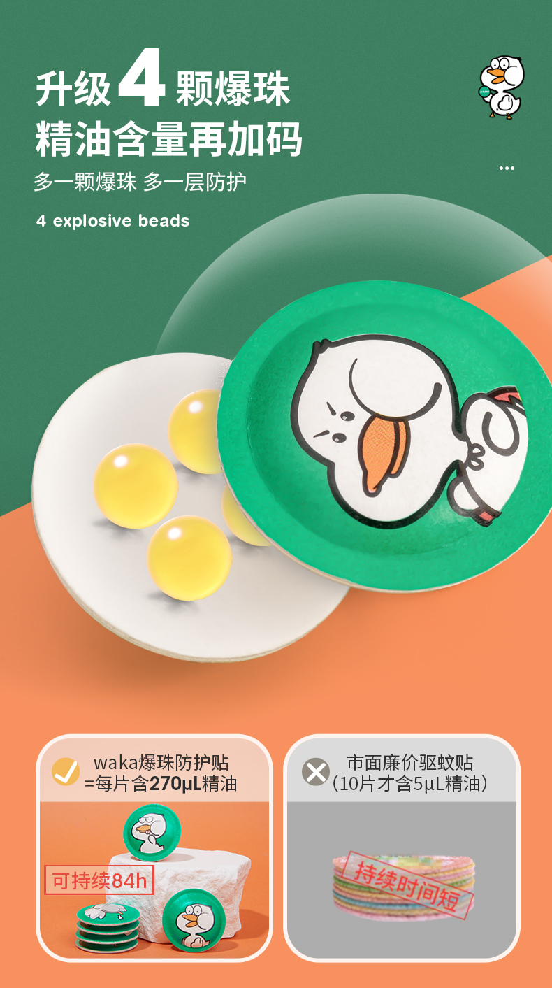 WAKA儿童户外随身驱蚊防蚊精油爆珠贴防蚊虫神器鸭鸭贴