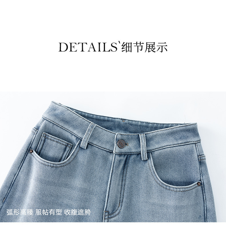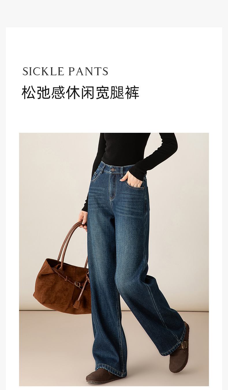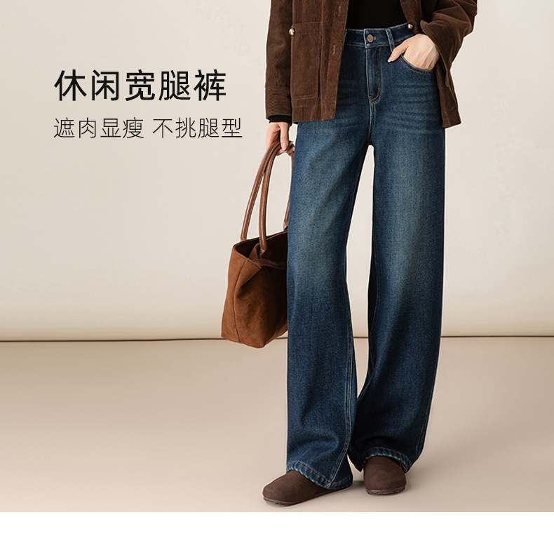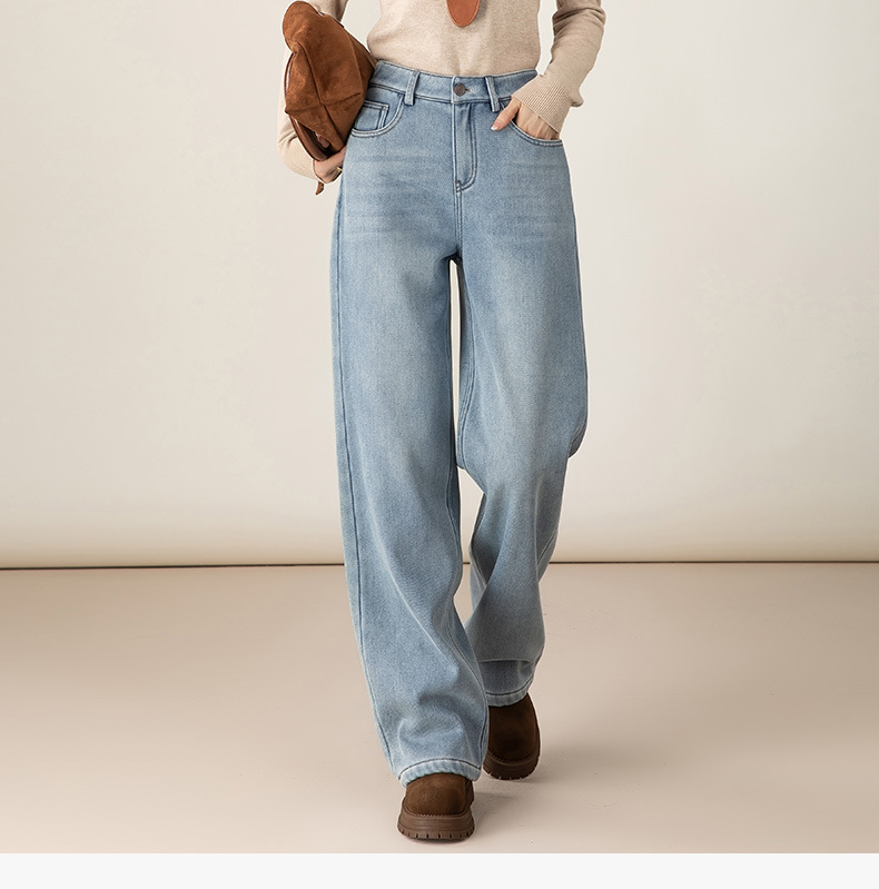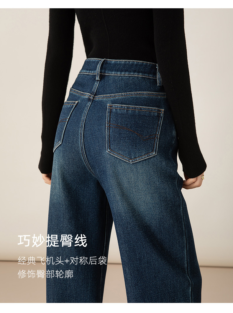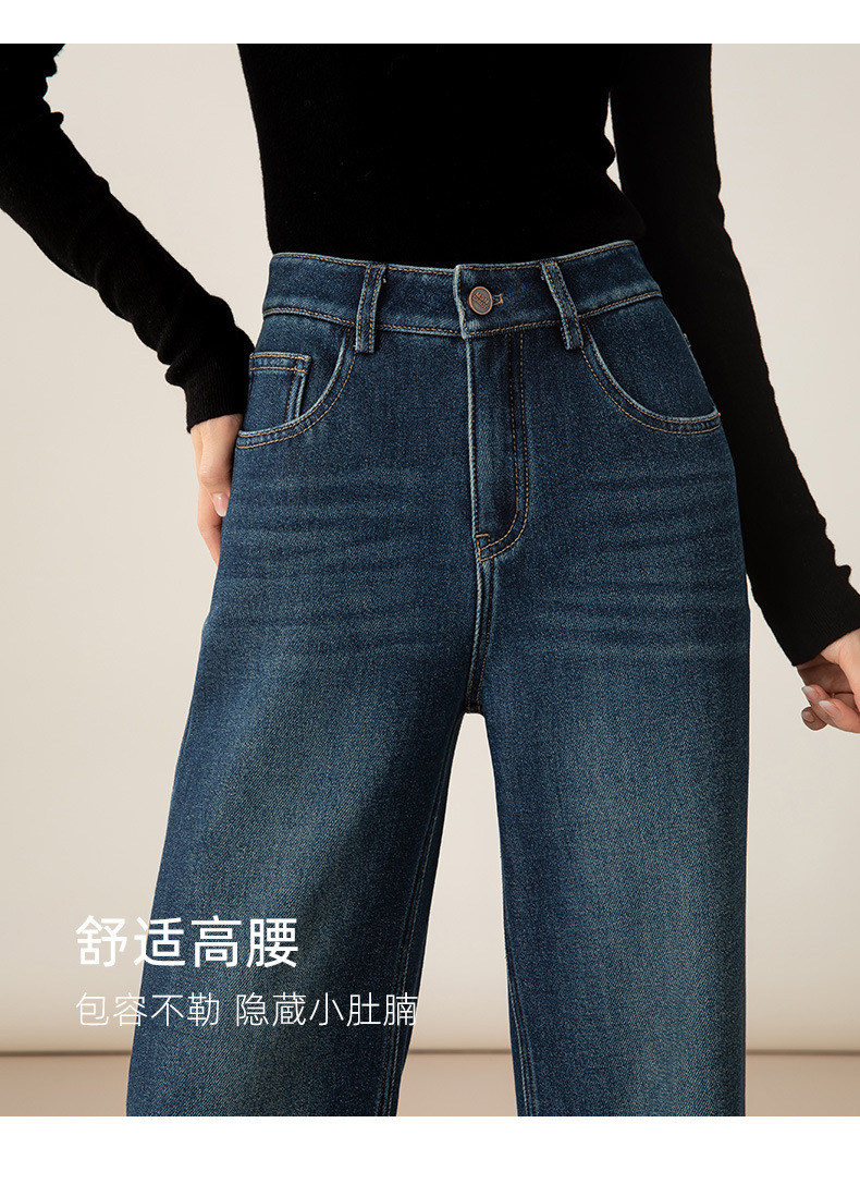 百媚生 加绒加厚直筒牛仔裤女窄版阔腿裤子85606