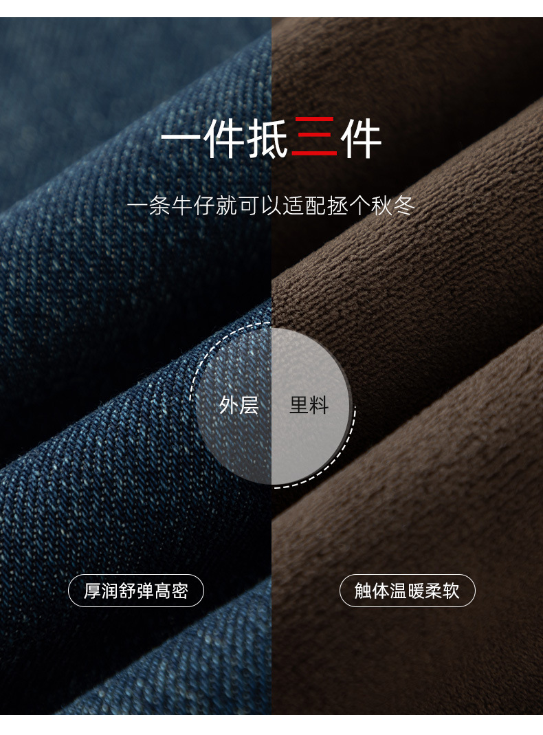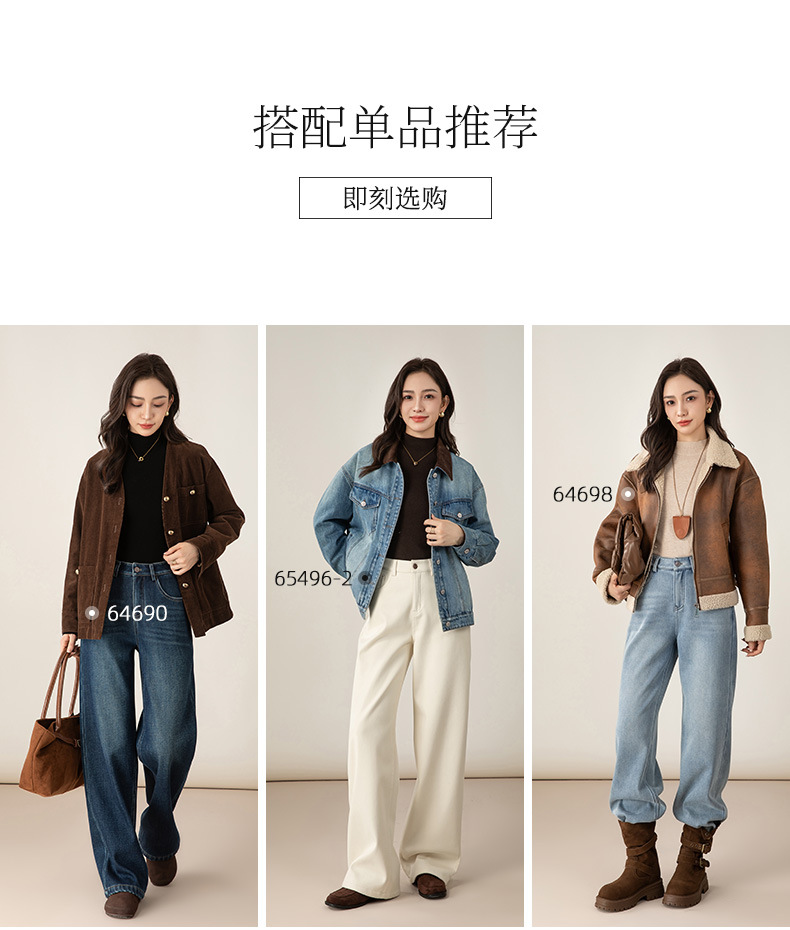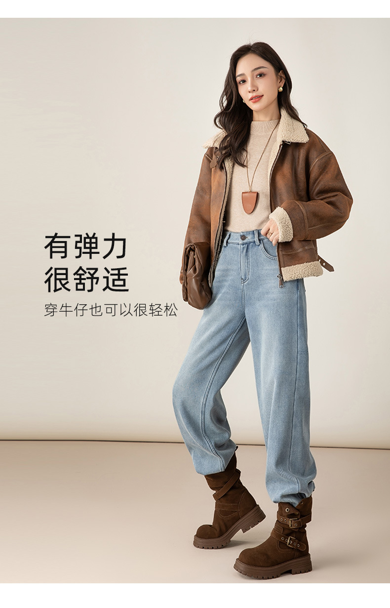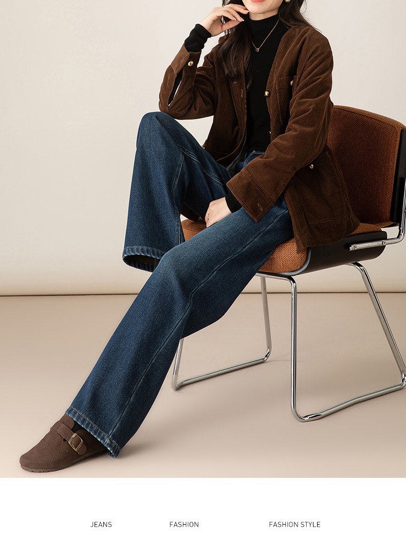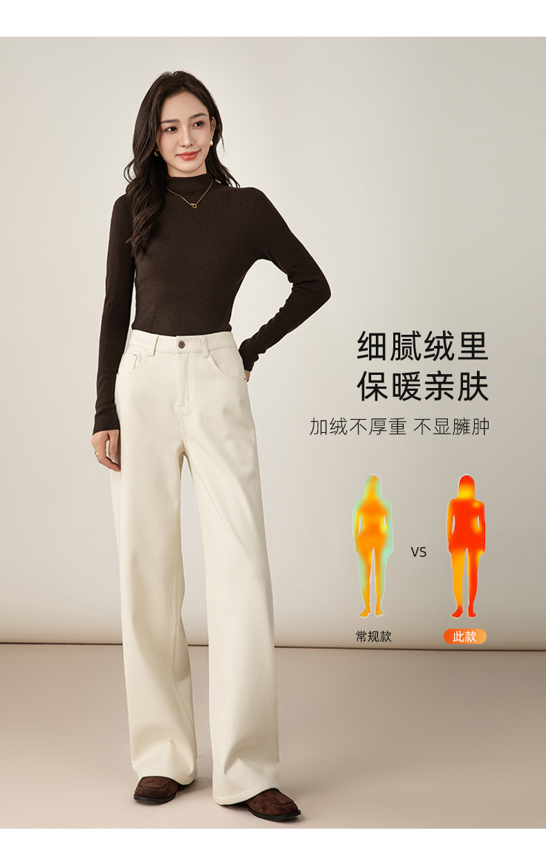 百媚生 加绒加厚直筒牛仔裤女窄版阔腿裤子85606