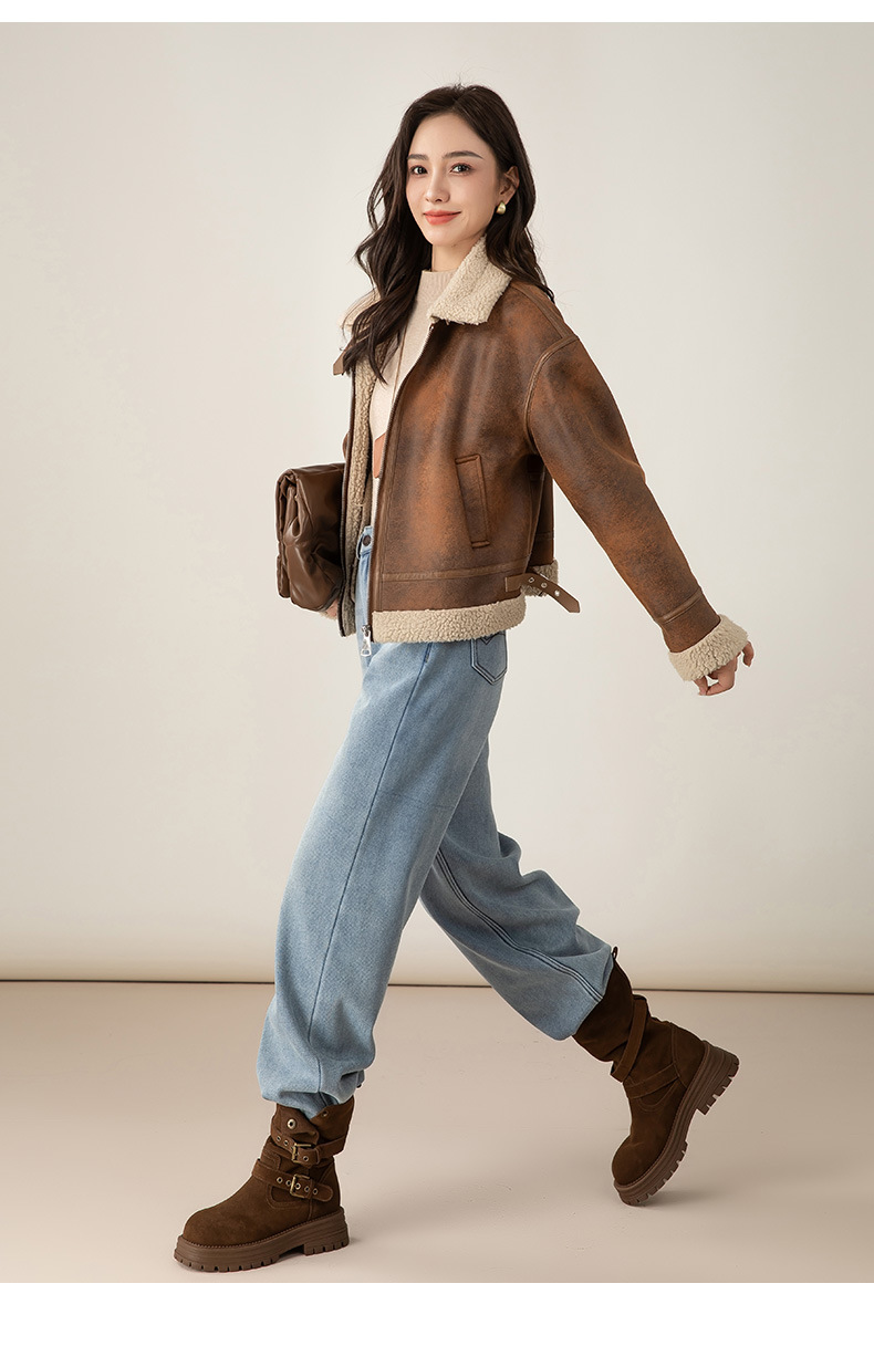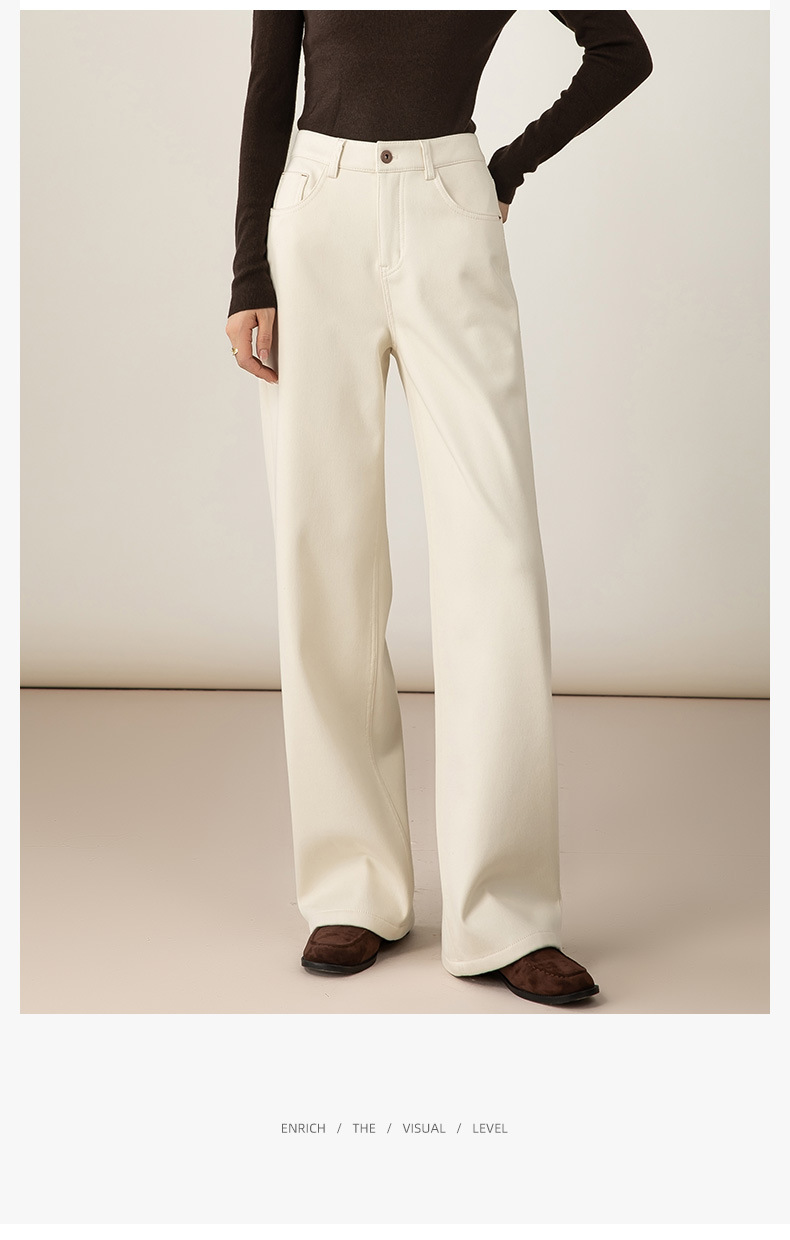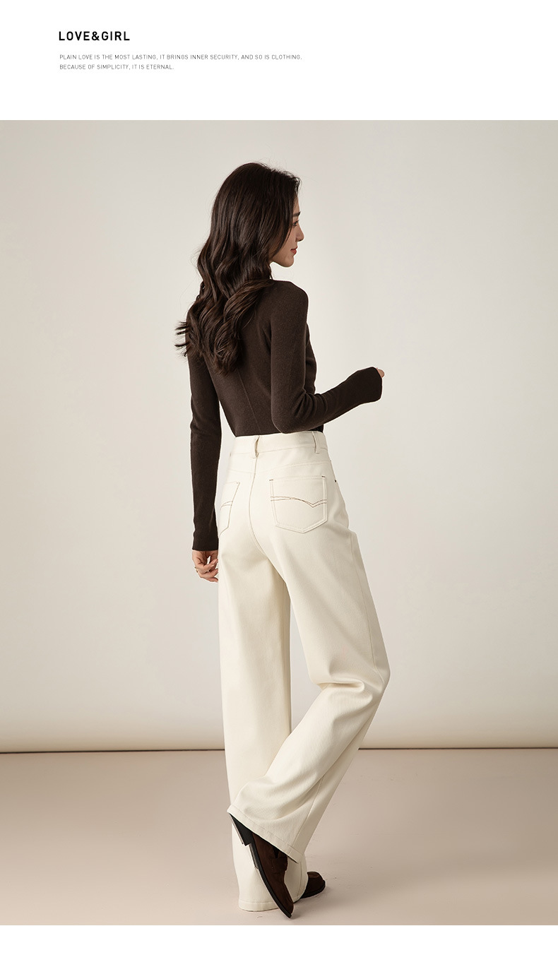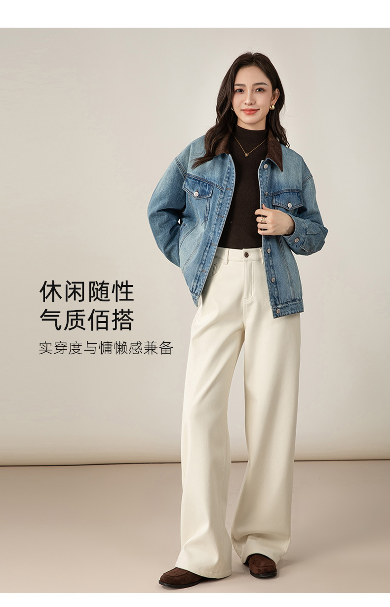 百媚生 加绒加厚直筒牛仔裤女窄版阔腿裤子85606