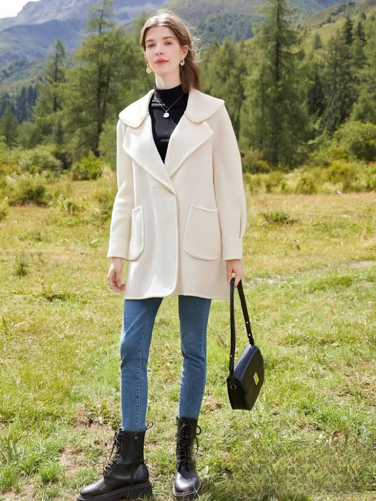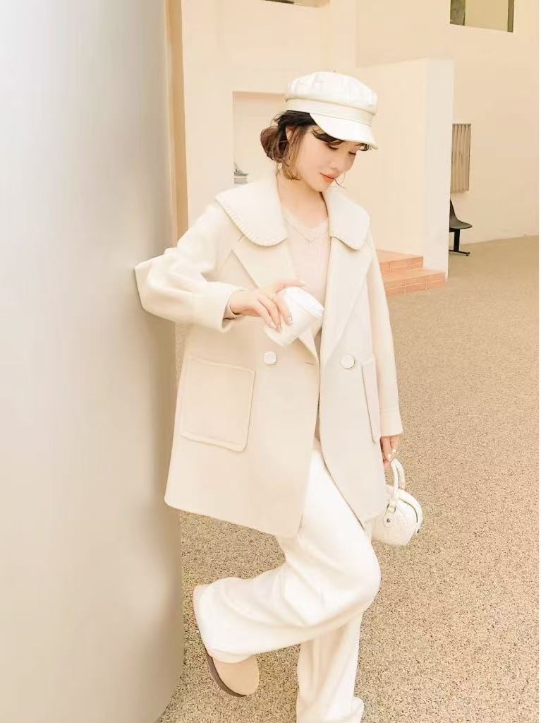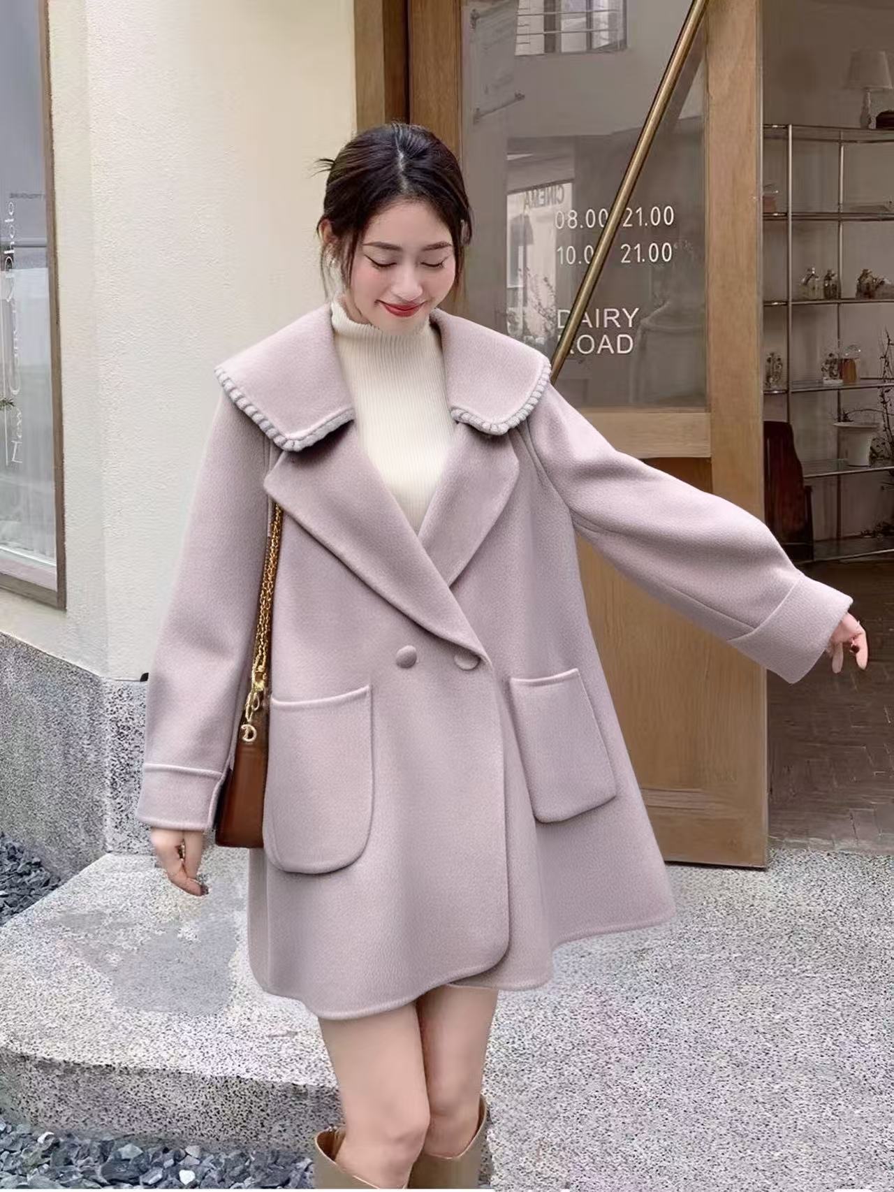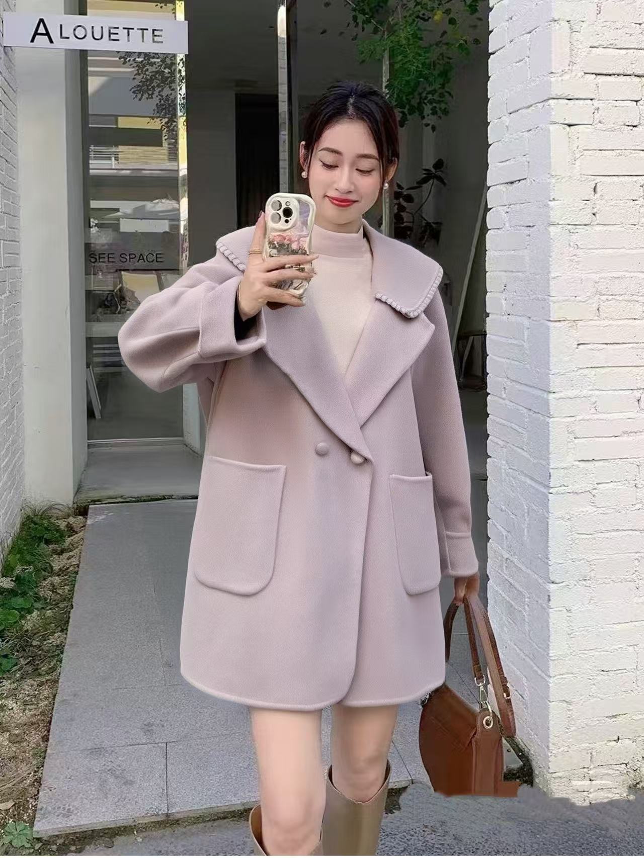12.12 清货瑕疵介意不要拍,不支持退【高端系列】手工定制3115款80%羊毛➕10%羊绒中款双面尼大衣-喜出