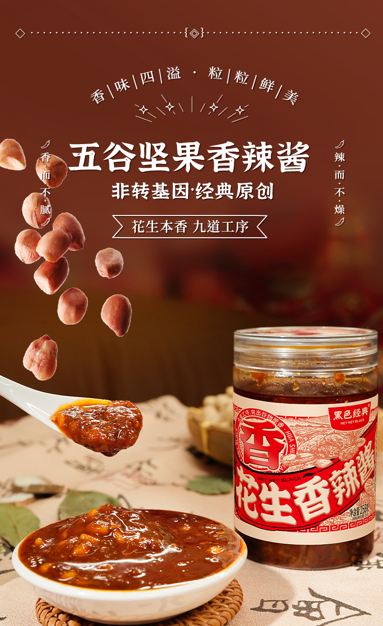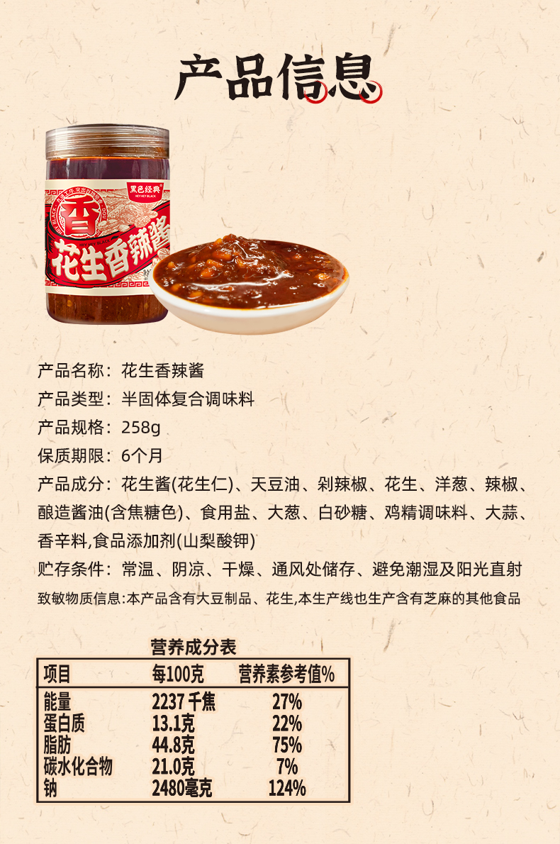 【699积分+1元兑换】黑色经典花生香辣酱258g/瓶 甄选优质花生