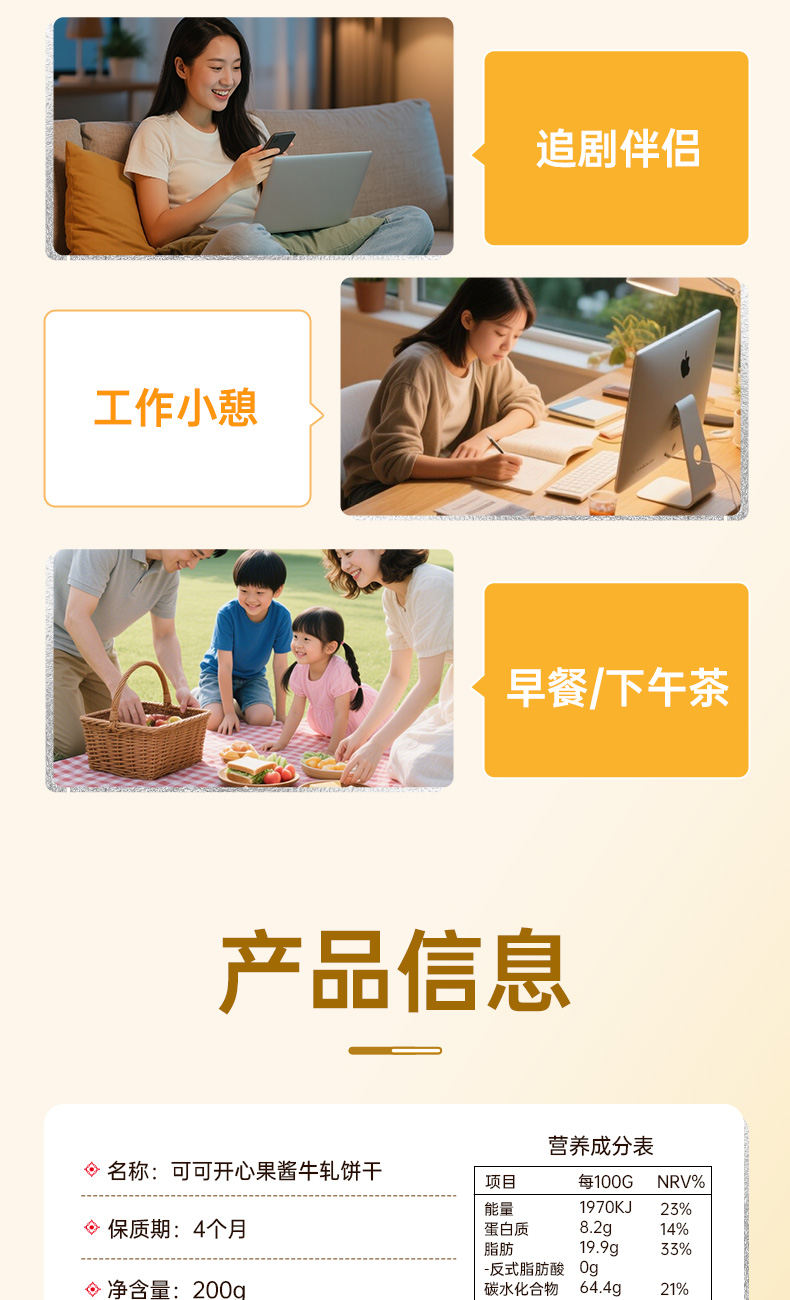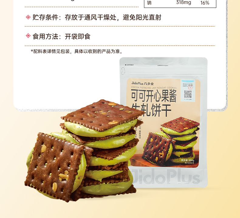 【鲜食】几多全可可开心果酱牛轧饼干 200g/袋