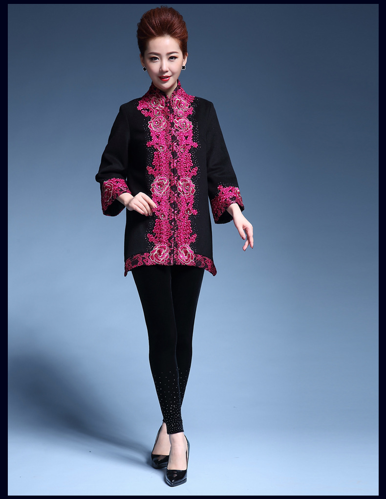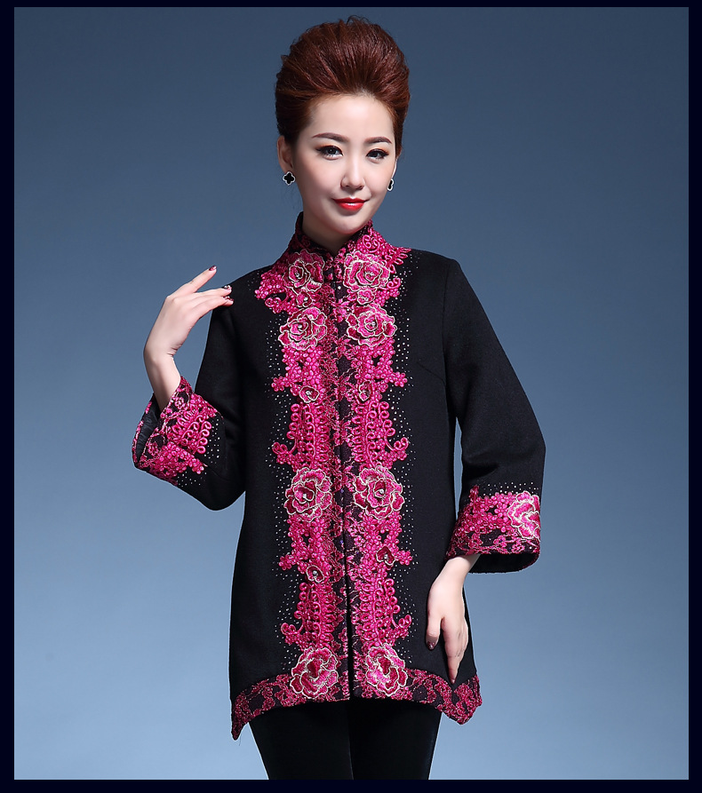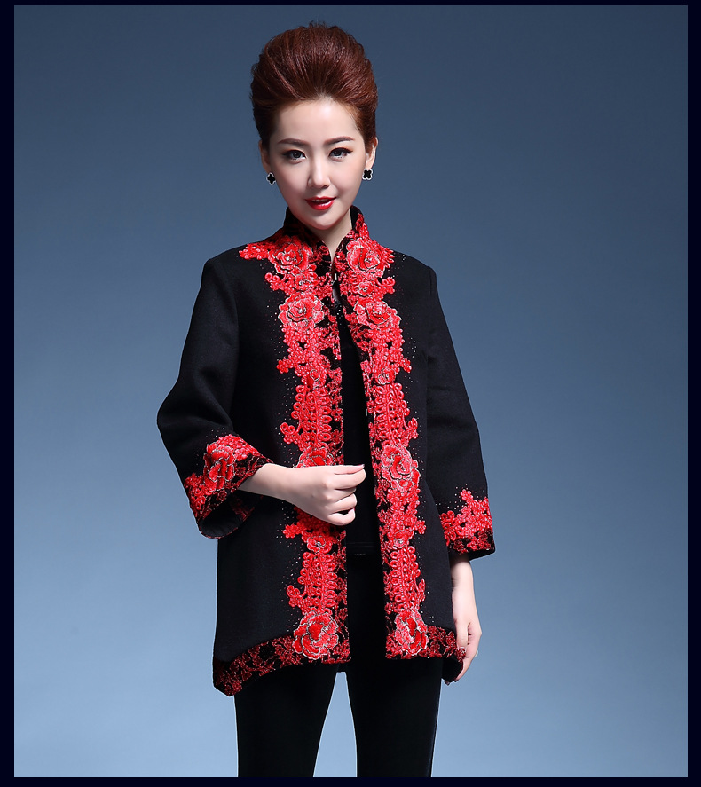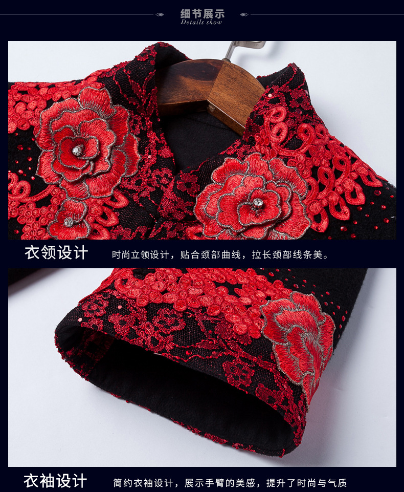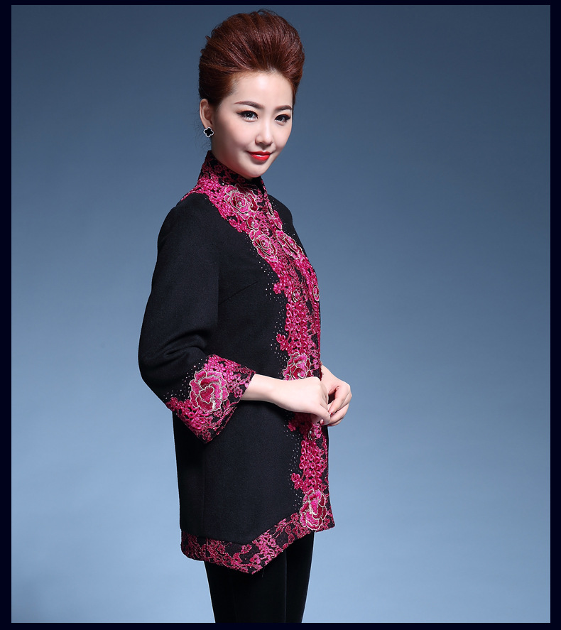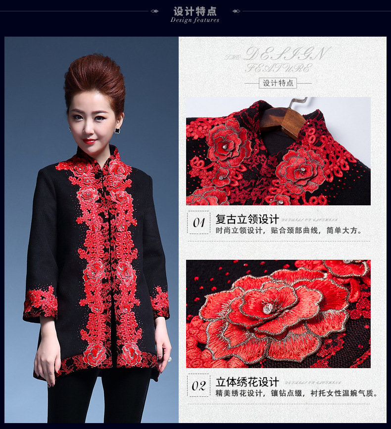 MY-8819秋冬中长款毛呢重工艺绣花外套