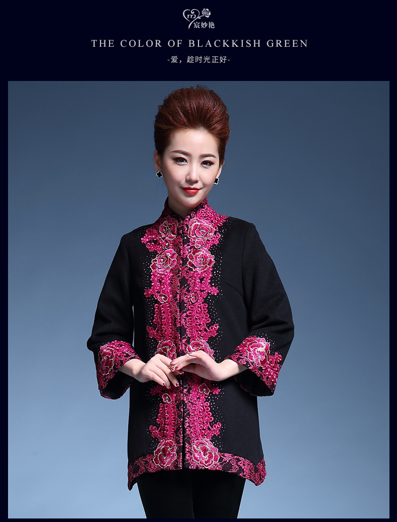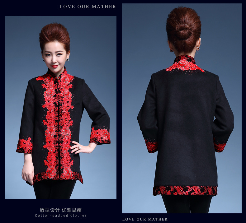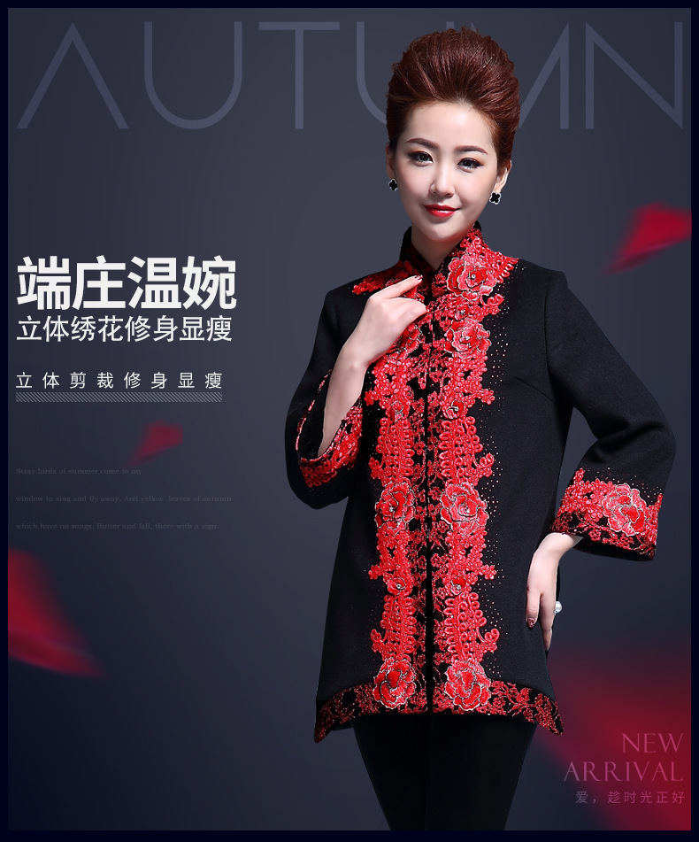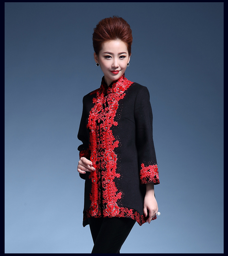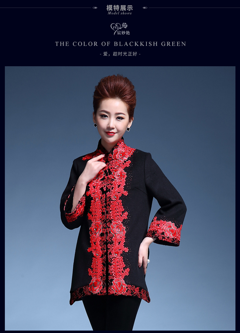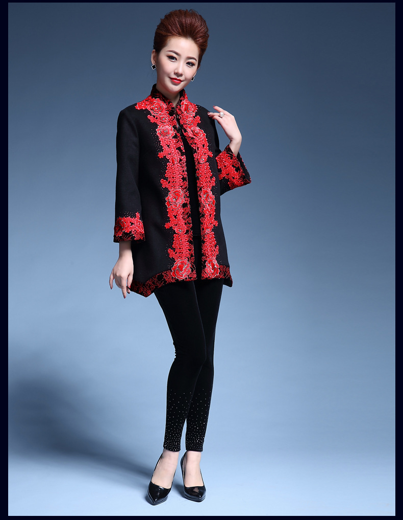 MY-8819秋冬中长款毛呢重工艺绣花外套