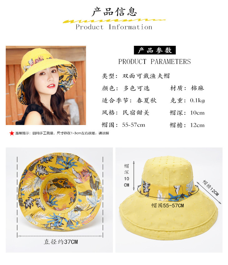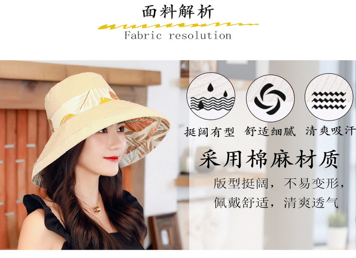 BG-9304渔夫帽 双面可带大沿棉麻沙滩帽户外旅行防晒帽