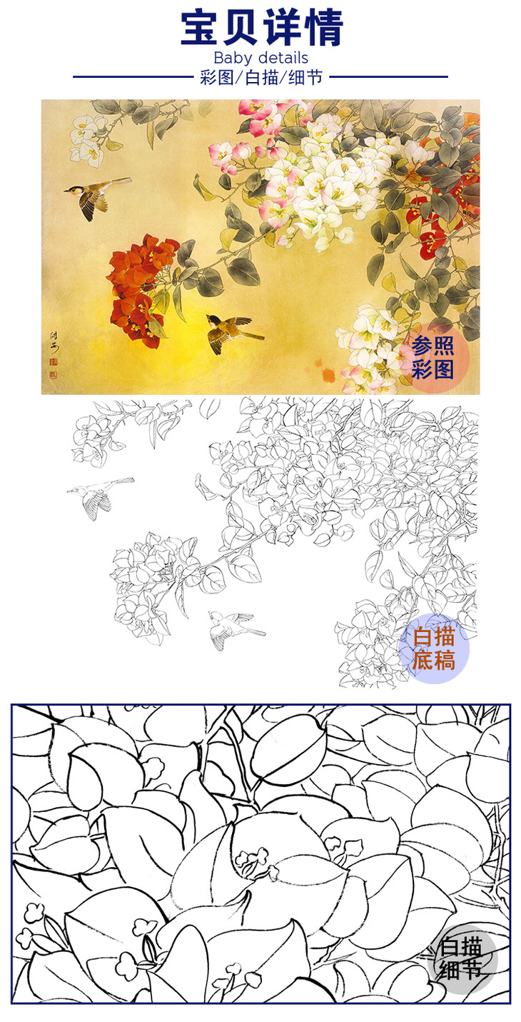 横幅工笔花鸟白描底稿-邹传安-A509
