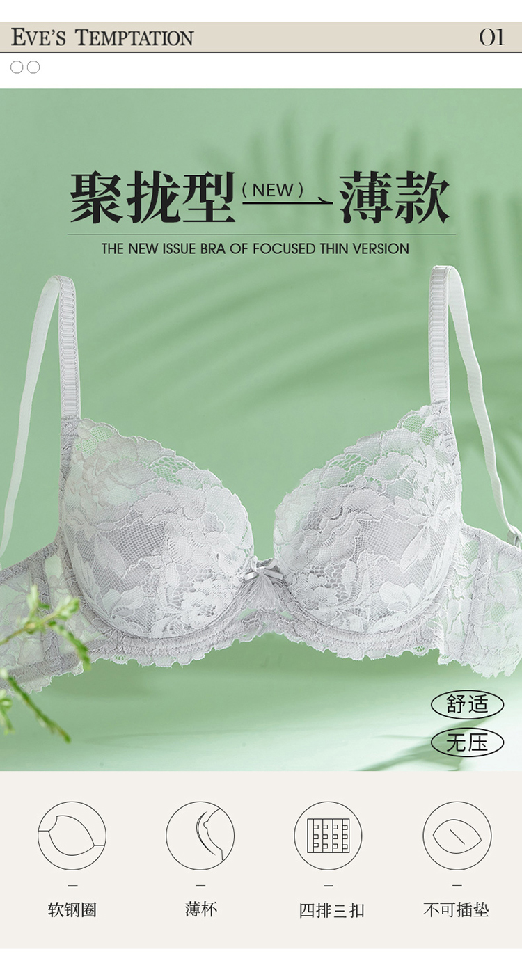 夏娃的诱惑内衣粉佳人夏天蕾丝聚拢薄款文胸2026新款大胸显小胸罩