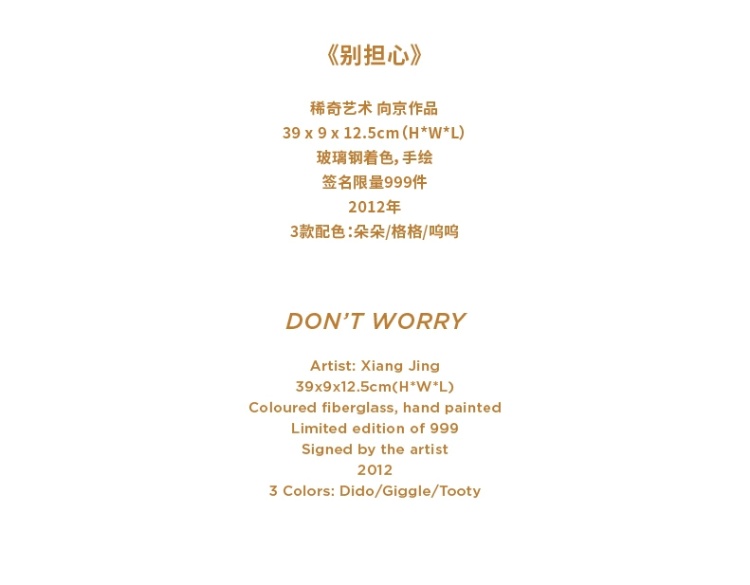 稀奇艺术向京签名限量版玻璃钢雕塑《别担心》可爱桌面艺术品摆件