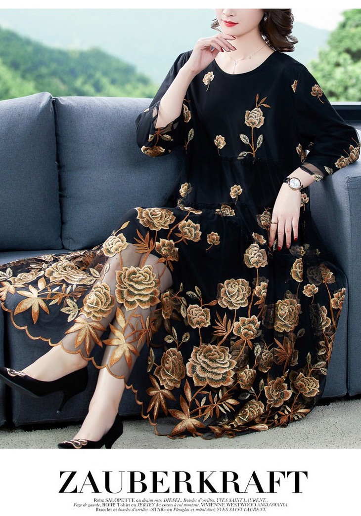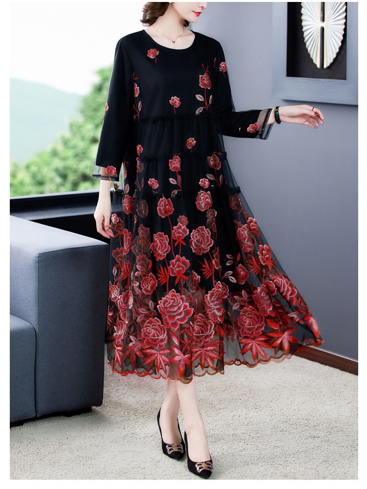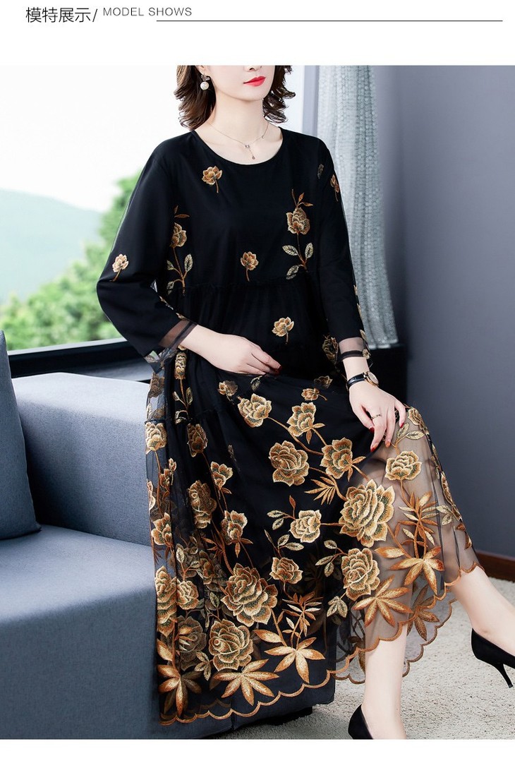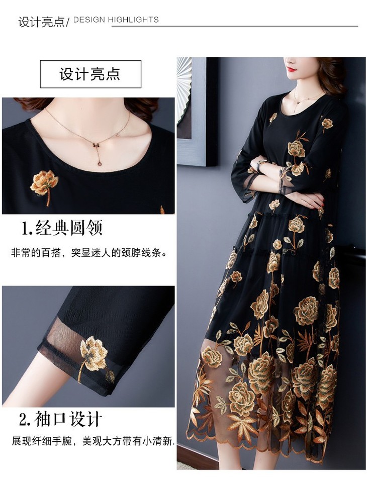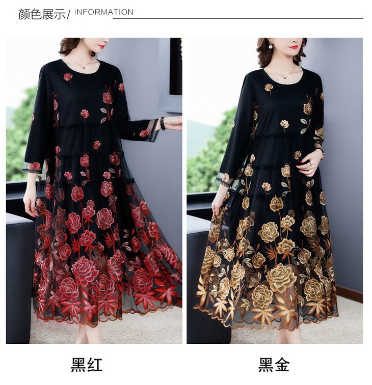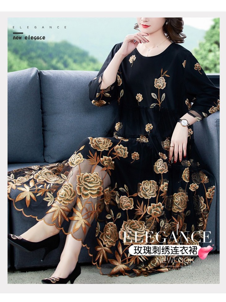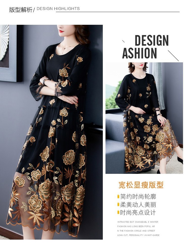 AHM yxfs9278加绒连衣裙大码洋气质减龄显瘦刺绣裙