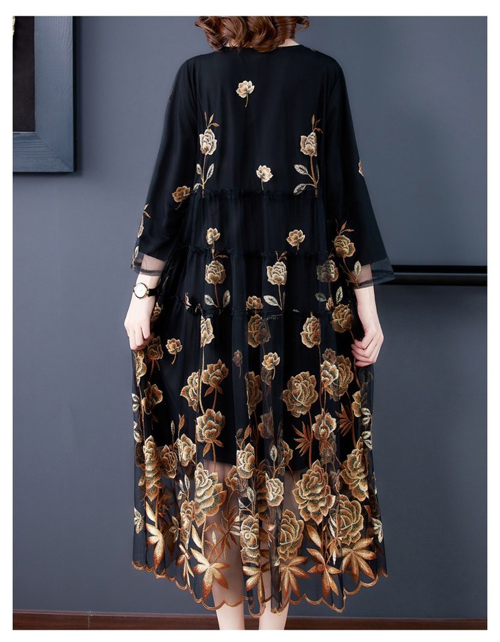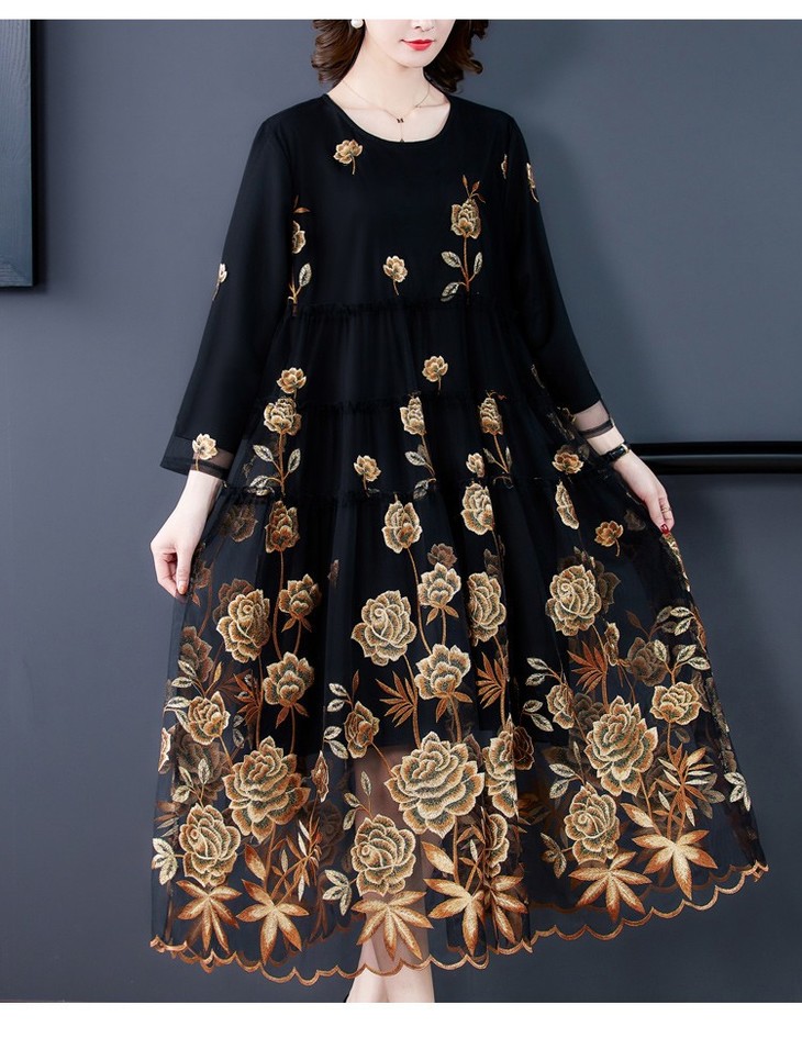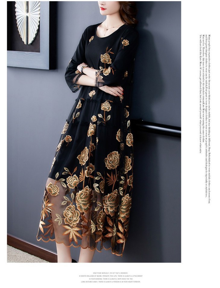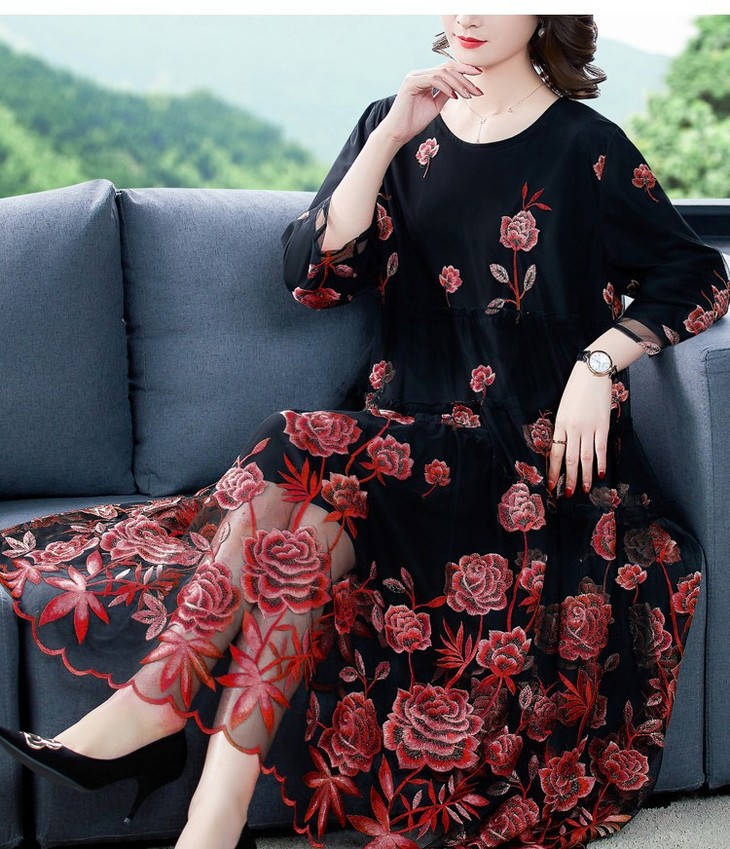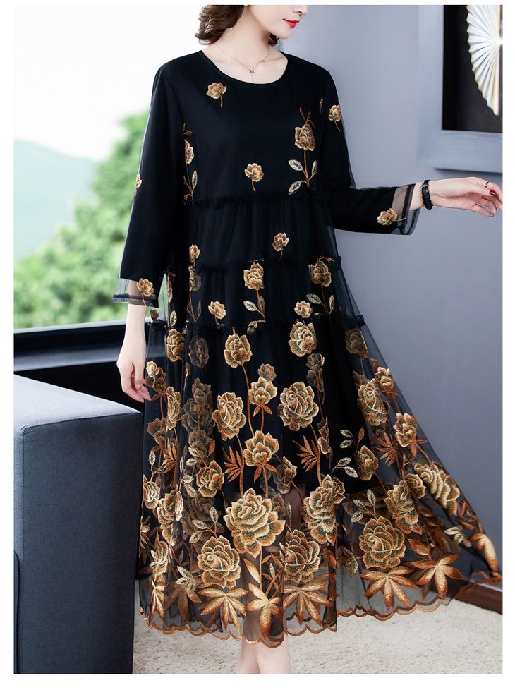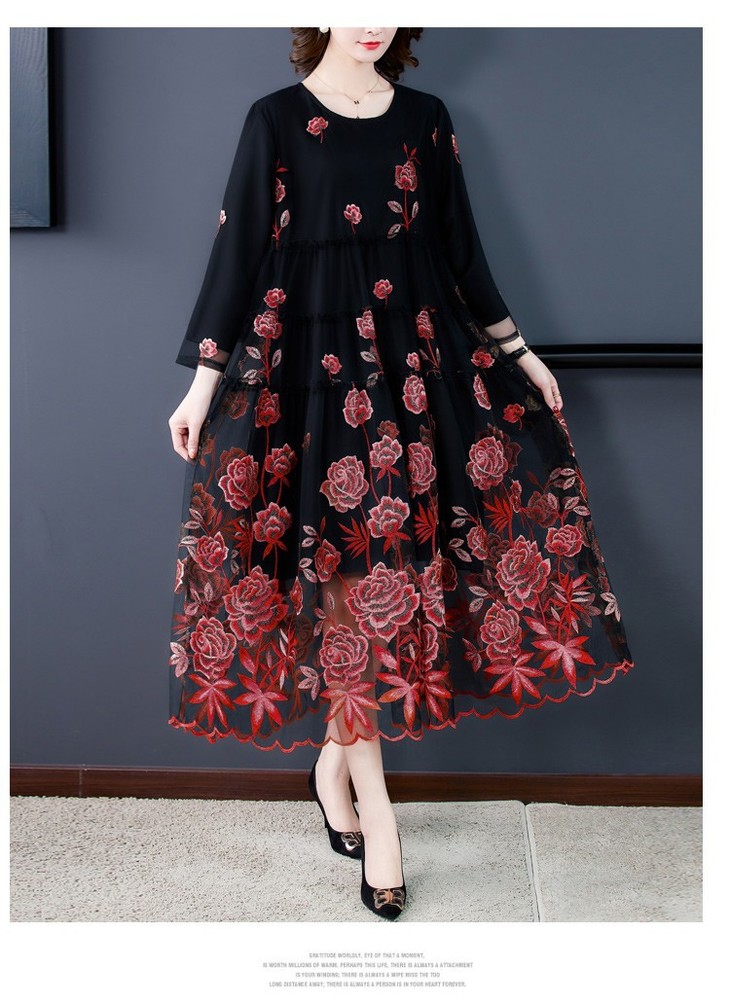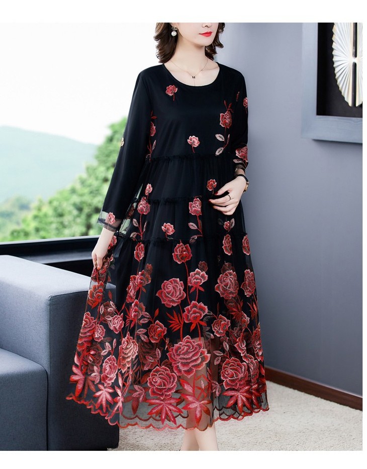 AHM yxfs9278加绒连衣裙大码洋气质减龄显瘦刺绣裙